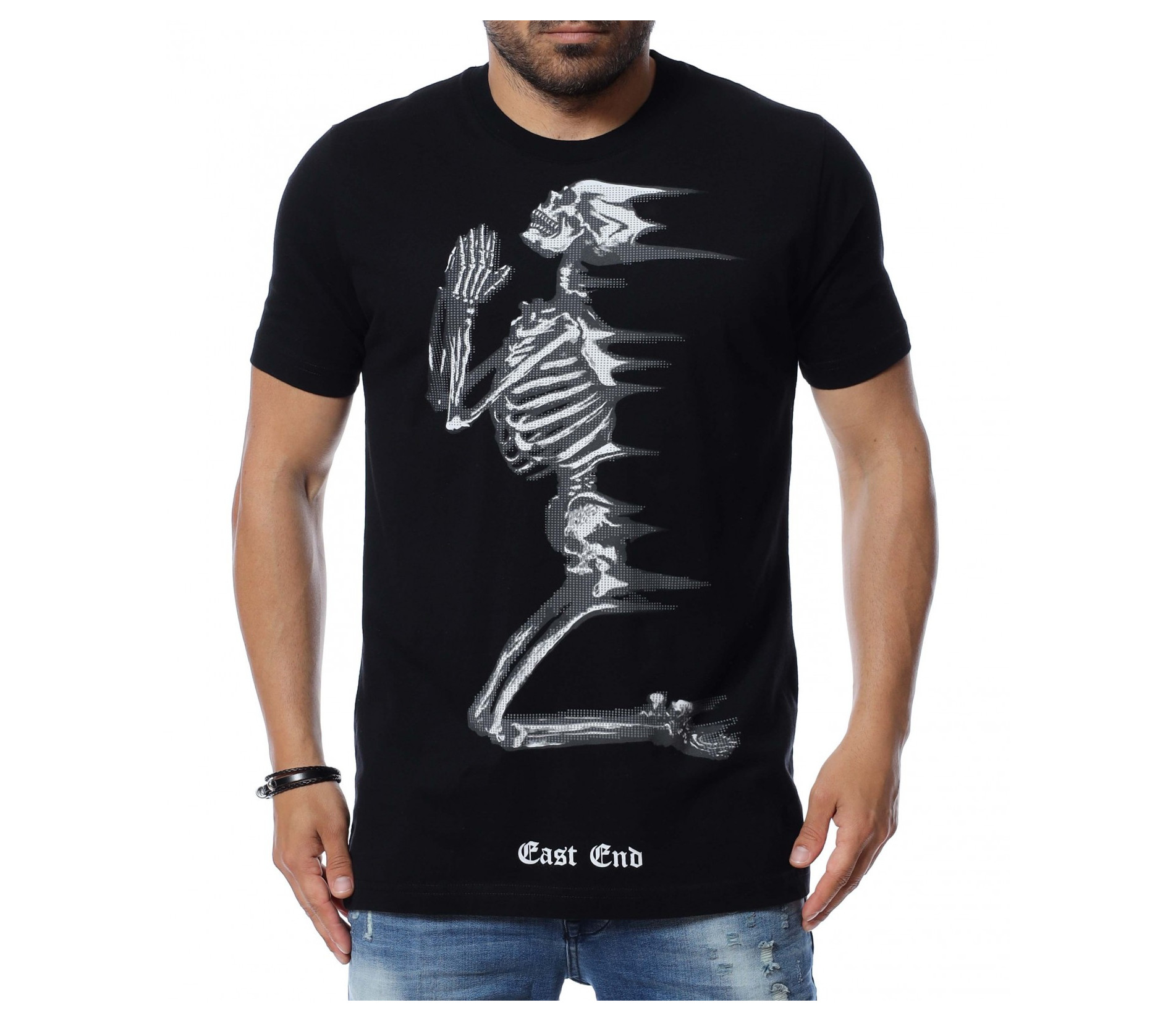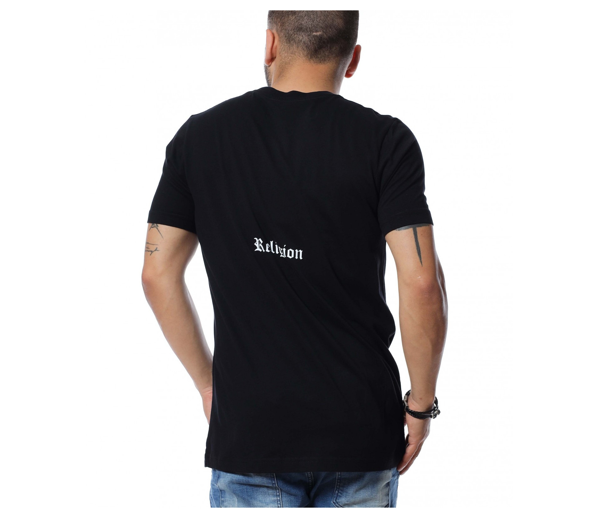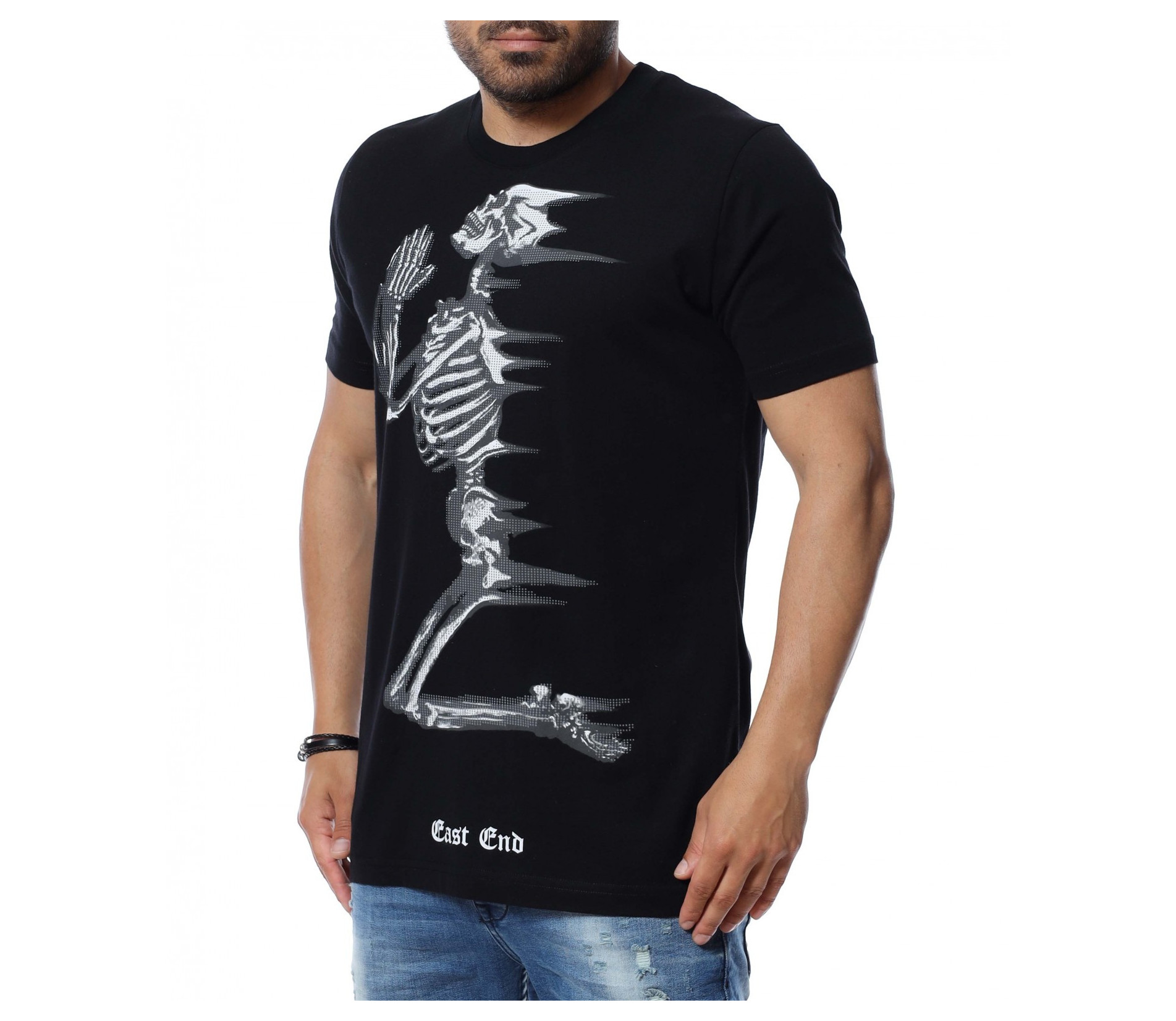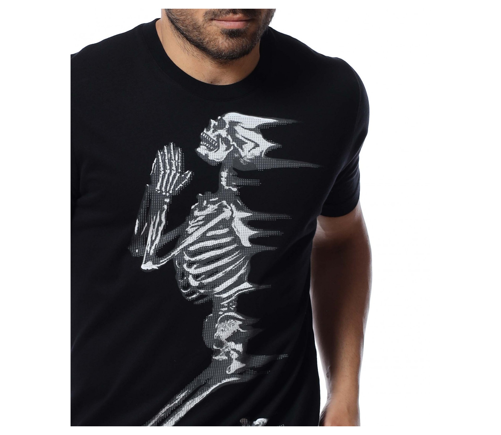 Мъжка блуза с къс ръкав и необичайна щампа. Тениската е едноцветна, а в предната част забелязваме голяма и открояваща се апликация. На гърба е добавен символичен надпис, деколтето е овално, а кройката следва линиите на тялото. Дължината покрива колана, изработена от мека, памучна материя. Комбинрайте с кецове, дънки и аксесоари.