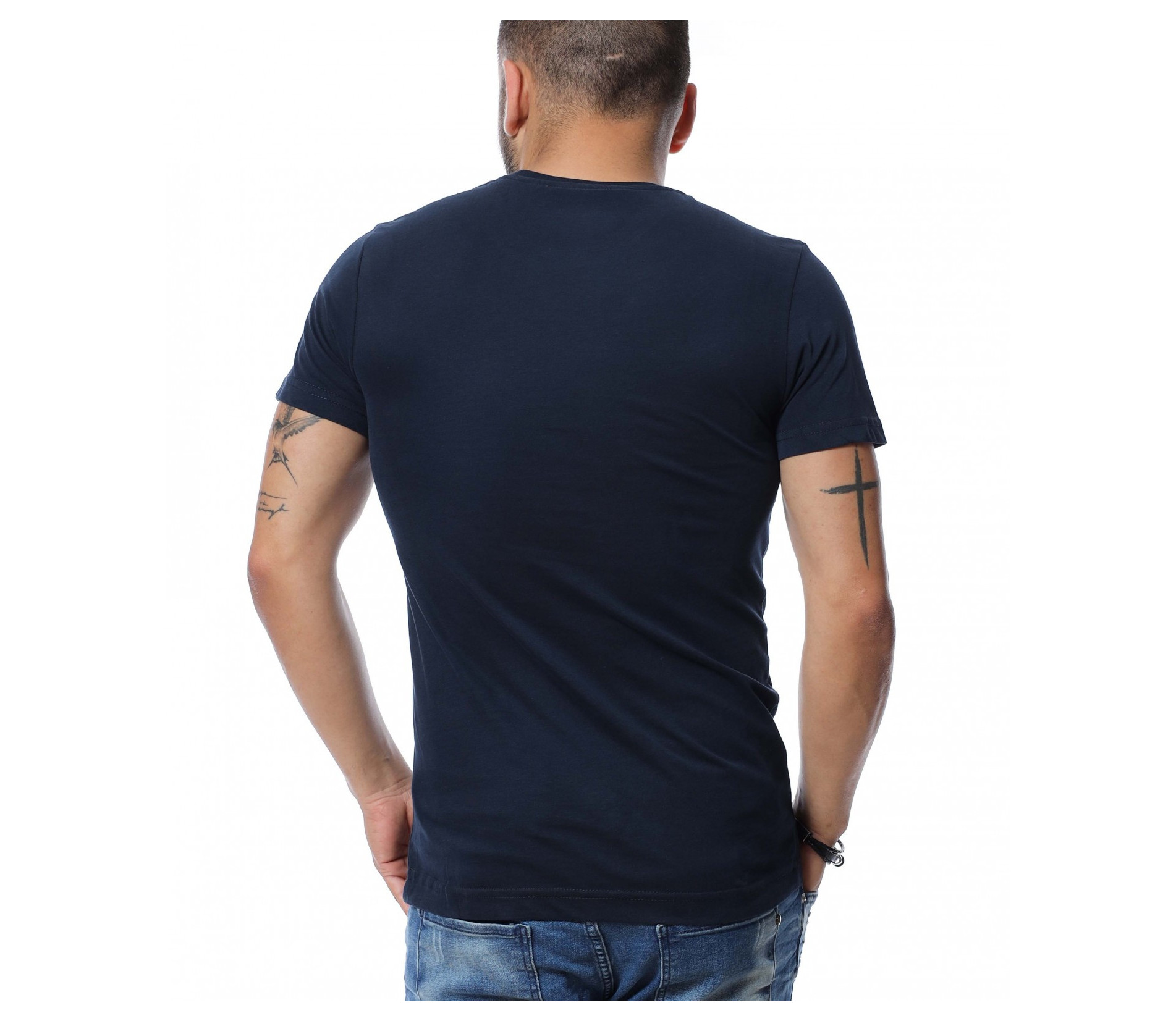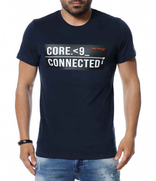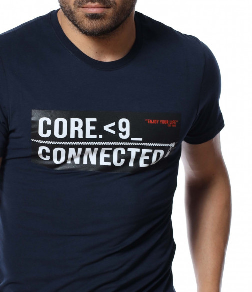 Тениска с акцентираща щампа 12637 - Тъмно син