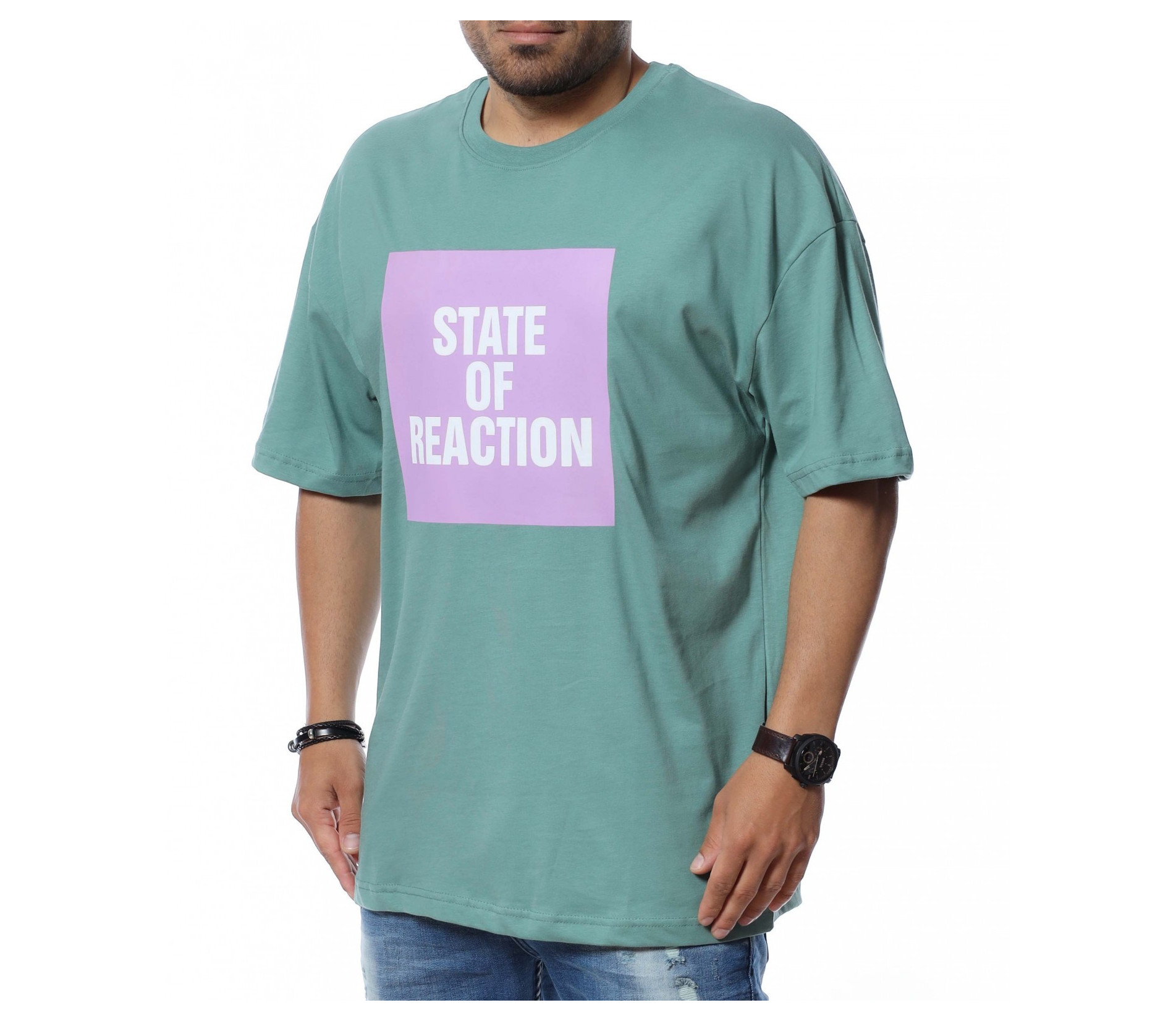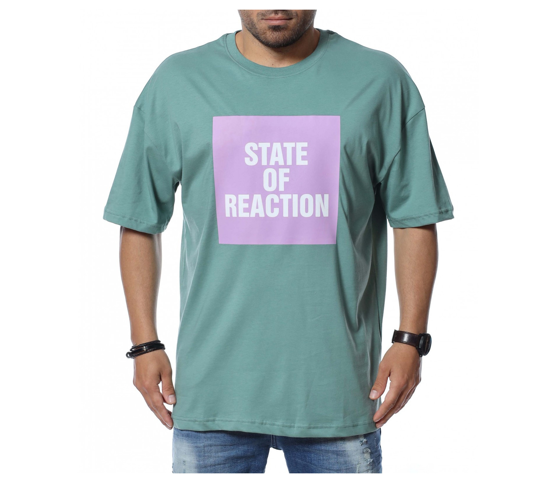 В предната част откриваме щампа с надпис \"State of reaction\".