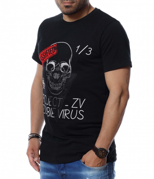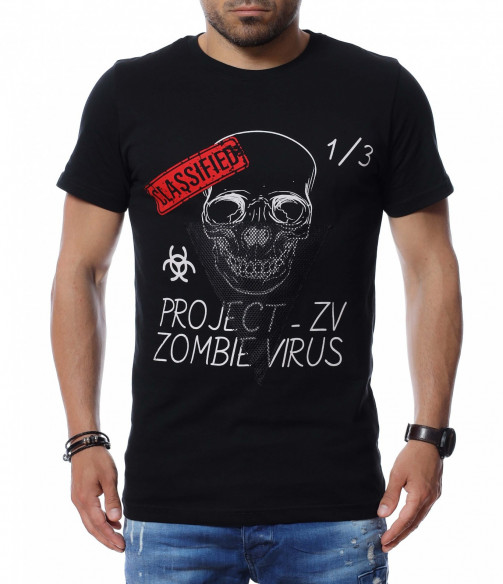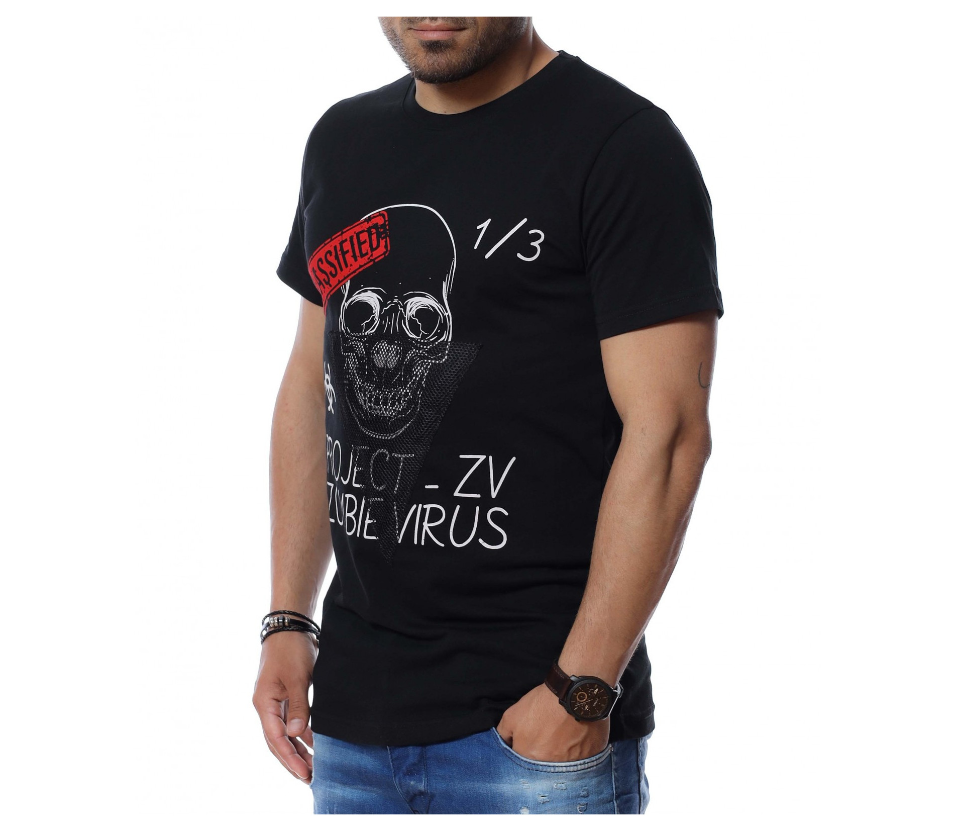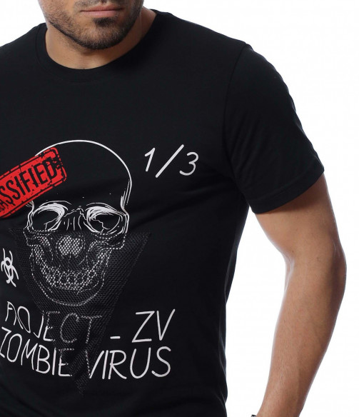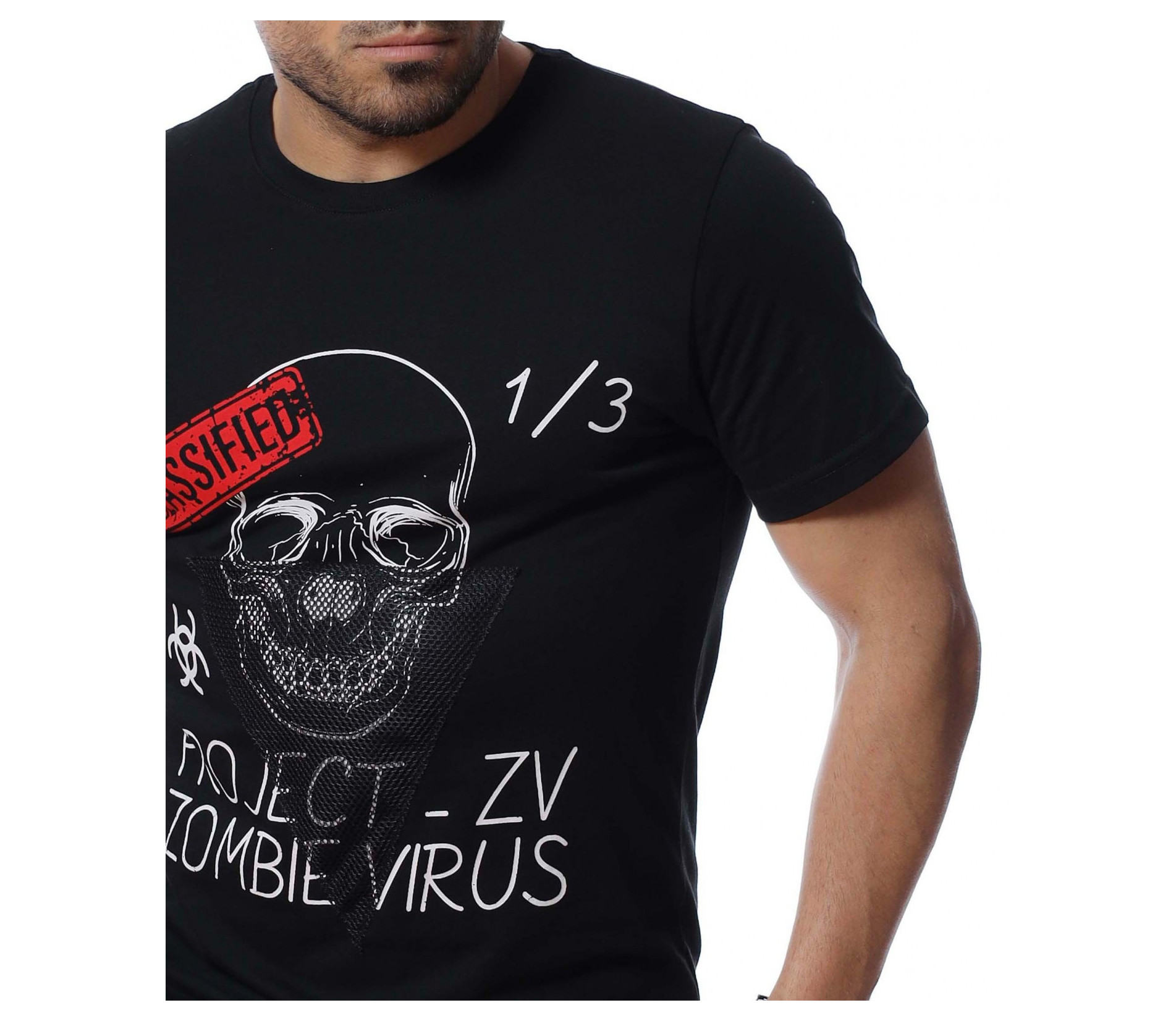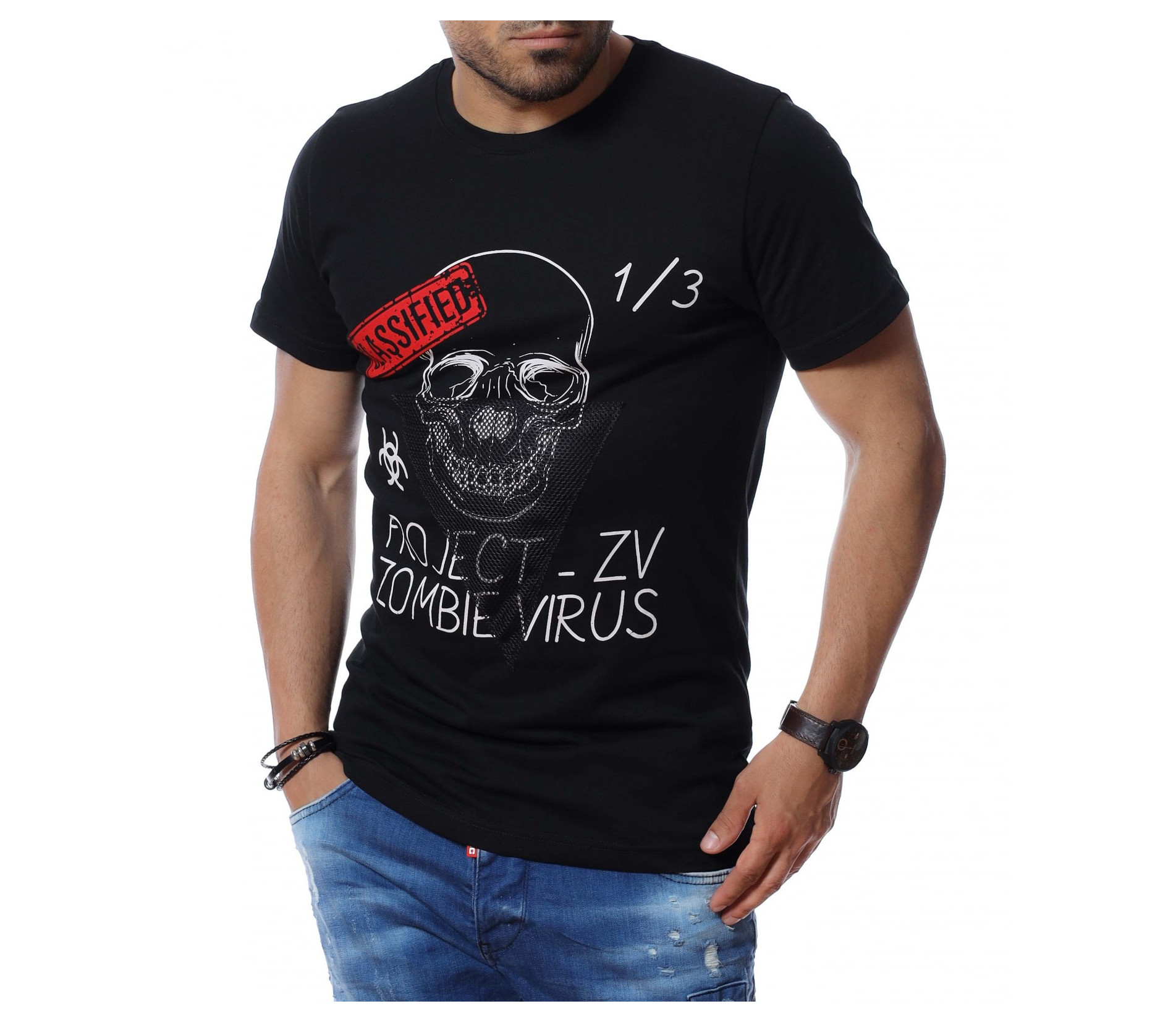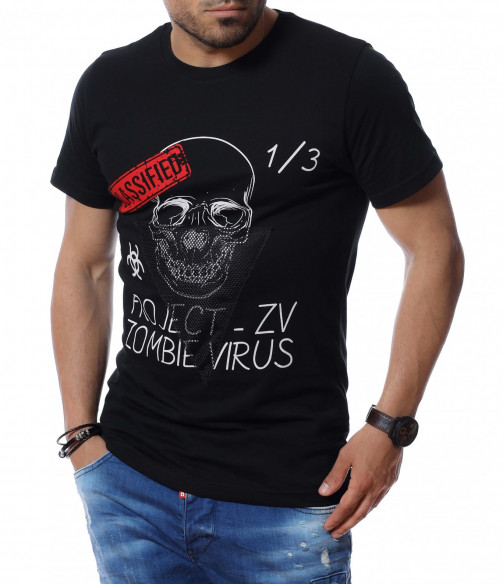 Мъжка блуза с къс ръкав и забележителна апликация.