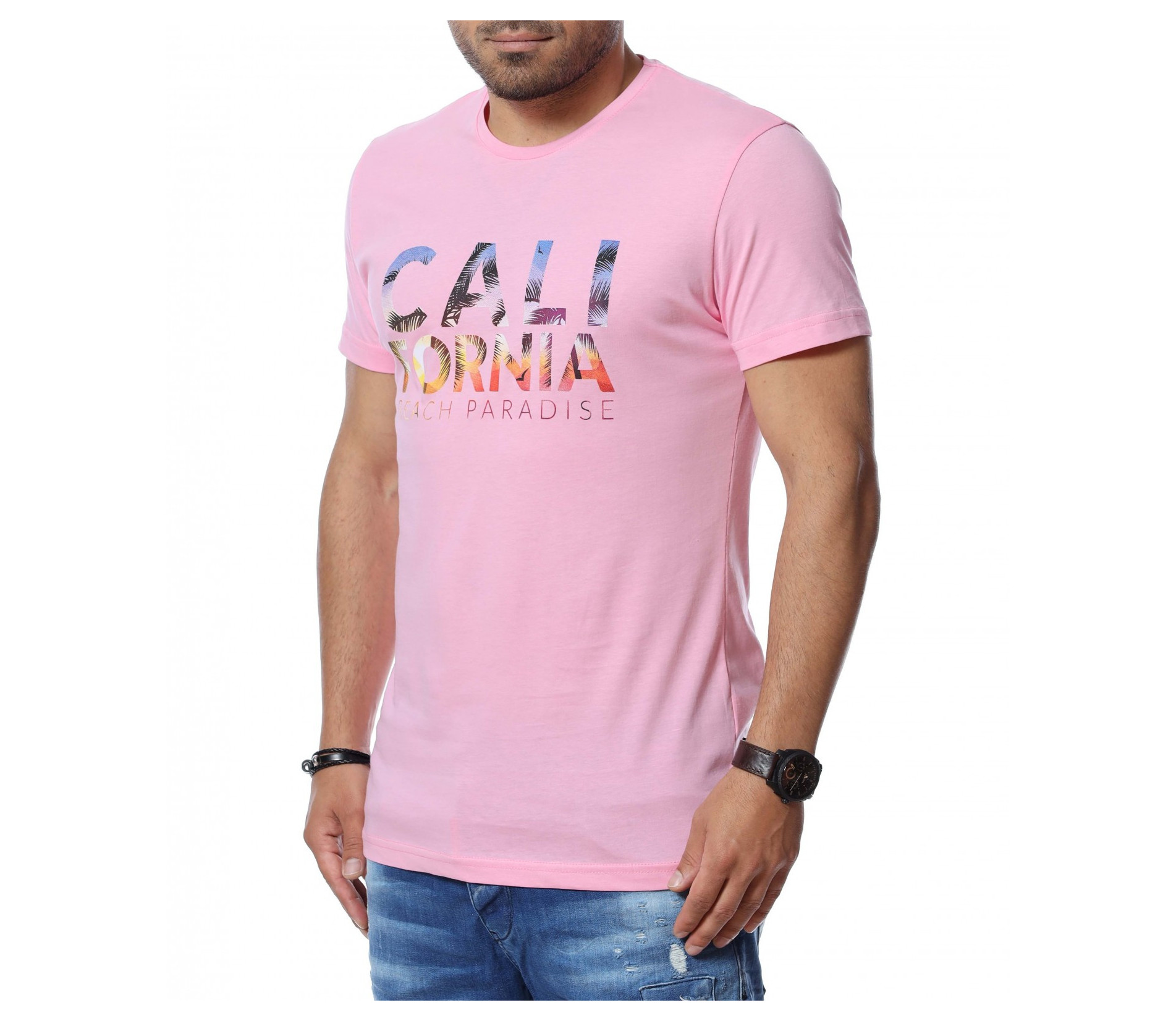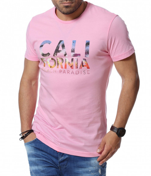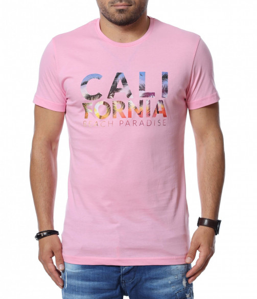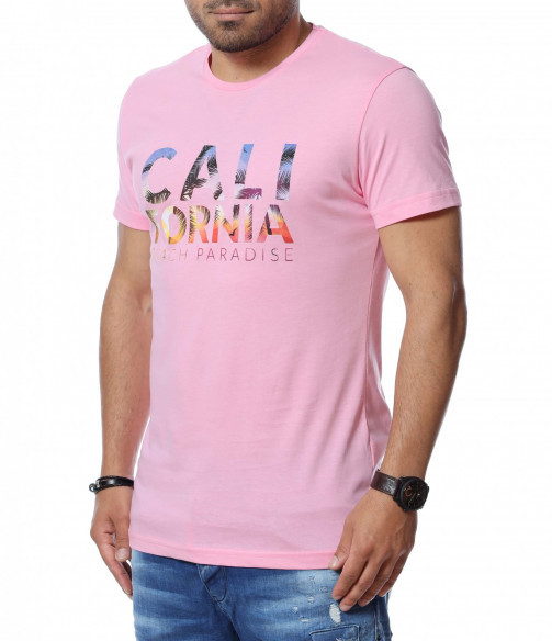 Тениска със щампиран надпис 12747 - Розов