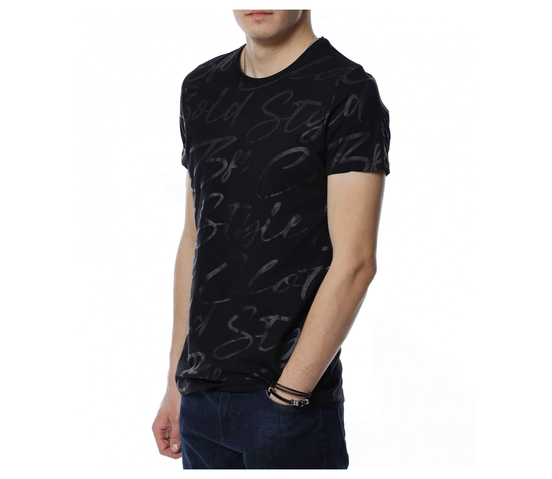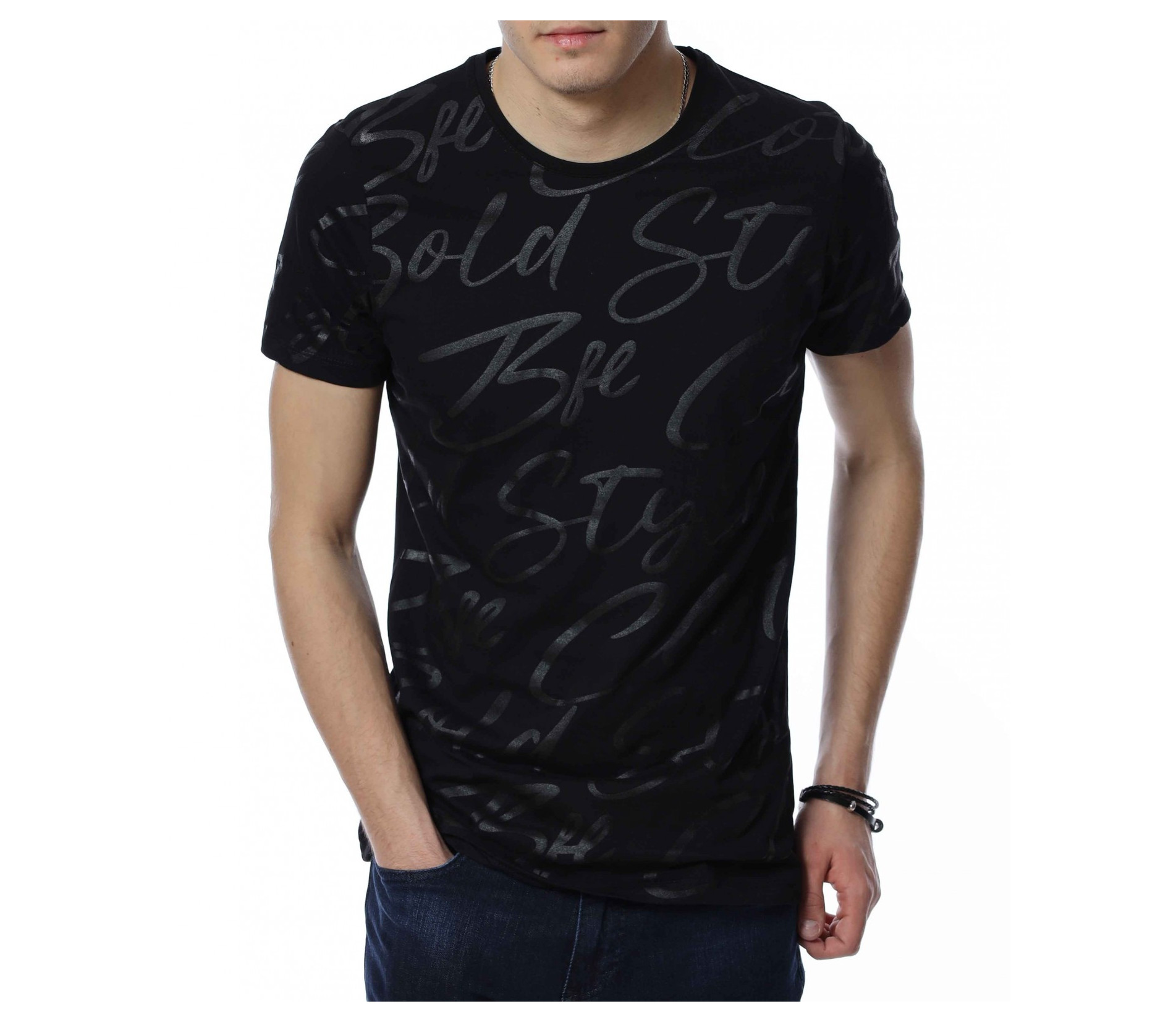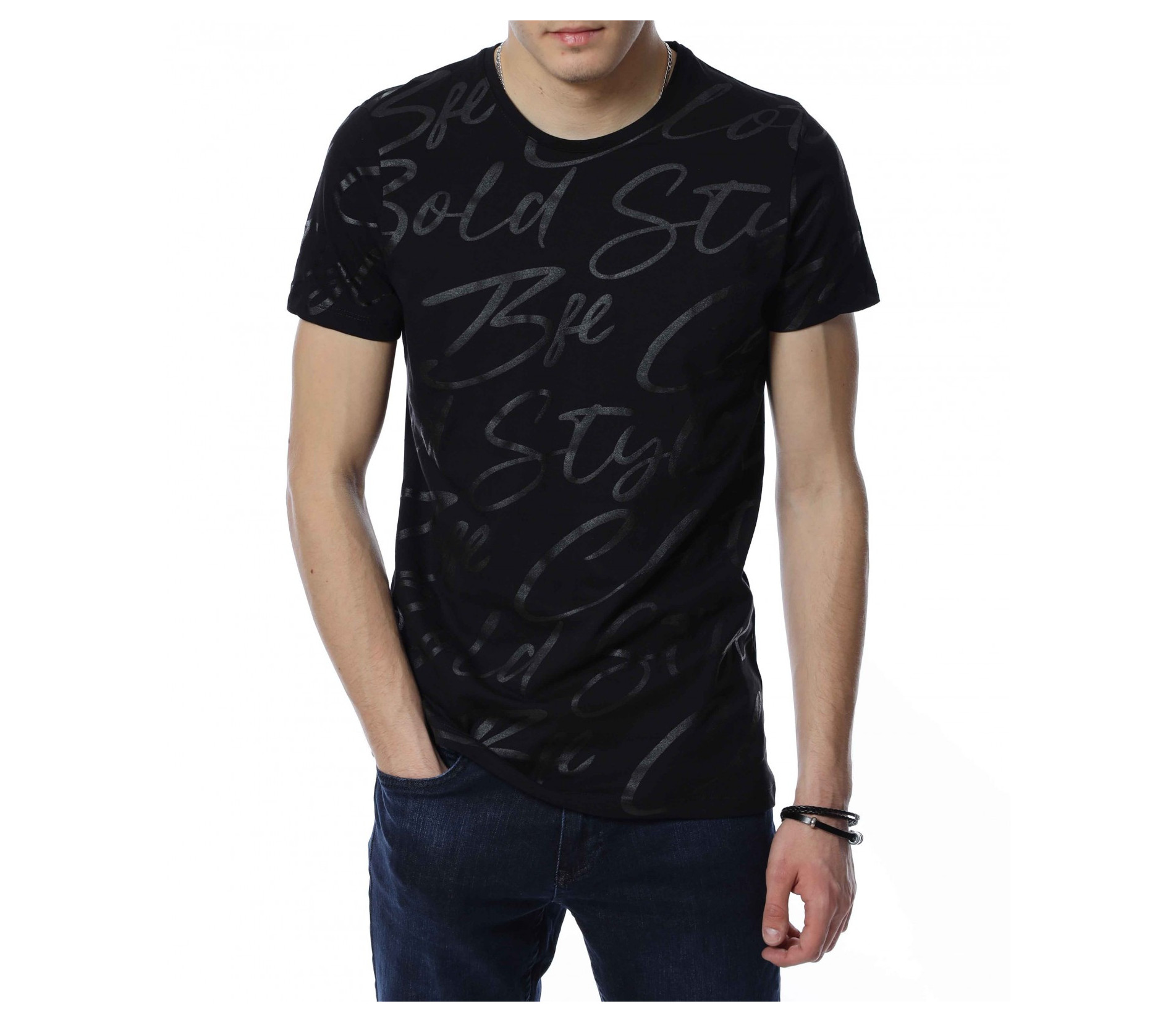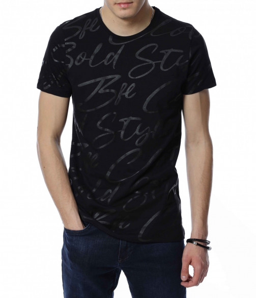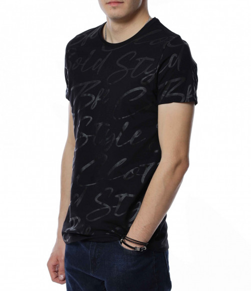 ОПИСАНИЕ НА ПРОДУКТА: Спортно-елегантна мъжка тениска, чиито дизайн е поверен изцяло на класическите мотиви и елементи. На първо място подбрания нюанс дава възможност да я съчетаете с широк диапазон от цветове, като във всяка една комбинация да откривате нова страна на фланелката. В декоративен аспект, мъжката блуза е в по семпъл вид, като макар и масивен принт, разположен по цялата дължина, в предната част под формата на ръкописни надписи, той придава една ефирност и елегантност. Предлага се в два винаги актуални цвята-черен и сив. Кройката на тениската с къс ръкав е вталена, но създава нужния комфорт на тялото Ви. Последния мотив  това е деколтето, овалната му форма слага и крайния щрих, вдъхващ стил и класност, необходими във всеки един мъжки гардероб.