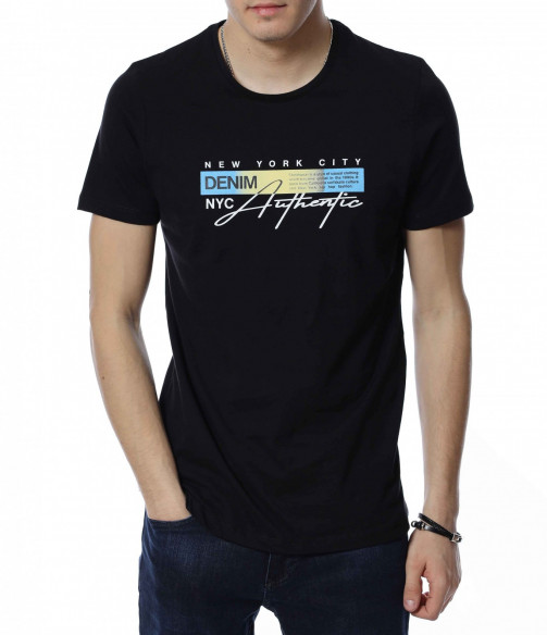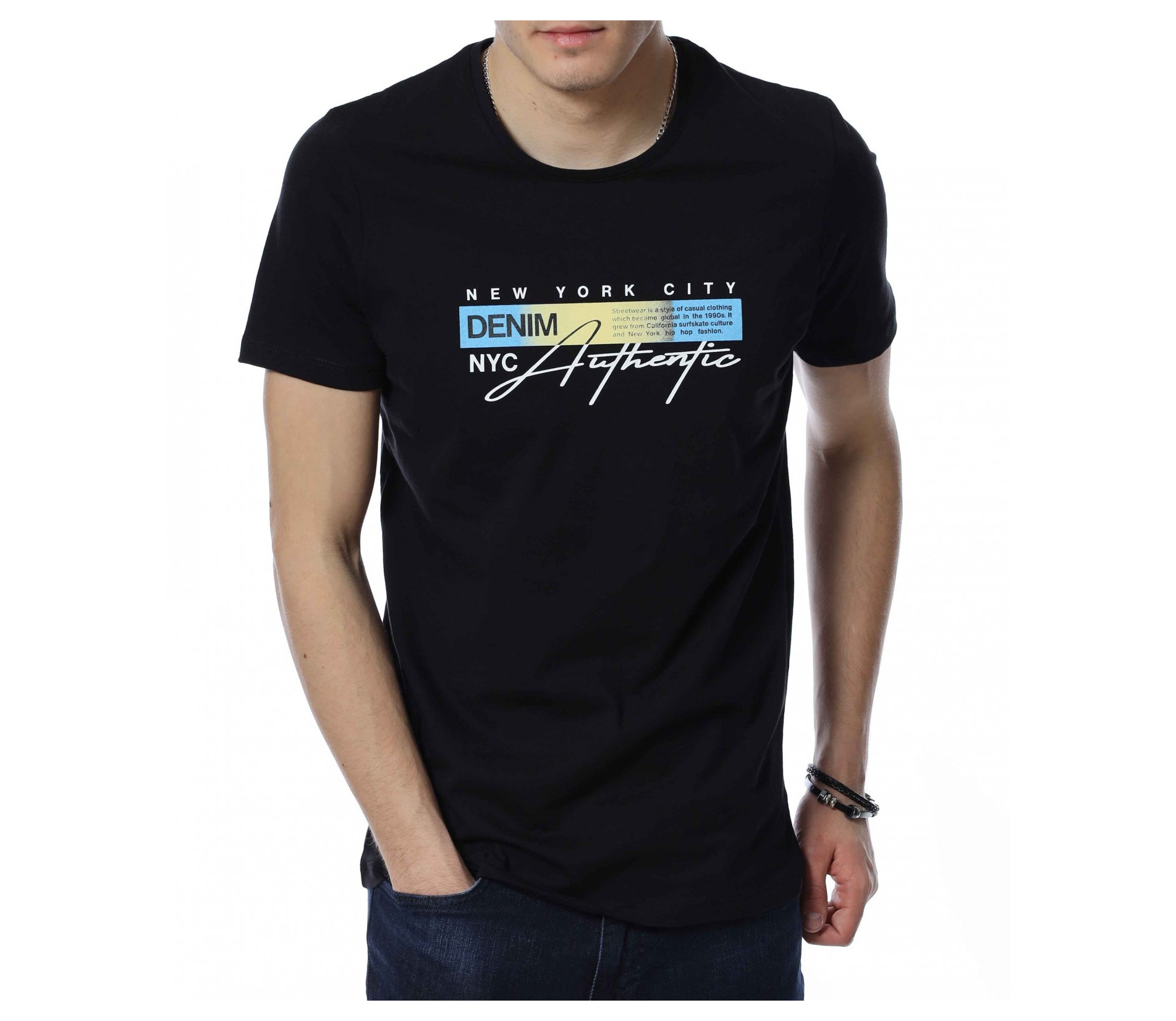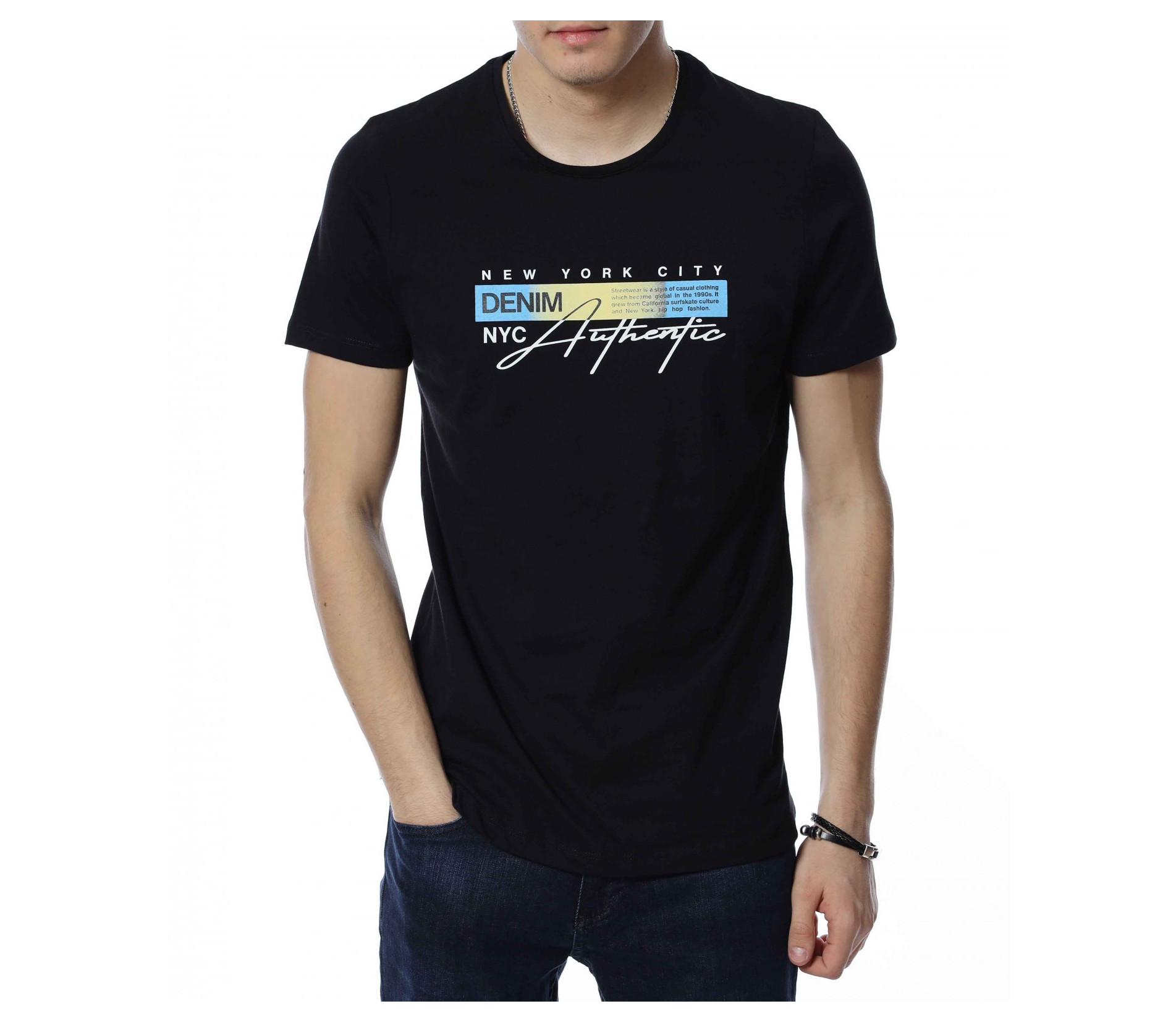 ОПИСАНИЕ НА ПРОДУКТА: Представяме на вашето внимание мъжка тениска в спортна форма, която е напълно подходяща за ежедневието и за една удобна всекидневна употреба. Цвета е черен, като перфектно се вписва във всеки мъжки имидж. Изработена от изцяло памучна материя, тениската е гаранция за удобство и комфорт при носене. Върху лицевата страна на фланелката е поставена щампа от надписи, заемащи областта на гърдите. Деколтето е в любимата на всички семпла овална линия, внасяща атрактивен и същевременно стилен външен вид. Бъди позитивен във всяко отношение и се довери на класическото излъчване с този модерен и впечатляващ модел тениска с къс ръкав.