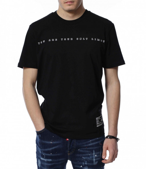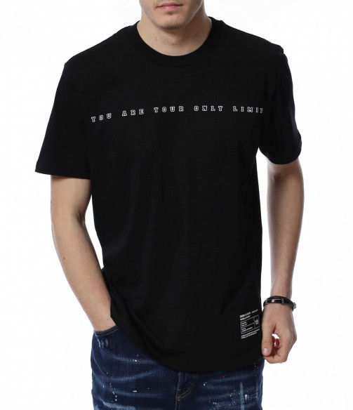 Както всеки сезон, така и този ние сме подготвени да ви предоставим най-качествените и модерни дрехи, в които да се чувствате комфортно и удобно ежедневно. ДИзайнът на тази тениска е поверен на интересен надпис в предната част \"you are your only limit\". В задната част е позиционирана голяма и забележителна щампа, а долу, отляво отпред забелязваме интересна щампа - нашивка. Деколтето е овално, а дължината покрива колана.  Кройката осигурява достатъчна свобода на движение, а меката материя - незаменим комфорт. КОмбинирайте с дънки и кецове.