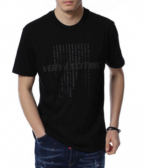 За феновете на класическите модели, сме ви подготвили един доста предпочитан и модерен модел тениска за тази година. Блузата е с къс ръкав и овално деколте. Дизайнът е заложил на малки надписи, разположени вертикално в предната част на блузката. Върху този дребен шрифт е разположен и ненатрапчив надпис \"very exciting\". Кройката е леко вталена, следваща силуета и подчертаваща фигурата, а дължината е стандартна. Меката, памучна материя придава на тялото незаменим комфорт през целия ден, Няма да сбъркате, ако комбинирате с дънки и стилни кецове.