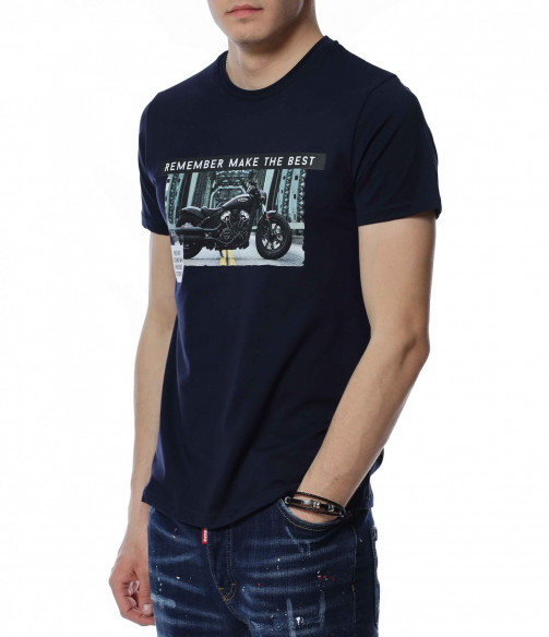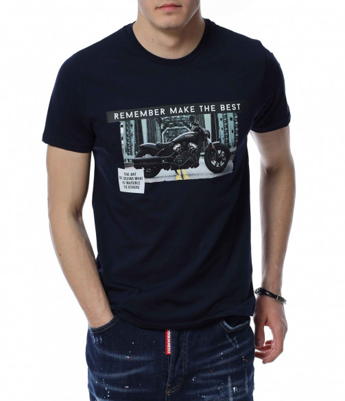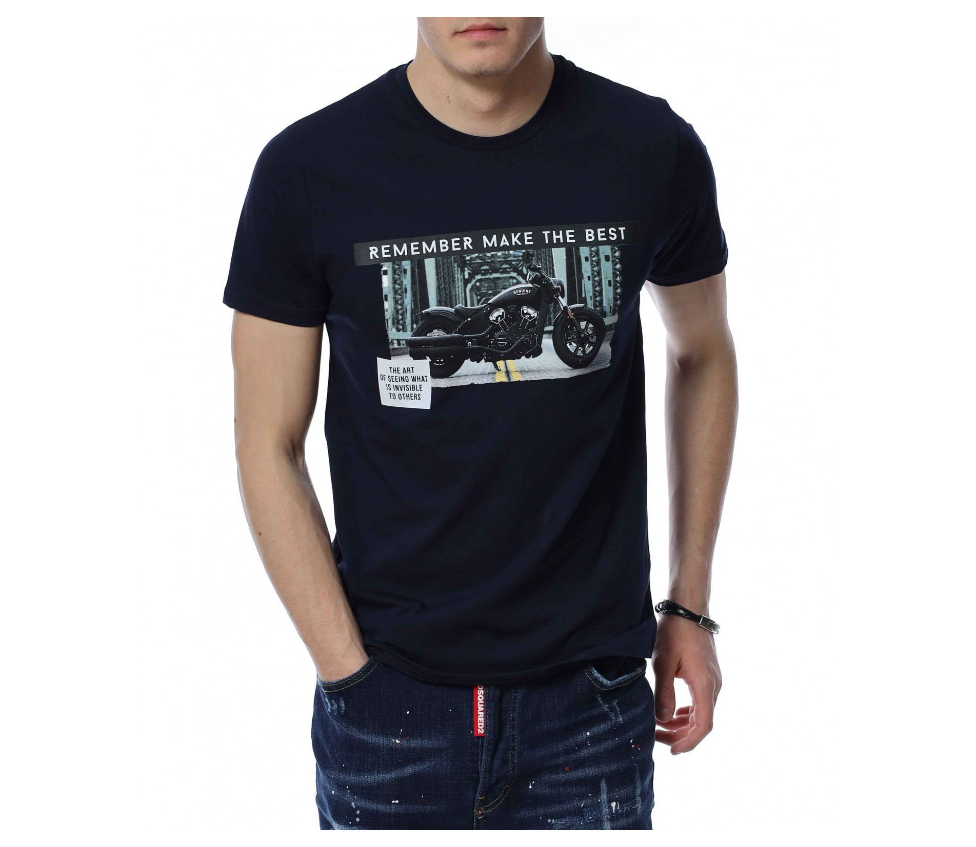 ОПИСАНИЕ НА ПРОДУКТА: Модерен мъжки тишърт атрактивно декориран в предната част. В областта на гърдите е поставена щампа, изобразяваща мотор. Като допълнителен ефект, в долната част под щампа е поставена друга декорация с надписи. Гърбът на фланелката е напълно изчистен от орнаменти, с което позволява цялостния акцент да падне върху лицевата част. Кройката на мъжката тениска е леко вталена със стандартна дължина, а деколтето модерно овално и леко дълбоко. Комбинирайте мъжката тениска с модерни дънки или спортен панталон, стилни кецове и спортно-елегантно яке, за да завършите един перфектен аутфит.