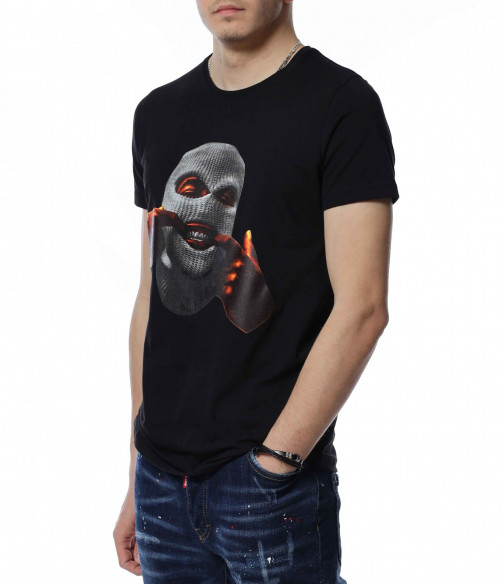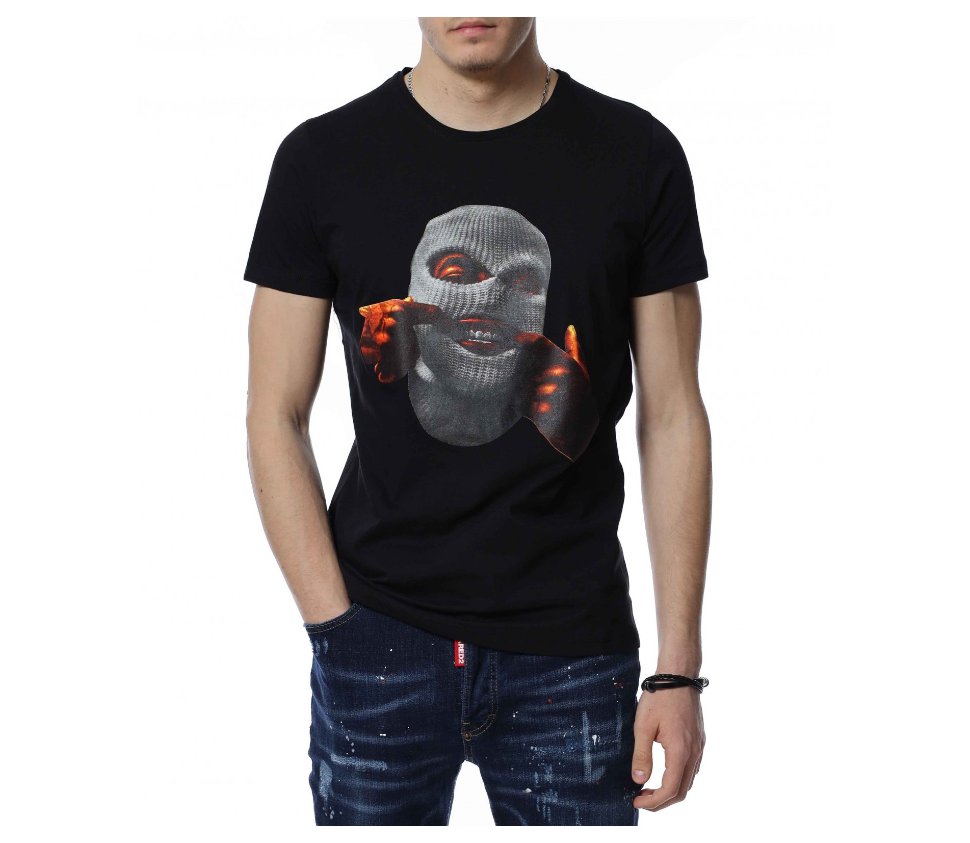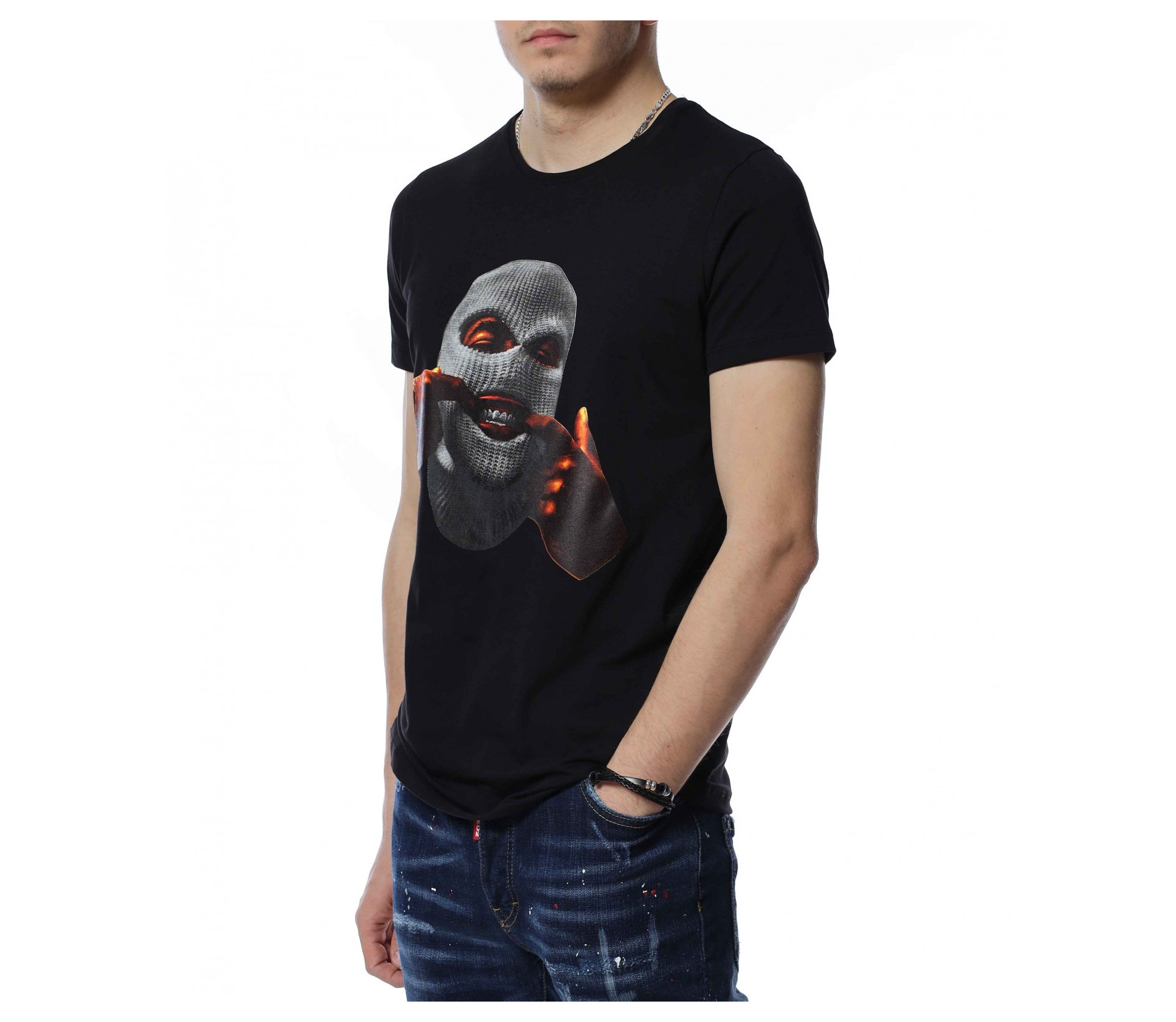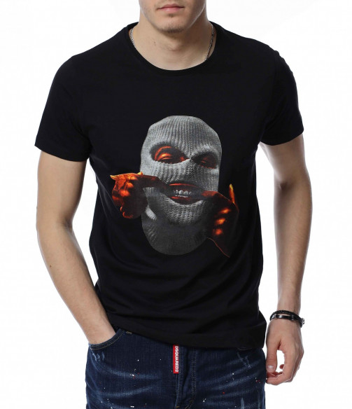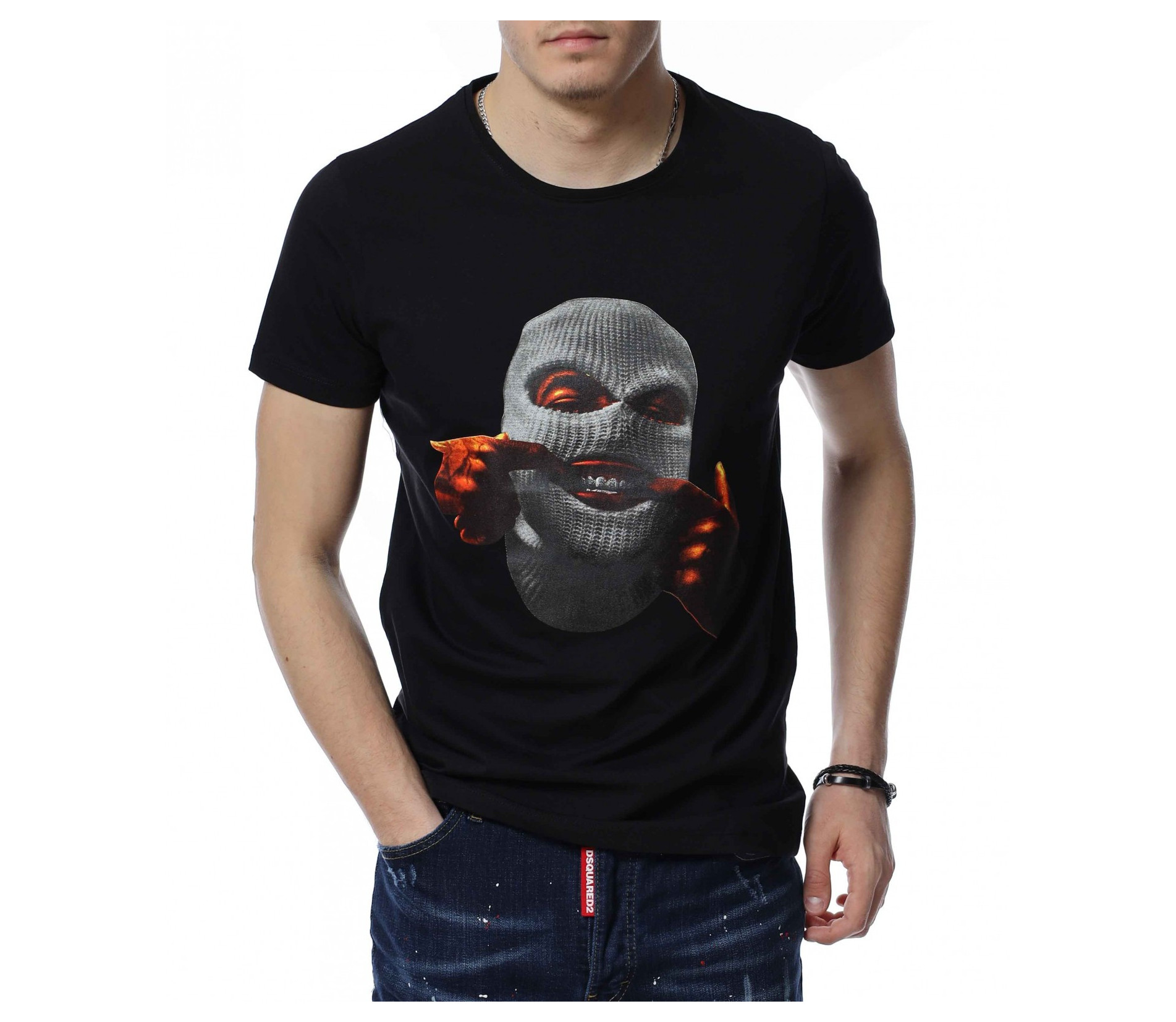 ОПИСАНИЕ НА ПРОДУКТА: Втален мъжки тишърт, който няма как да Ви остави безпристрастни. Върху лицевата част е поставен изключително открояваща се голяма щампа на лице с маска. Гърбът на мъжката тениска остава без акцент, за да може той да падне изцяло върху предната декорация. В допълнение към нея, тениската е изработена в леко вталена и издължена кройка, допълнена от прибрано овално деколте, елементи без който няма как един мъжки тишърт да бъде 100% перфектен. Този модел ви позволява да разгърнете въображението си и да го съчетаете с широк диапазон от цветове и модели дънки, панталони, обувки и аксесоари.