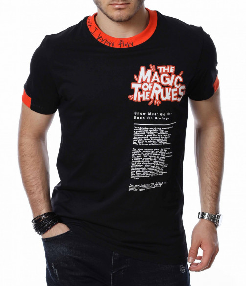 ОПИСАНИЕ НА ПРОДУКТА: Мъжка сива тениска с интересен надпис. Цялостния дизайн на този модел тишъртка е изчистен, класически, леко раздвижен от ненатрапчива и много семпла апликация, разположена в предната част. Деколтето е с овална форма в атрактивно оранжево, което е пренесено и по ластиците на ръкава, а кройката е леко вталена и еластична, гарантираща удобство. Смело комбинирай с любимите си дънки и аксесоари и придай много изискано излъчване на своя стайлинг.