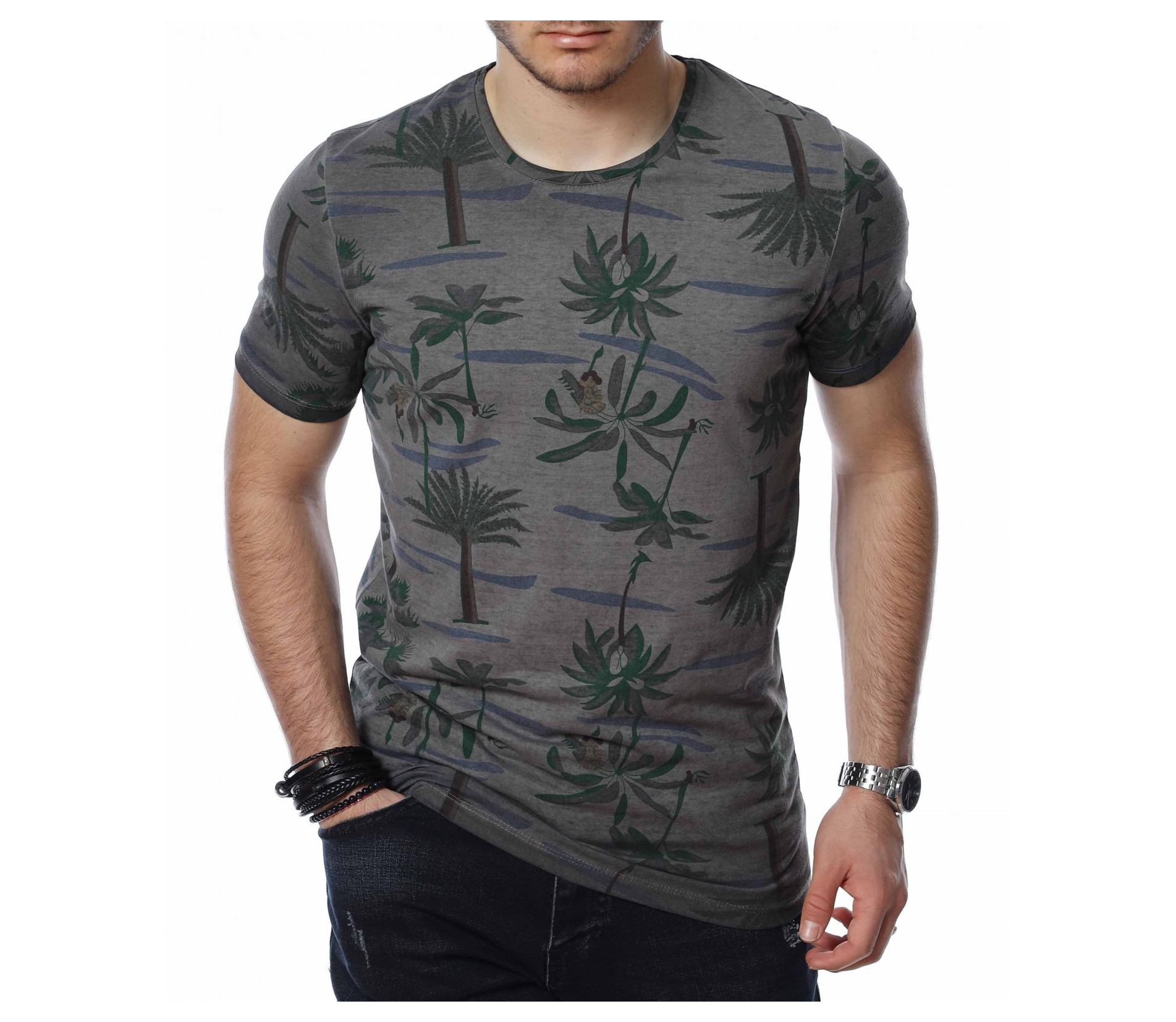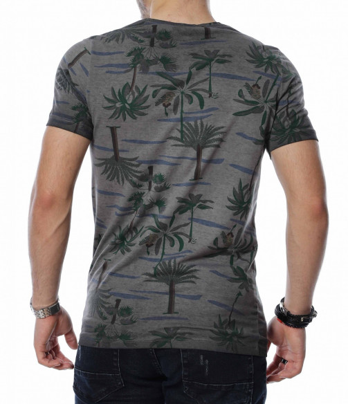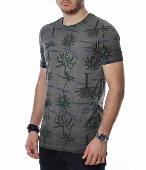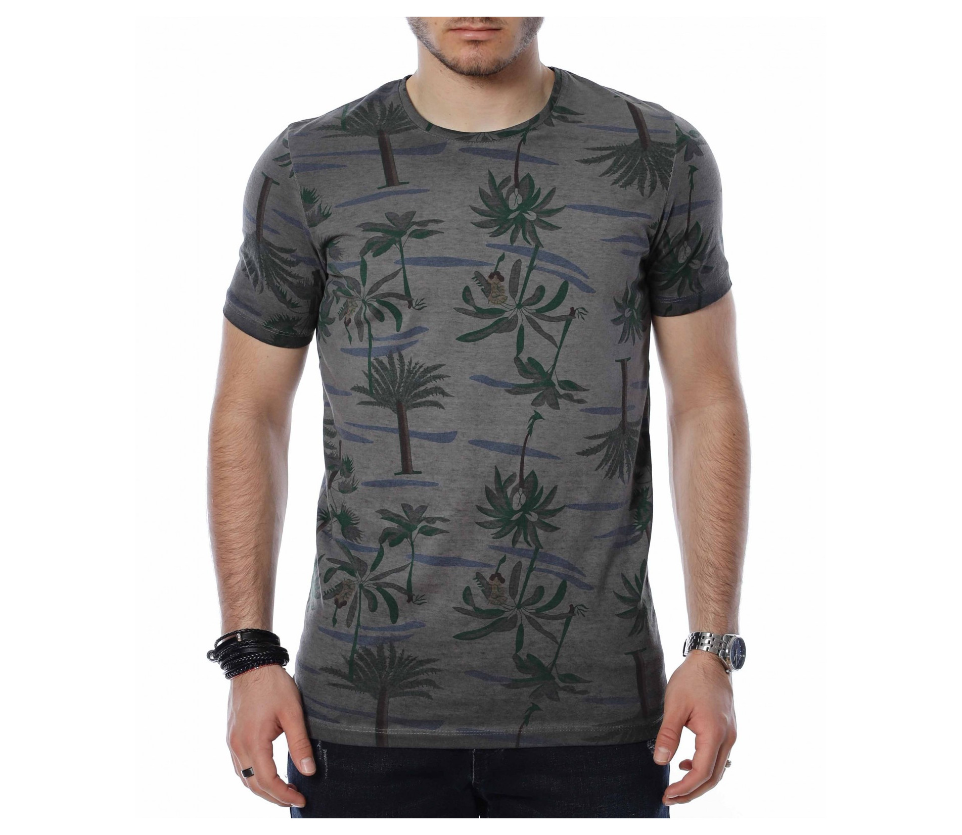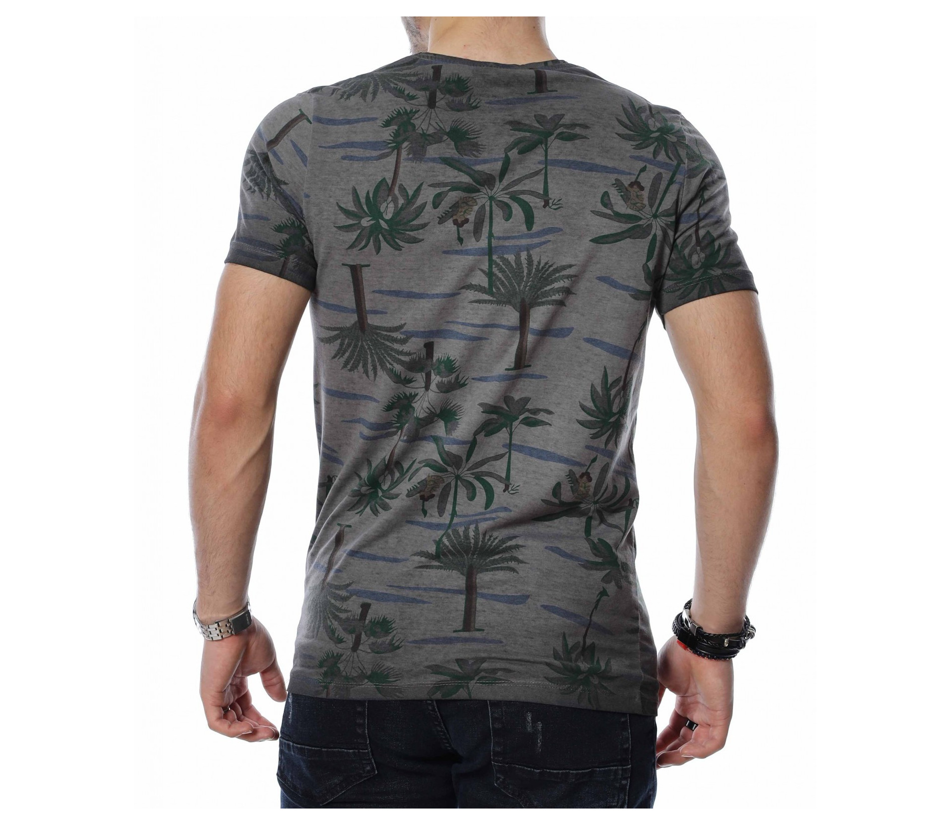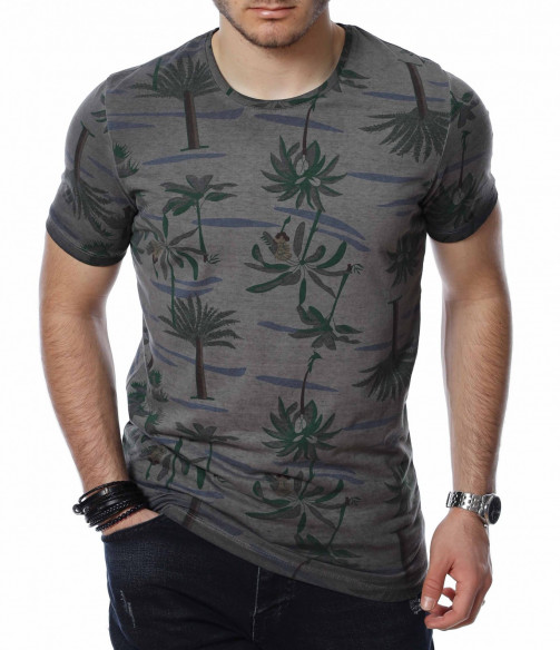 ОПИСАНИЕ НА ПРОДУКТА: Привлечи погледите на околните с типично лятна тениска, чиито принт ефектно се вписва в ежедневието. Декоративният ефект е представен под формата на изображения на палми, пръснати хаотично върху чисто зелена основа, изграждащи атрактивен акцент и контрастно влияние. Самата кройка е вталена с еластичност, пасваща безупречно на всеки силует, създавайки удобство, на което знаем, че държите. Памучната материя е силно предпочитана от мъжкото съсловие, особено през горещите, летни дни. Деколтето е обло и следва плавно обиколката ха врата. Съчетай с чифт дънки и удобни кецове за един перфектен, летен имидж.