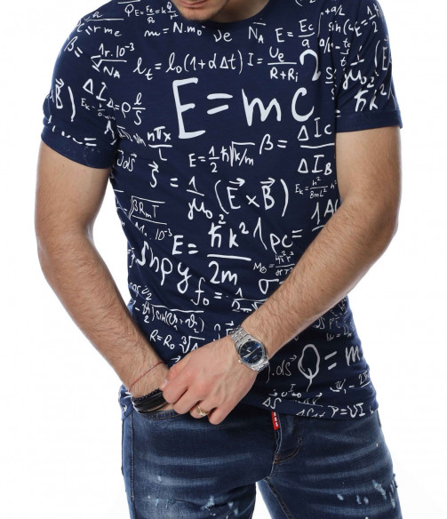 ОПИСАНИЕ НА ПРОДУКТА: За предстоящия сезон сме Ви подготвили модел тениска, която ще взриви представите Ви за актуалност. Уникалната компилация от изчистена основа и математически уравнения, разположени по цялата предна част на модела, изграждат уникален и неповторим контраст, който няма как да остане незабелязан. Уникалността на този дизайн е повлиян от последните модни тенденции, които приканят към по-щура, весела и свежа визия за целия сезон. Комбинирайте актуалната мъжка тишъртка с модерни дънки, спортно-елегантни кецове и заложете на класиката с ефектно кожено яке, за перфектен завършек.