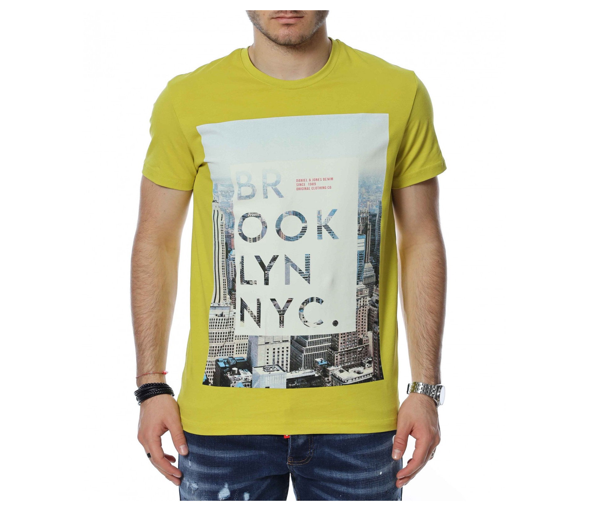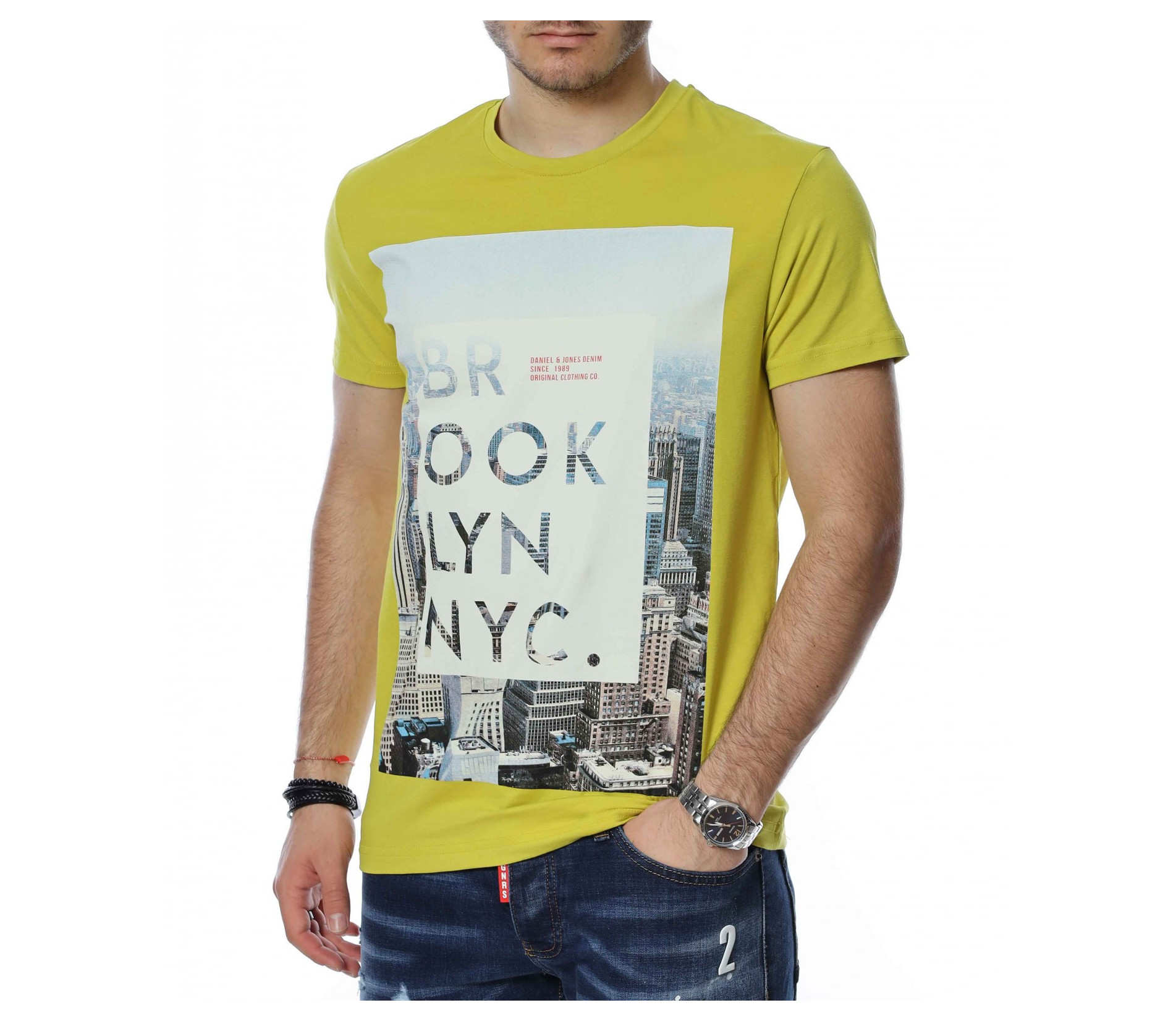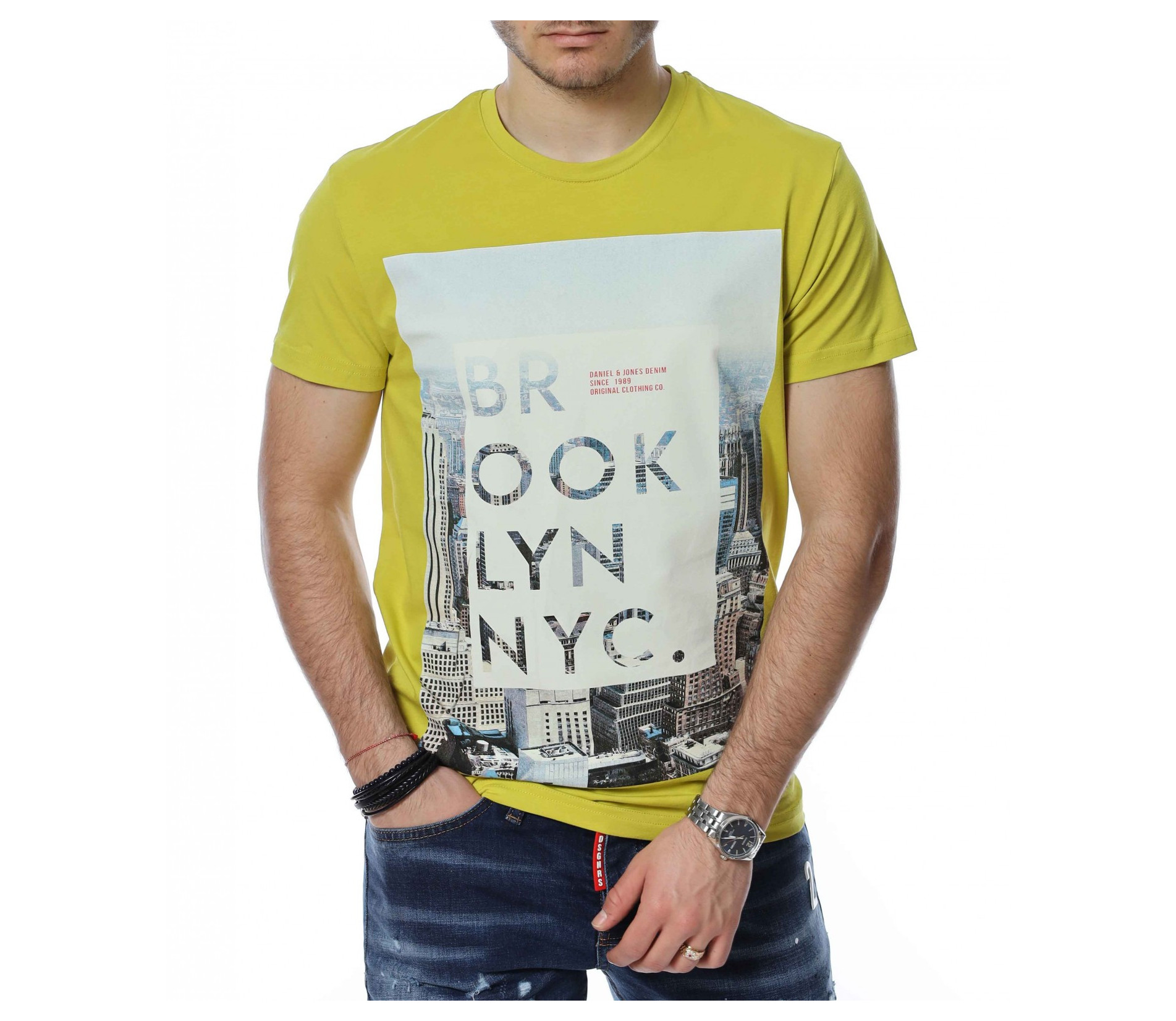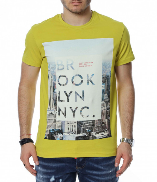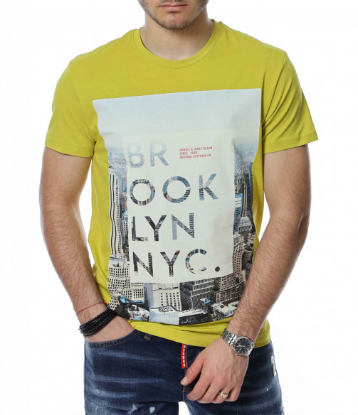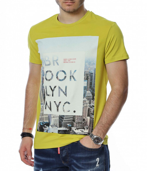 Тениска с апликация и надпис BROOKLYN 13488 - Жълт