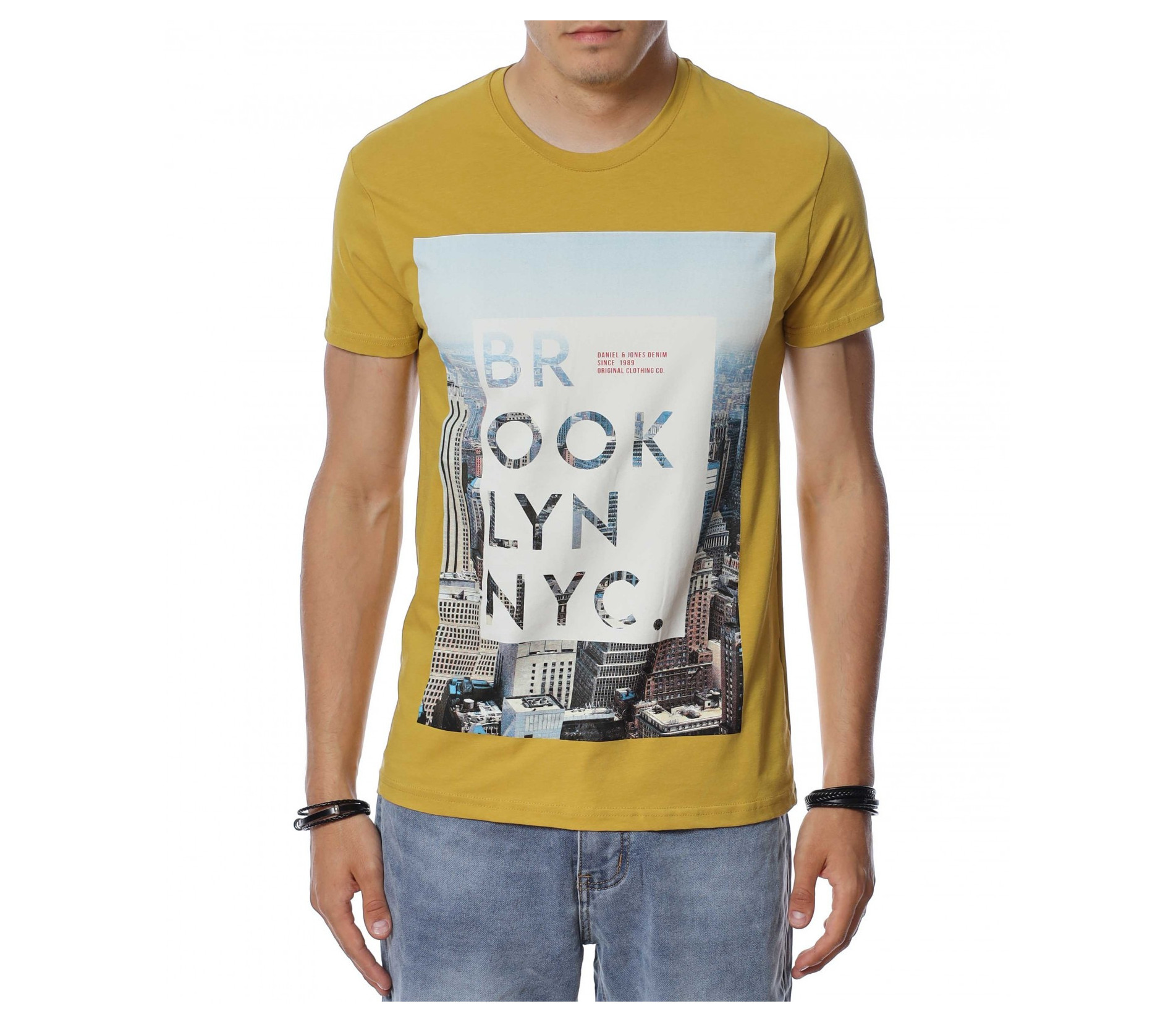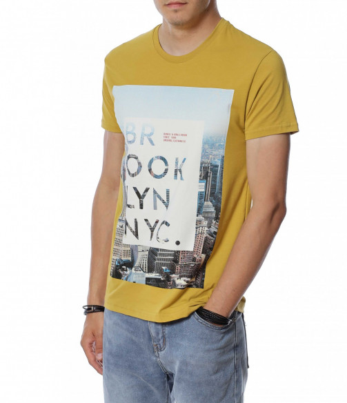 ОПИСАНИЕ НА ПРОДУКТА: Поредното предложение за всички фенове на разчупените модели мъжки тениски с къс ръкав. Грабни тази изкушаваща тишъртка в интересен жълто-зелен цвят и атрактивна апликация в цялата предна част. Фланелката е изработена изцяло от памук, като обещава чувство на комфорт. Деколтето е в любимата на всички овална форма, подчертано от кант в същия като основния цвят. Кройката е вталена и леко еластична. Комбинирай с богата гама дънки и обувки и изгради своя индивидуален street стайлинг.