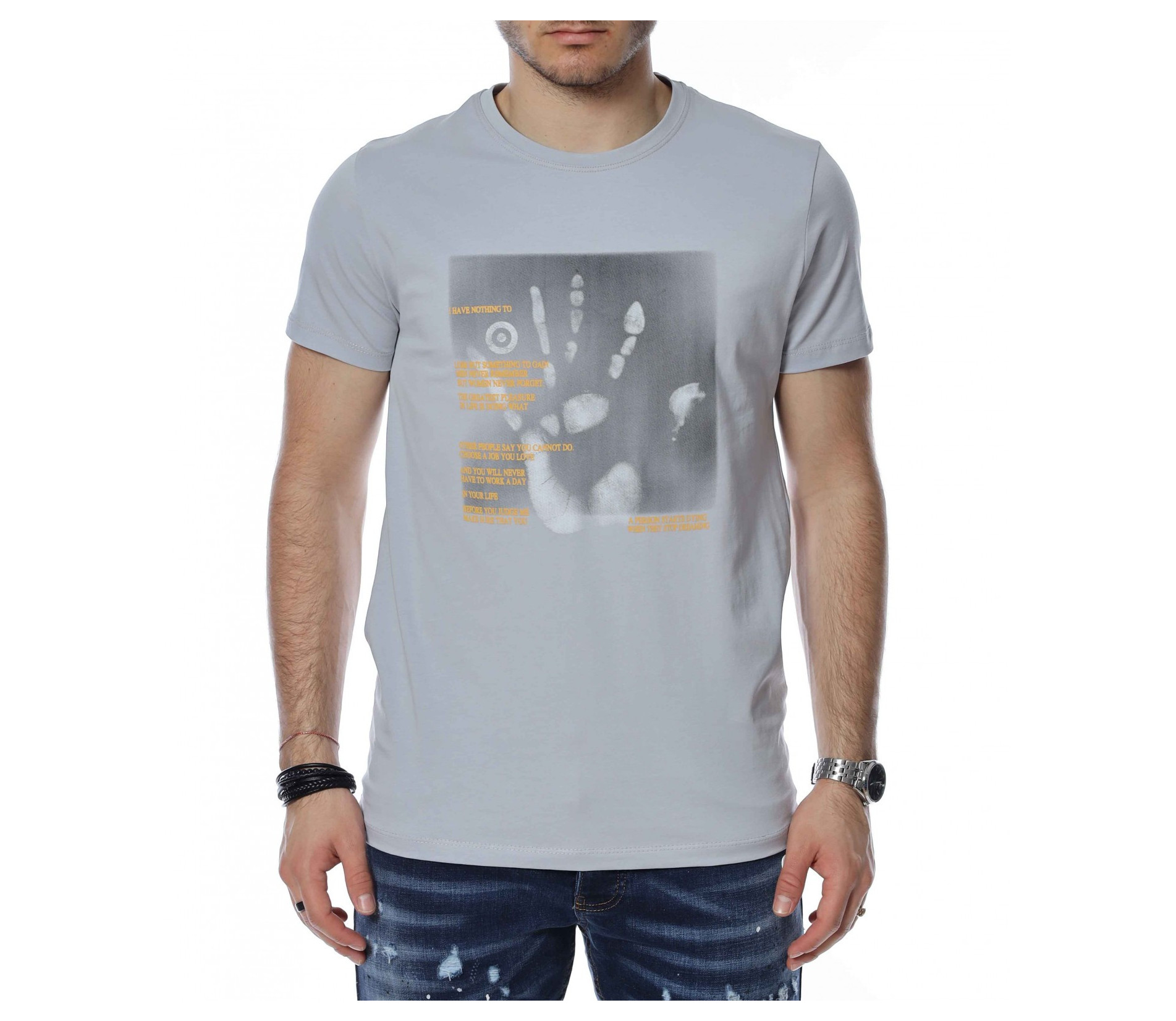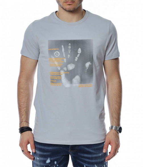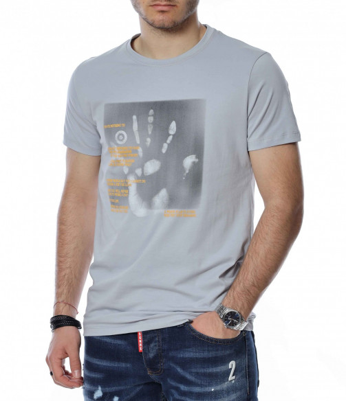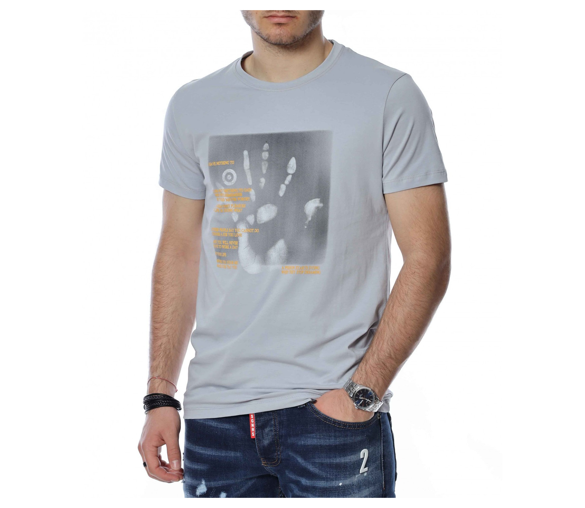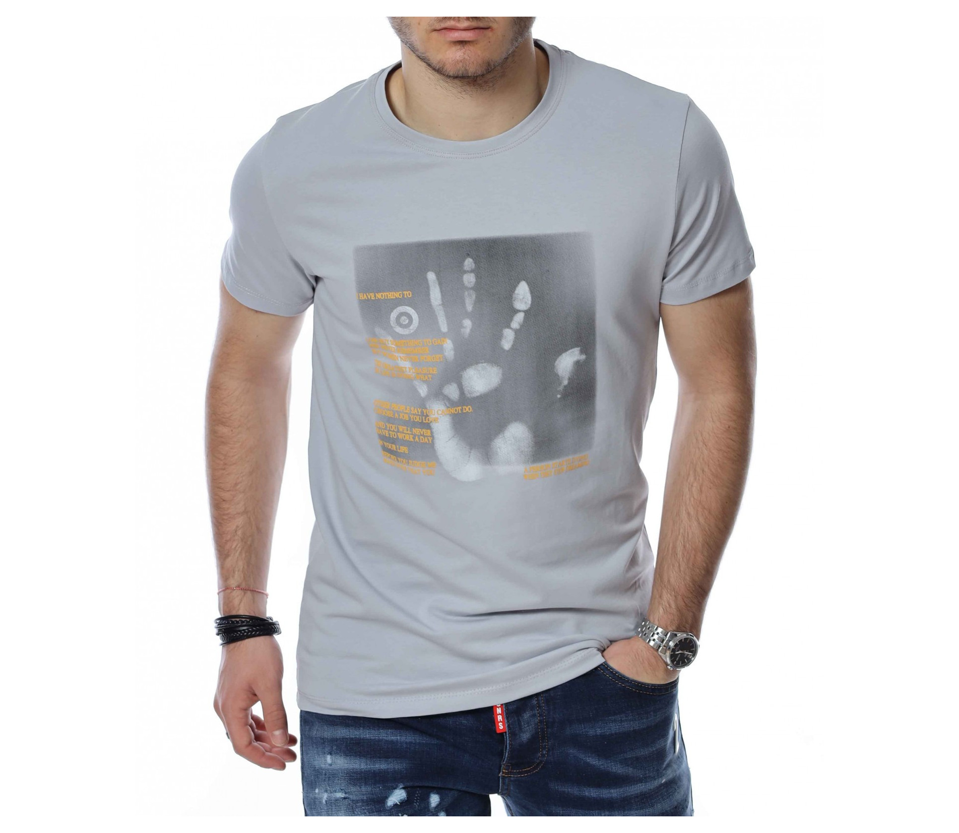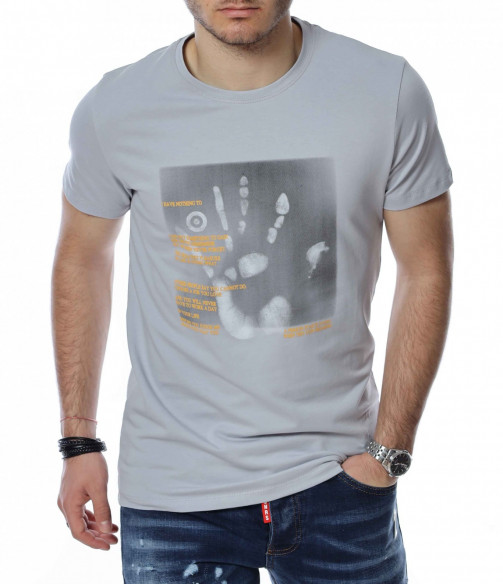 ОПИСАНИЕ НА ПРОДУКТА: Мъжка ефектна и много закачлива тениска с къс ръкав в светлосив нюанс. Този модел е заложил в себе си много свежест и лятно настроение, което се вдъхва от цветовете в нея. В областта на гърдите има интересна илюстрация на длан и надписи в контрастен цвят. Кройката е вталена, следваща линията на мъжкия силует, създавайки една перфектна визия. Деколтето на тениската е с овална форма, прибрана около врата. Задната част на блузата с къс ръкав е напълно изчистена, като целта е вниманието да падне в предната. Направи своя избор и разчупи ежедневието с нещо интересно и актуално.