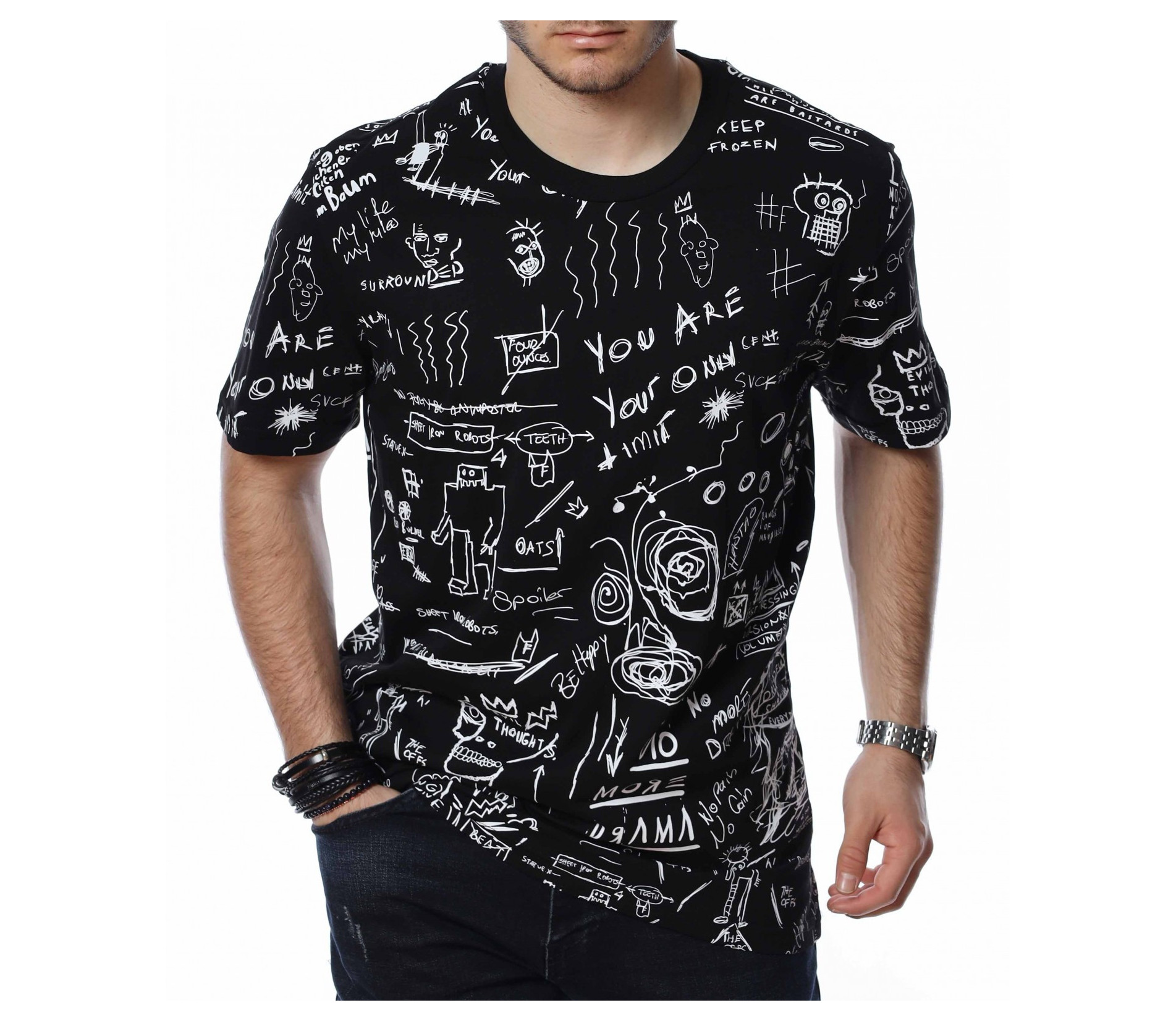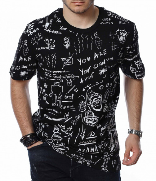 ОПИСАНИЕ НА ПРОДУКТА: Мъжка тениска в три цвята с надписи. Ето и едно много атрактивно предложение, типично попълнение към вашия пролетно-летен гардероб. Изработена от леки и прохладни материи, в класически нюанс и атрактивни шарки, тази фланелка с къс ръкав бързо печели вниманието и се налага сред хитовите модели. Кройката е леко вталена, а деколтето е обло, вкарващо много стил и практичен външен вид. По цялата основа на блузата  са разположени надписи в интересен шрифт и наклон, сформиращи един нетипичен и много cool дизайн. Акцентирай това лято на свежите нюанси, характеризиращи се с доза абсолютен моден писък. Съчетай с дънки и панталон в къс или дълъг вариант за една безупречна визия.