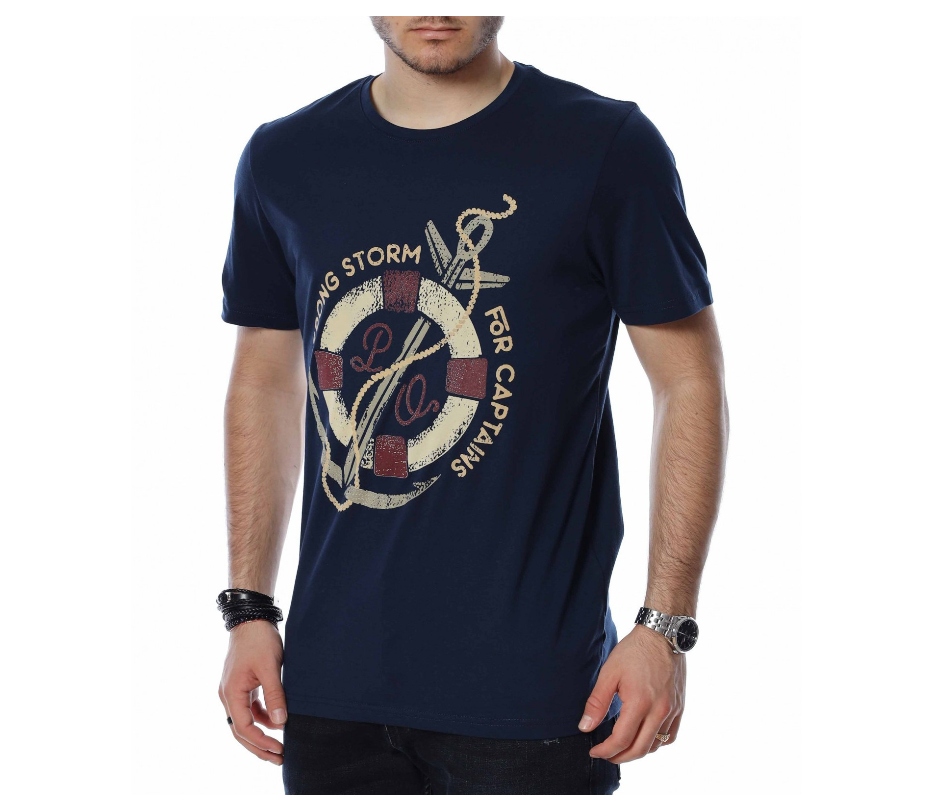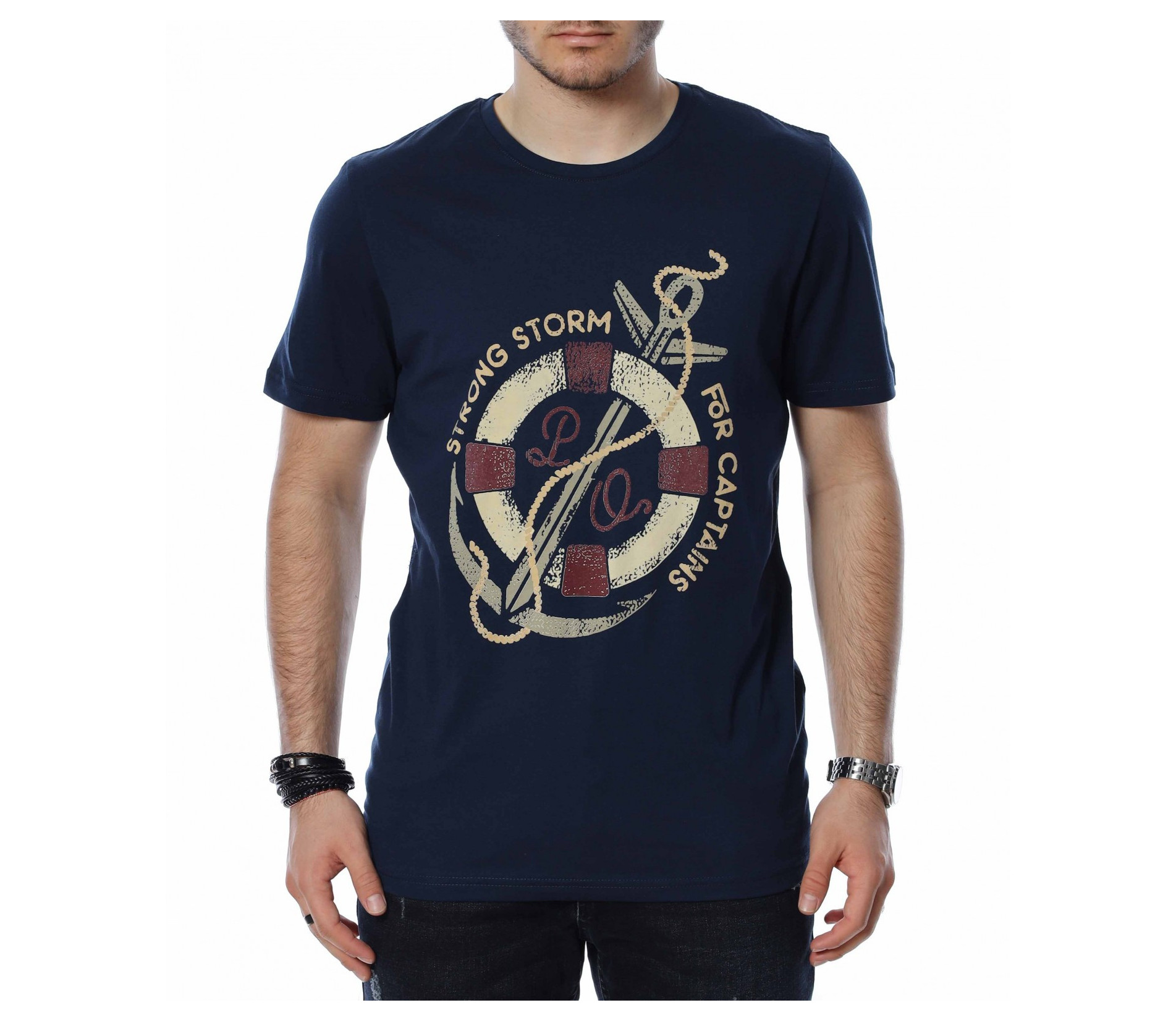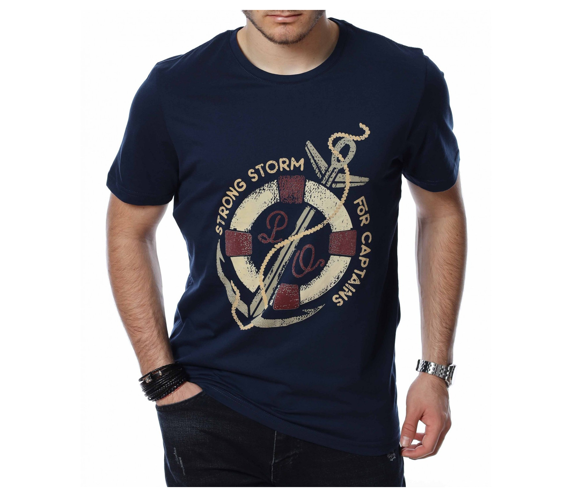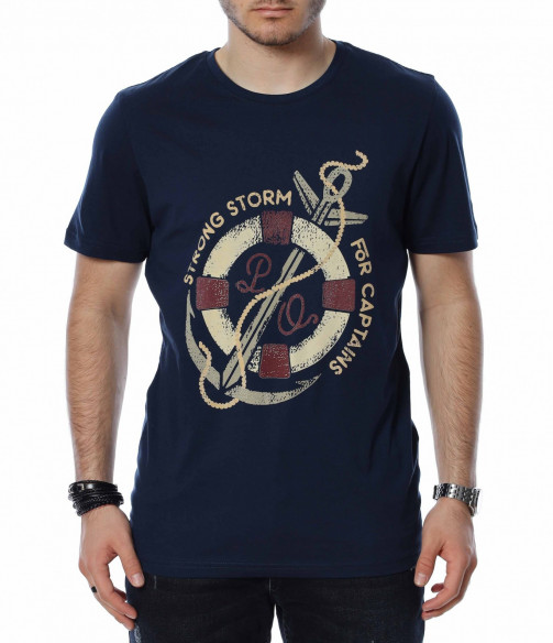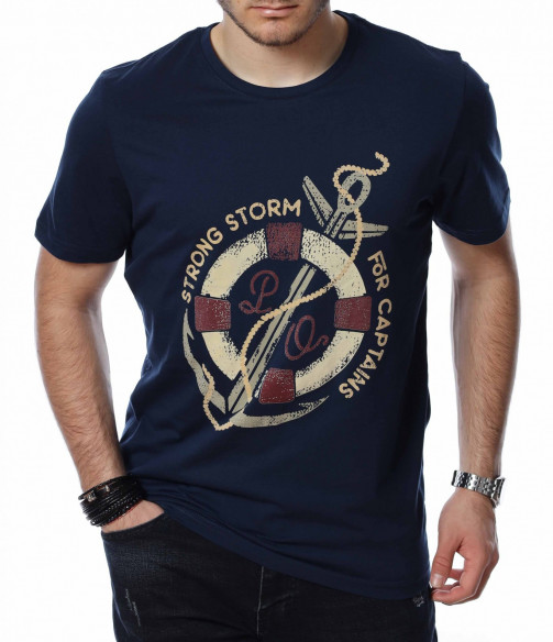 ОПИСАНИЕ НА ПРОДУКТА: За всички ценители на класическите модели тениски предлагаме тази модерна фланелка в  няколко цвята. Тук еднотипната основа е семпло и много умерено разчупена от апликация в кръгла форма, която е съчетание между морски елементи и няколко надписа, които в съчетание изграждат истински атрактивен дизайн. Кройката на тази тишъртка е вталена, но въпреки това,гарантира свобода при движение и неминуем комфорт дори през най-горещите летни дни. Деколтето е с овална форма, която я прави подходяща за всеки мъжки силует. Довери се на изпитаното и лесно създай своя собствен стайлинг, като качеството и модерното излъчване ще те придружават във всяка една ситуация.