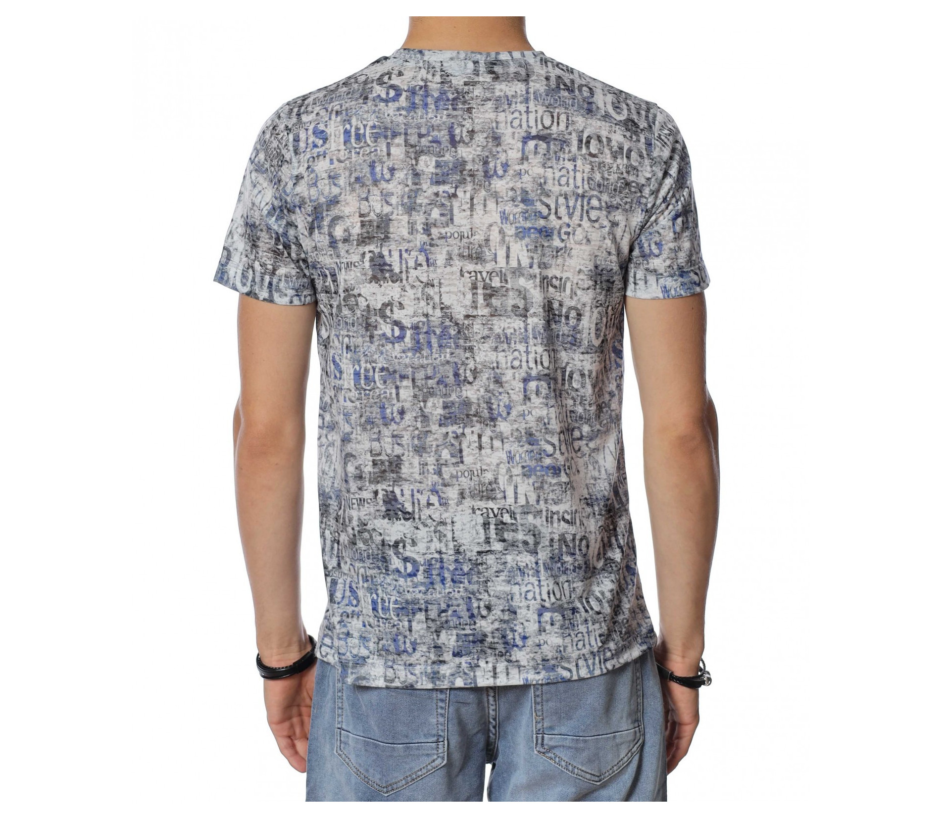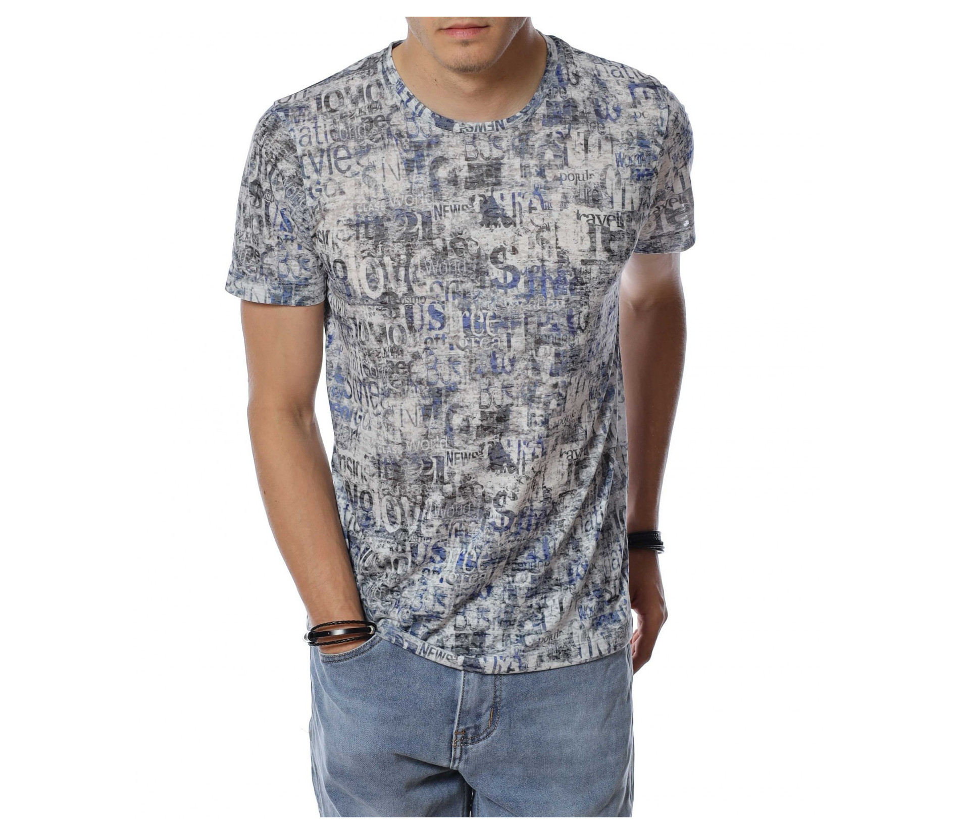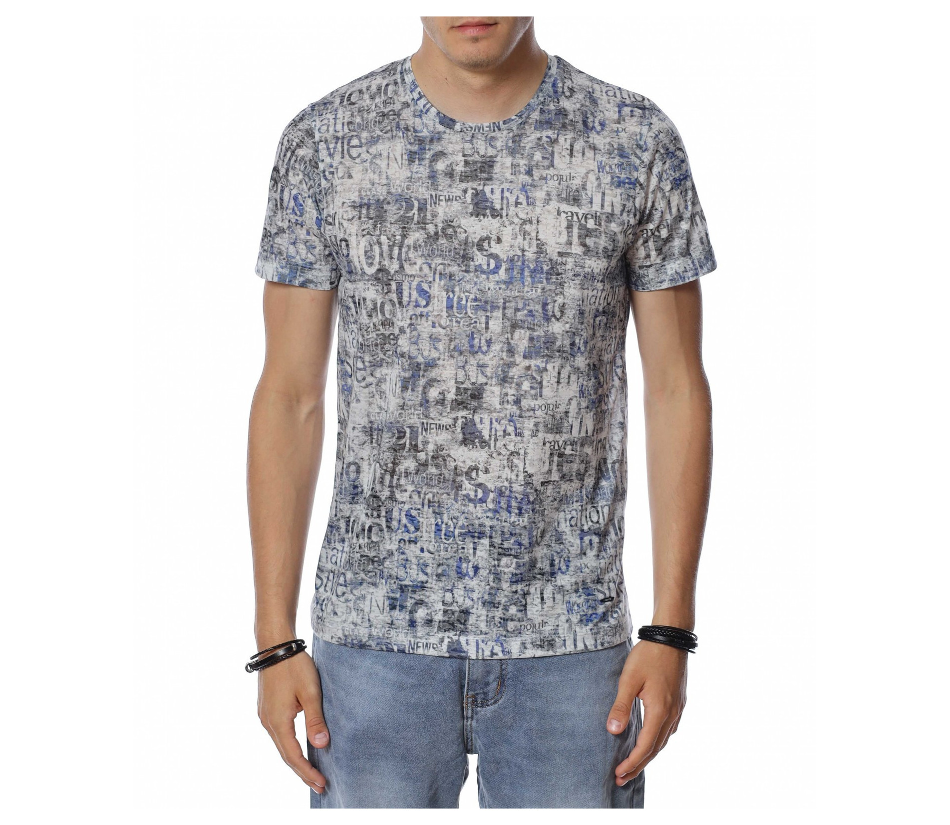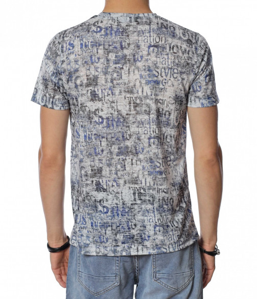 ОПИСАНИЕ НА ПРОДУКТА: Бъди ефектен този сезон с уникален модел тениска в две цветови разновидности. Стани олицетворение на твоя любим из между предлаганите и направи стайлинга си неотразим и много индивидуален. Лесно можеш да съчетаеш този daily тишърт с любимите си дънки, спортни кецове и яке по избор, за да изградиш една цялостна ефектна визия. По цялата тениска са разпръснати стилизирани надписи, което придава доза разчупеност и атрактивна нотка. Деколтето е с овална форма, а кройката леко вталена, обещаваща много удобство и комфорт. Не се колебай а лесно се сдобий със супер атрактивен модел мъжка тениска.