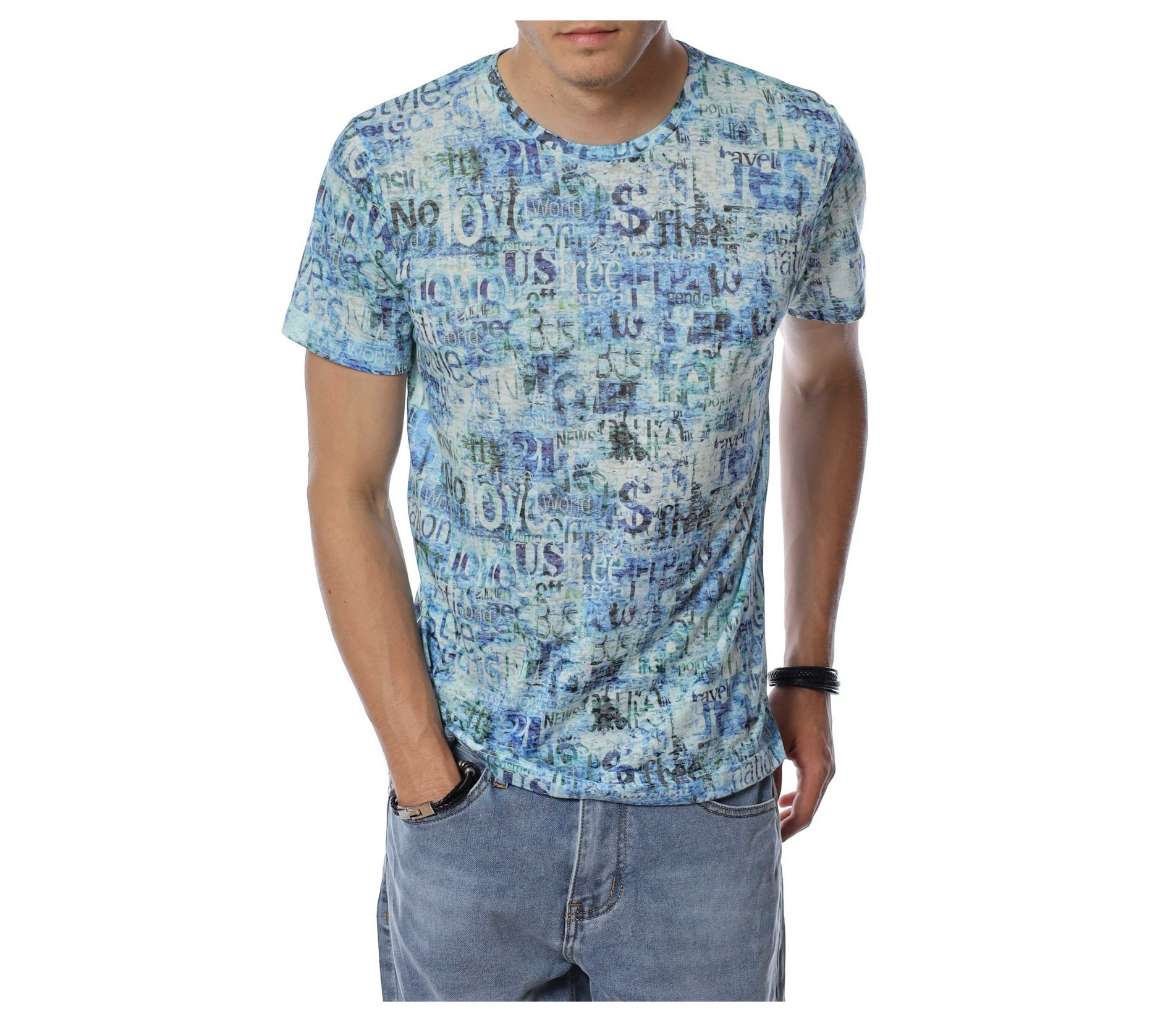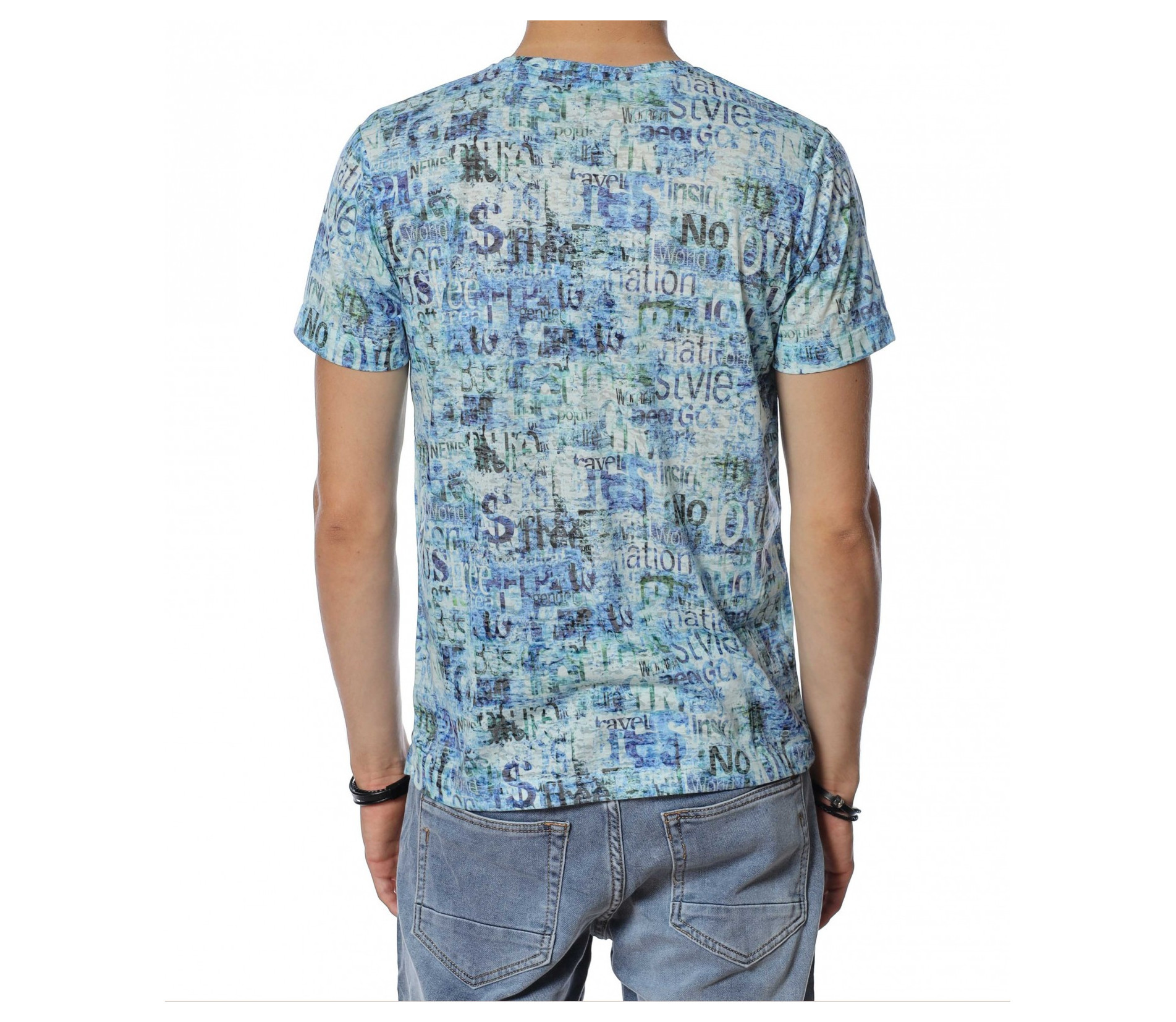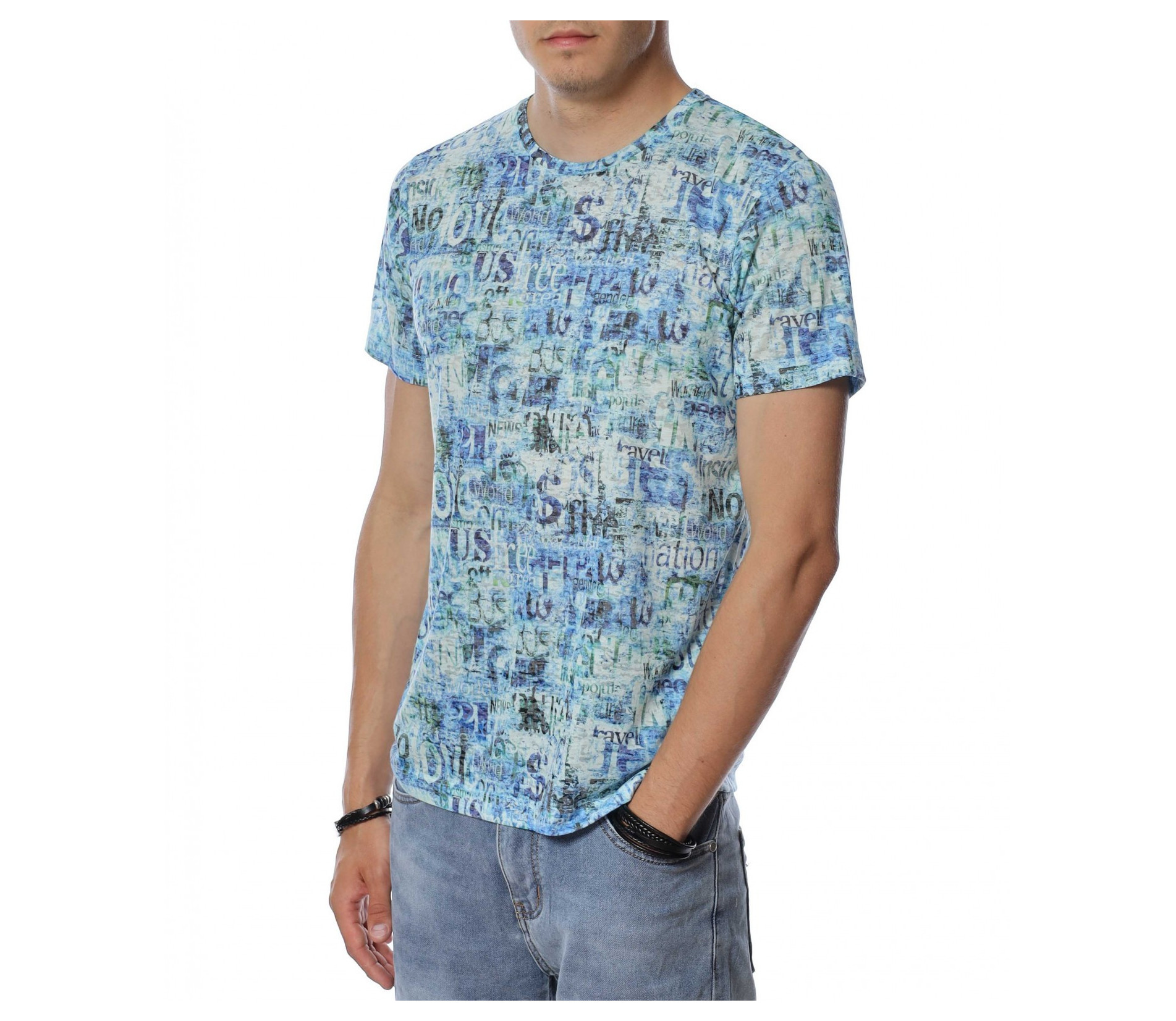 ОПИСАНИЕ НА ПРОДУКТА: Бъди ефектен този сезон с уникален модел тениска в две цветови разновидности. Стани олицетворение на твоя любим из между предлаганите и направи стайлинга си неотразим и много индивидуален. Лесно можеш да съчетаеш този daily тишърт с любимите си дънки, спортни кецове и яке по избор, за да изградиш една цялостна ефектна визия. По цялата тениска са разпръснати стилизирани надписи, което придава доза разчупеност и атрактивна нотка. Деколтето е с овална форма, а кройката леко вталена, обещаваща много удобство и комфорт. Не се колебай а лесно се сдобий със супер атрактивен модел мъжка тениска.