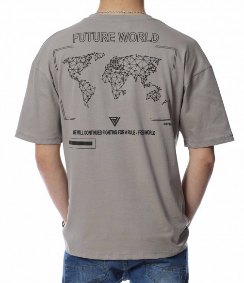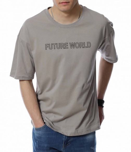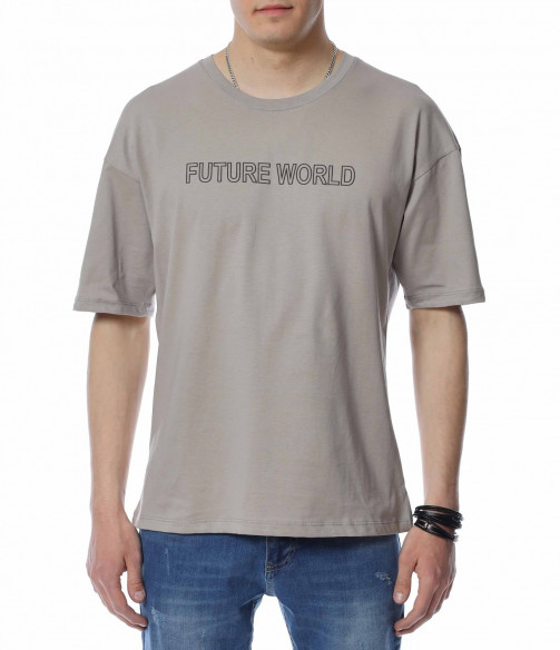 Тениска с надпис FUTURE WORLD 13625 - Сив