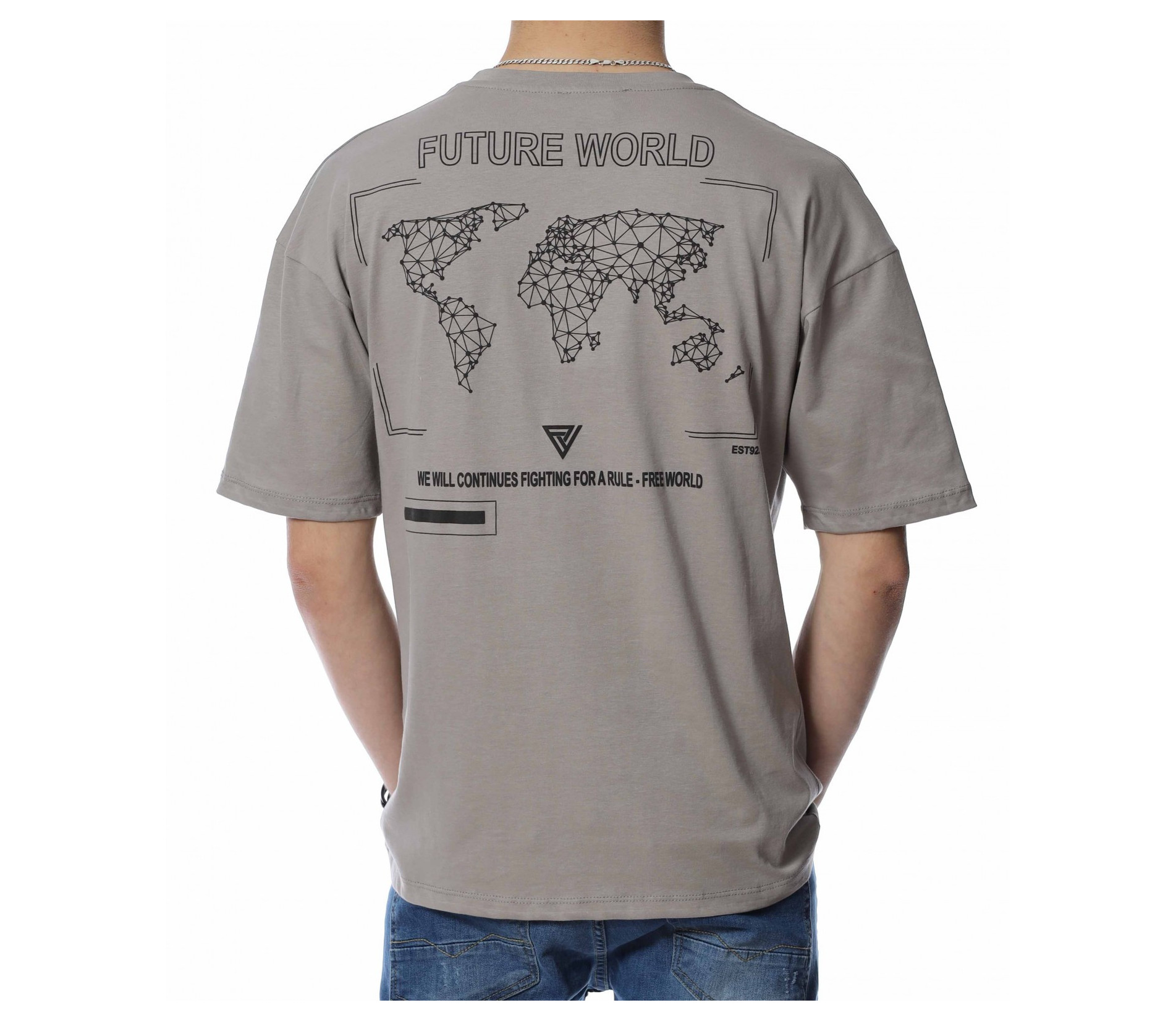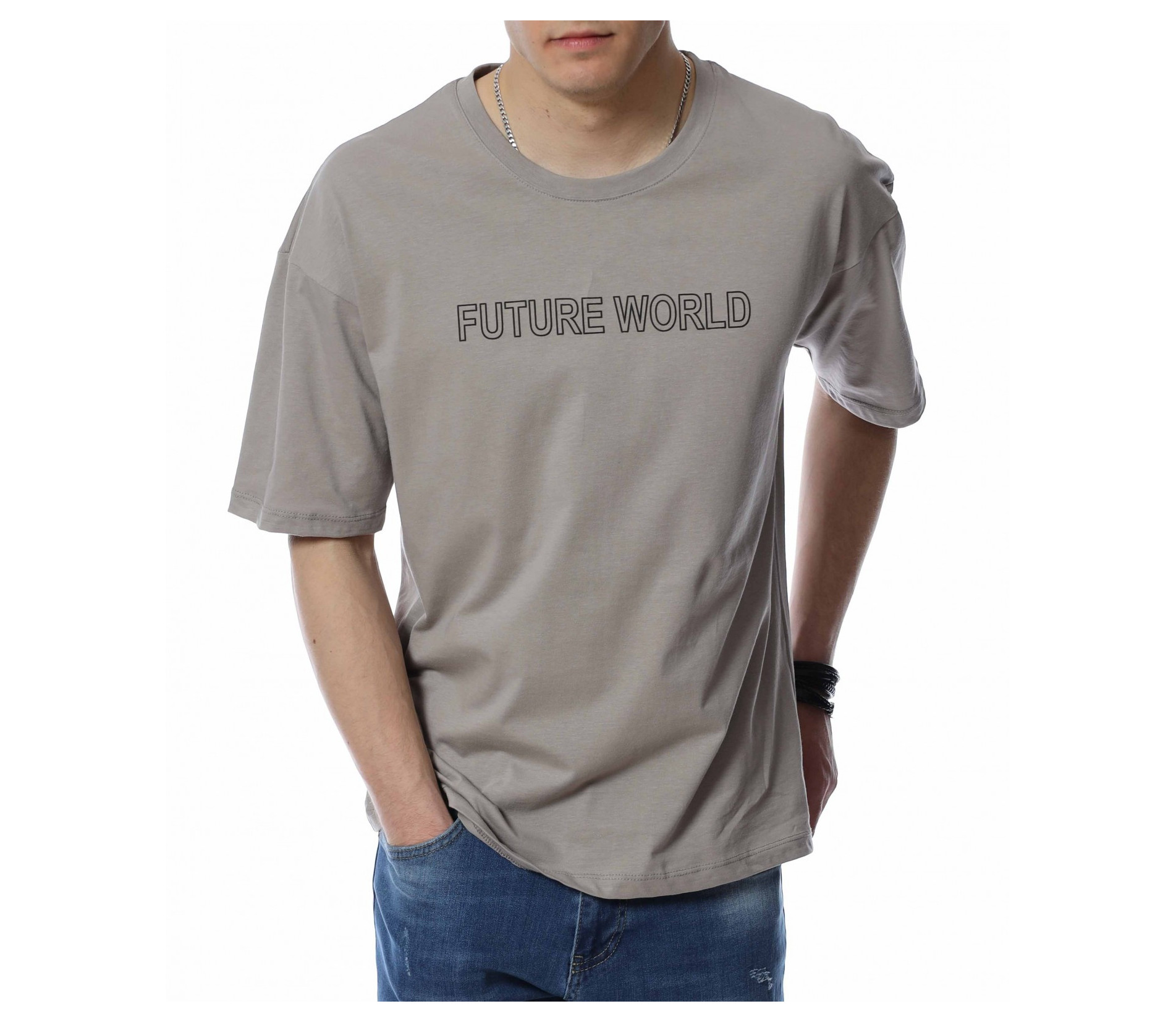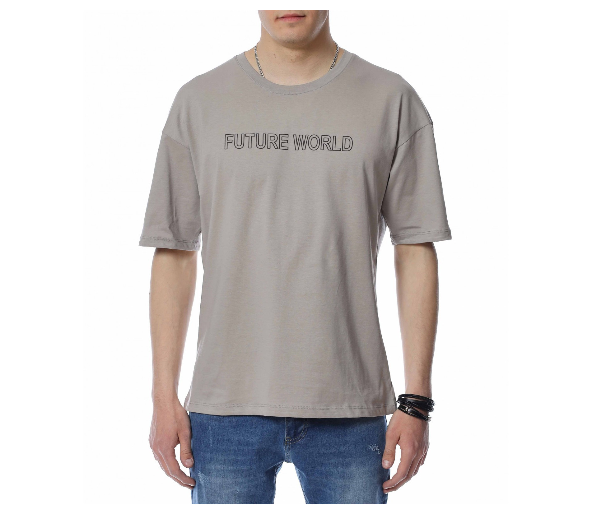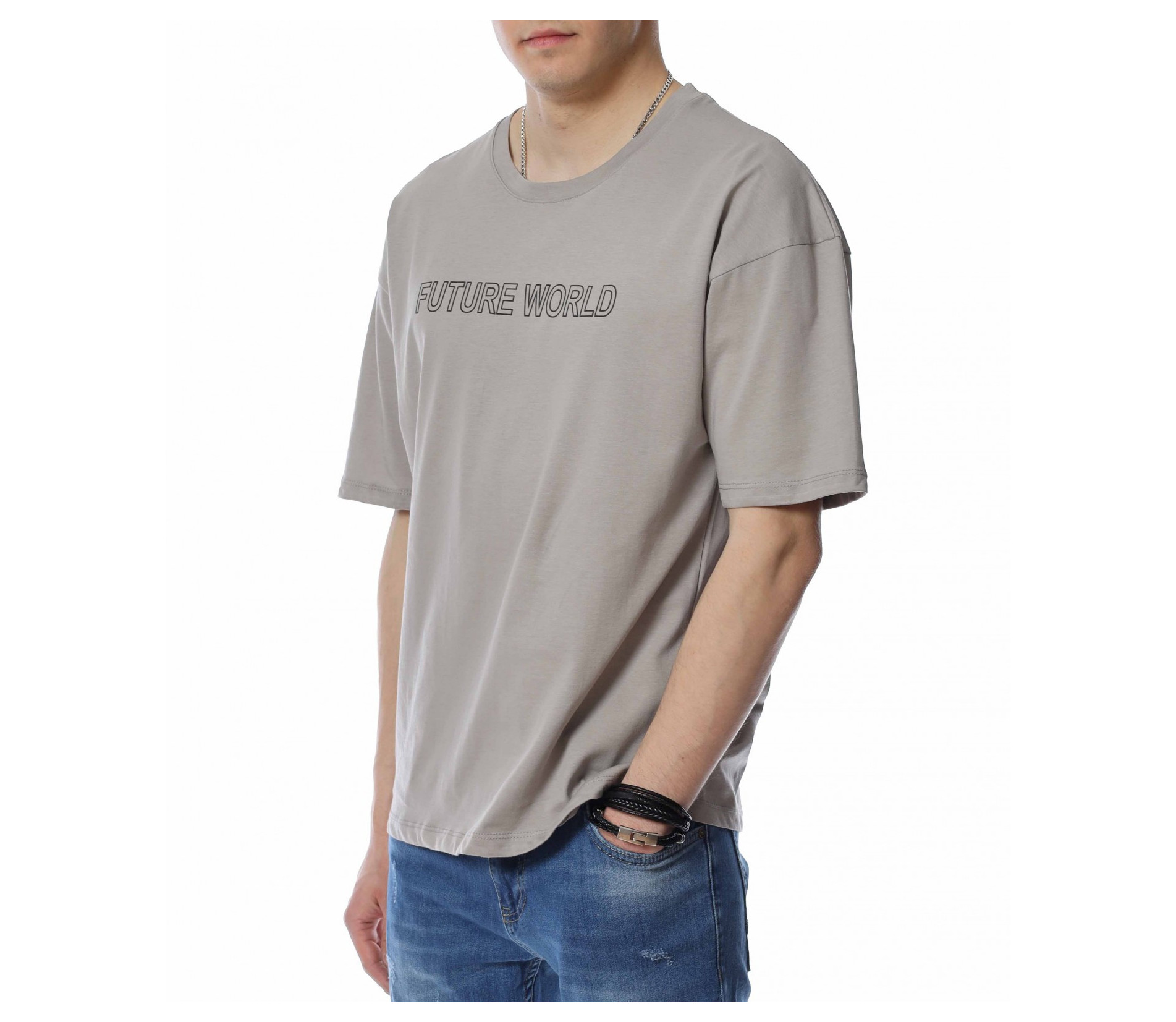 ОПИСАНИЕ НА ПРОДУКТА: За предстоящия сезон сме подготвили набор от супер актуални, впечатляващи и много важно, удобни и дишащи тениски, които да създават максимален комфорт на тялото Ви. Именно такъв е и този тишърт, изграден на основата на свободна линия, в уголемени размери, за да откриете точния за Вас модел. В лицето на дизайна откриваме един изключително запомнящ се сив или черен нюанс, които е декориран с релефен надпис при гърдите, който гласи FUTURE WORLD. Освен oversized линията, този модел тениска е поверен и на най-подходящата материя за горещия сезон, а именно памучната. Не правете компромис с дрехите си, за да изглеждате също толкова добре, както се и чувствате.