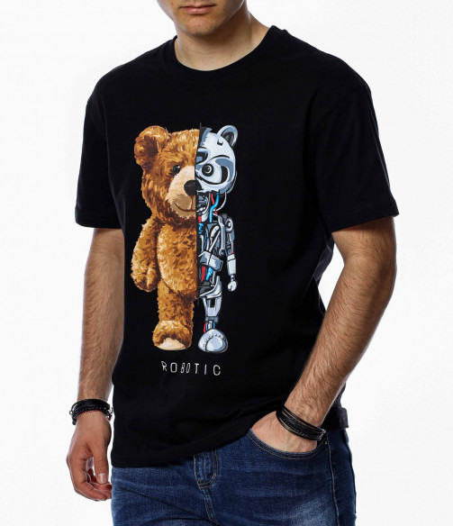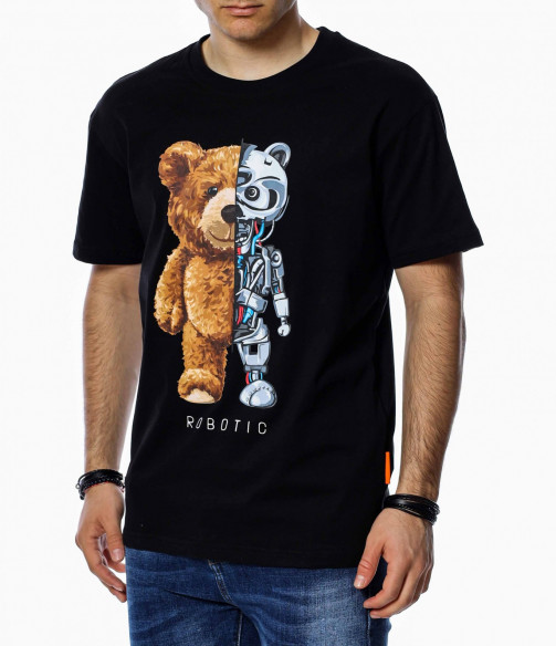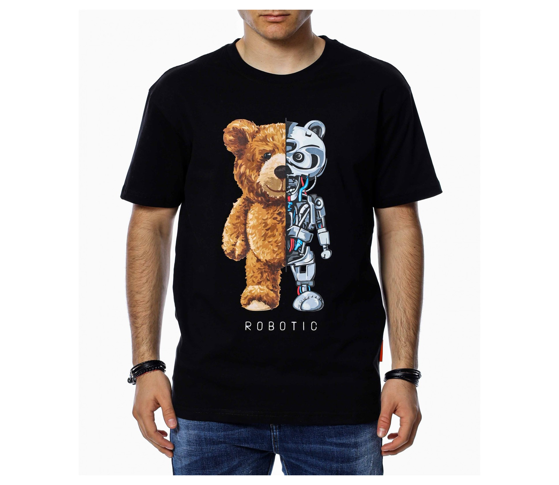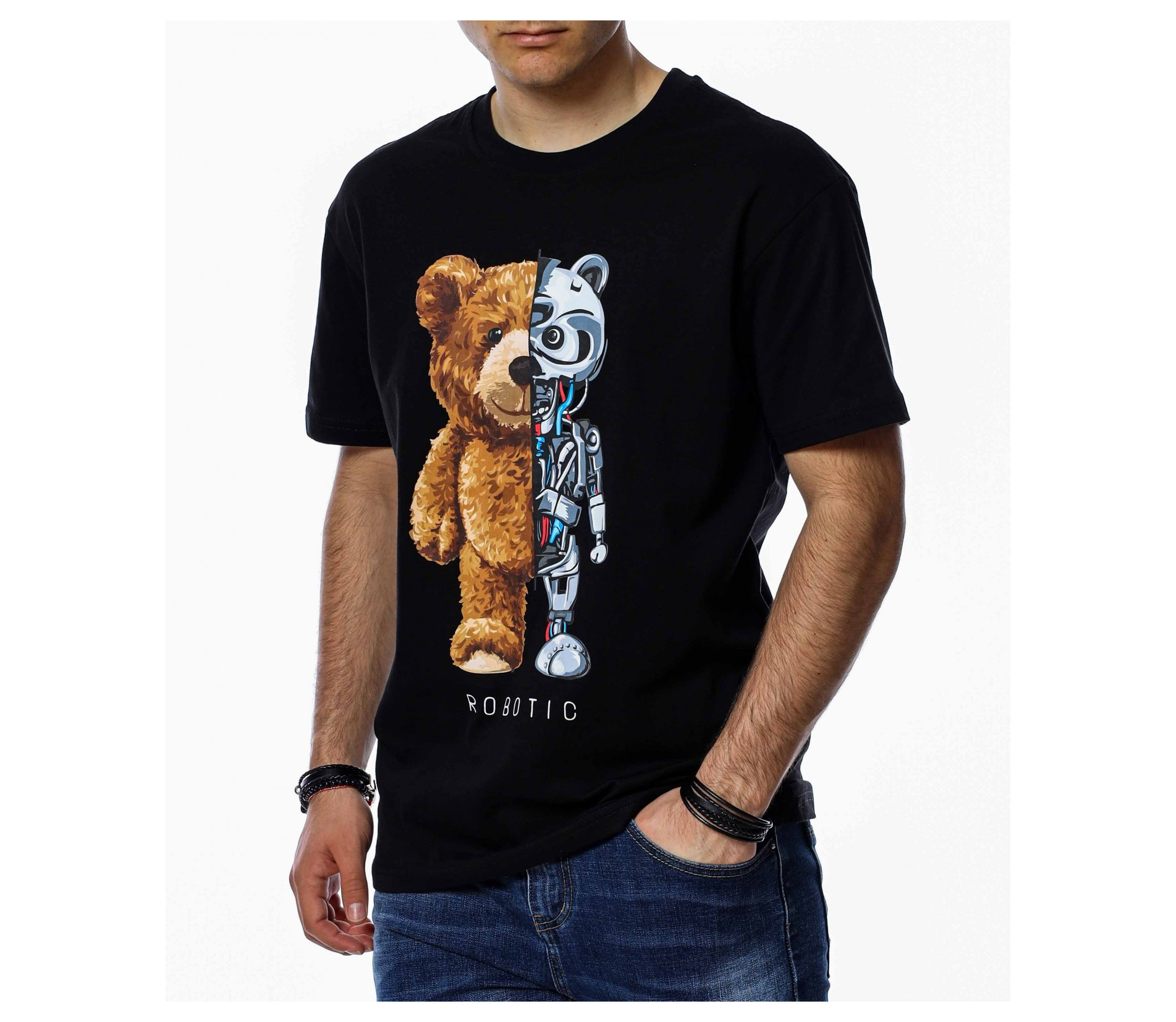ОПИСАНИЕ НА ПРОДУКТА: Тениските са неизменна част от всеки гардероб, затова за вас сме подбрали - мъжка тениска с голяма апликация. Основата е едноцветна и изчистена, а в предната част е позиционирана голяма щампа с мечка и надпис под нея. Задната част е напълно изистена от декорации, за да може акцентът да падне отпред.  Кройката е свободна и даваща достатъчна свобода на движение. Благодарение на меката си материя, моделът ще ви предостави незаменим комфорт и лекота. Комбинирайте със свежи кецове и дънки или завършете клубна визия, това оставяме на вашите предпочитания и личен стил.
