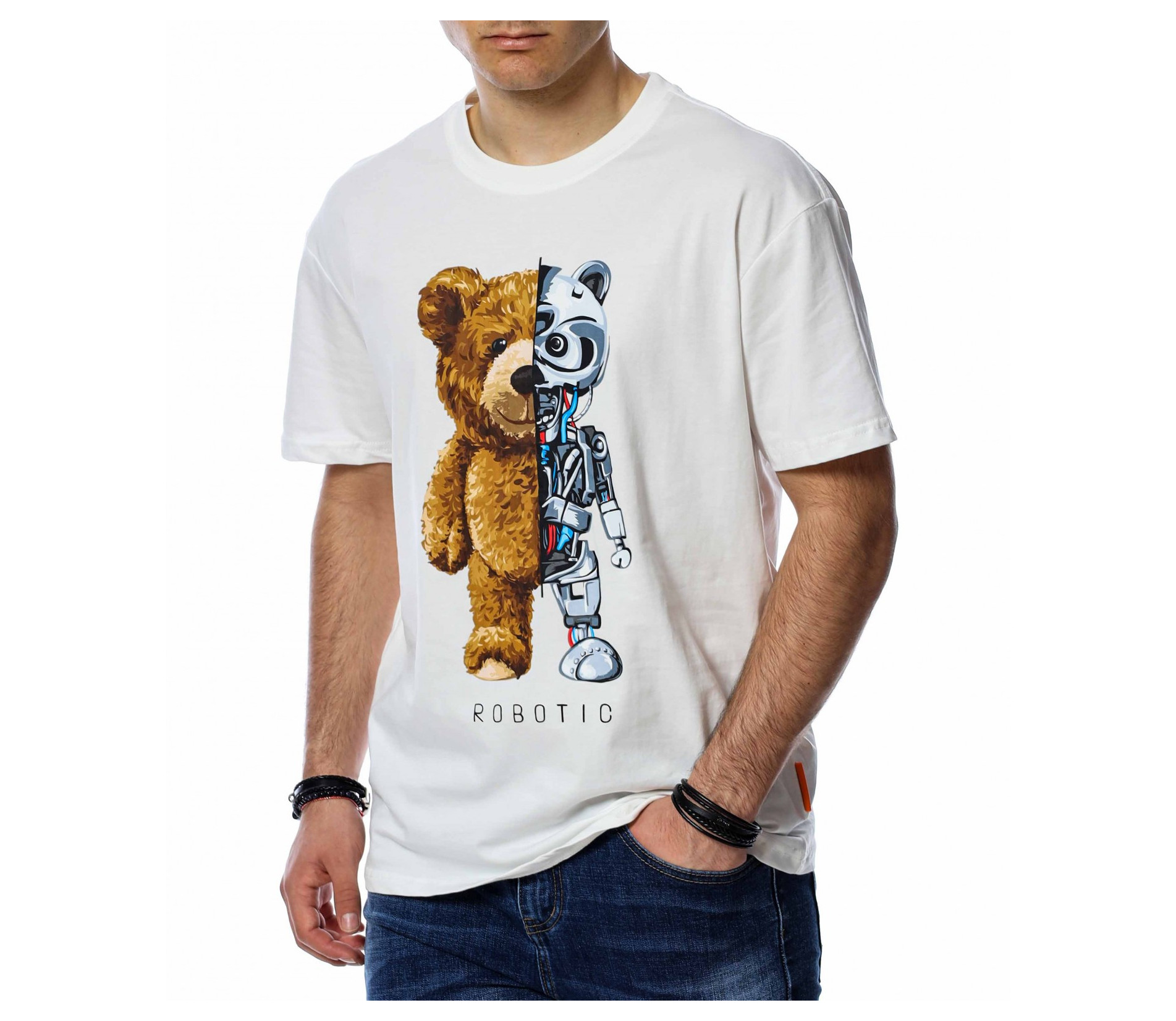 ОПИСАНИЕ НА ПРОДУКТА: Тениските са неизменна част от всеки гардероб, затова за вас сме подбрали - мъжка тениска с голяма апликация. Основата е едноцветна и изчистена, а в предната част е позиционирана голяма щампа с мечка и надпис под нея. Задната част е напълно изистена от декорации, за да може акцентът да падне отпред. Кройката е свободна и даваща достатъчна свобода на движение. Благодарение на меката си материя, моделът ще ви предостави незаменим комфорт и лекота. Комбинирайте със свежи кецове и дънки или завършете клубна визия, това оставяме на вашите предпочитания и личен стил.
