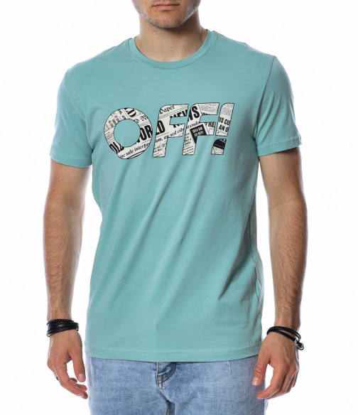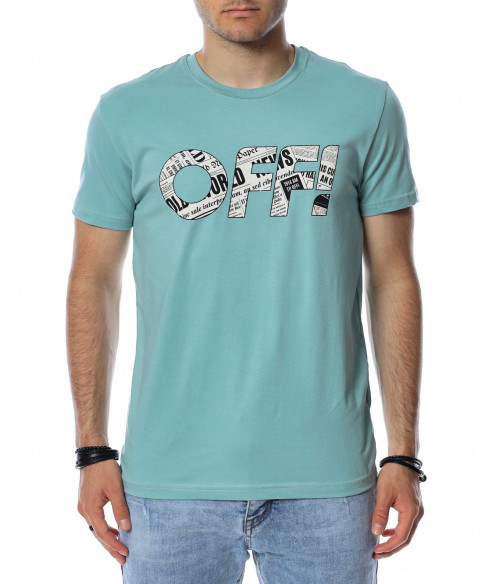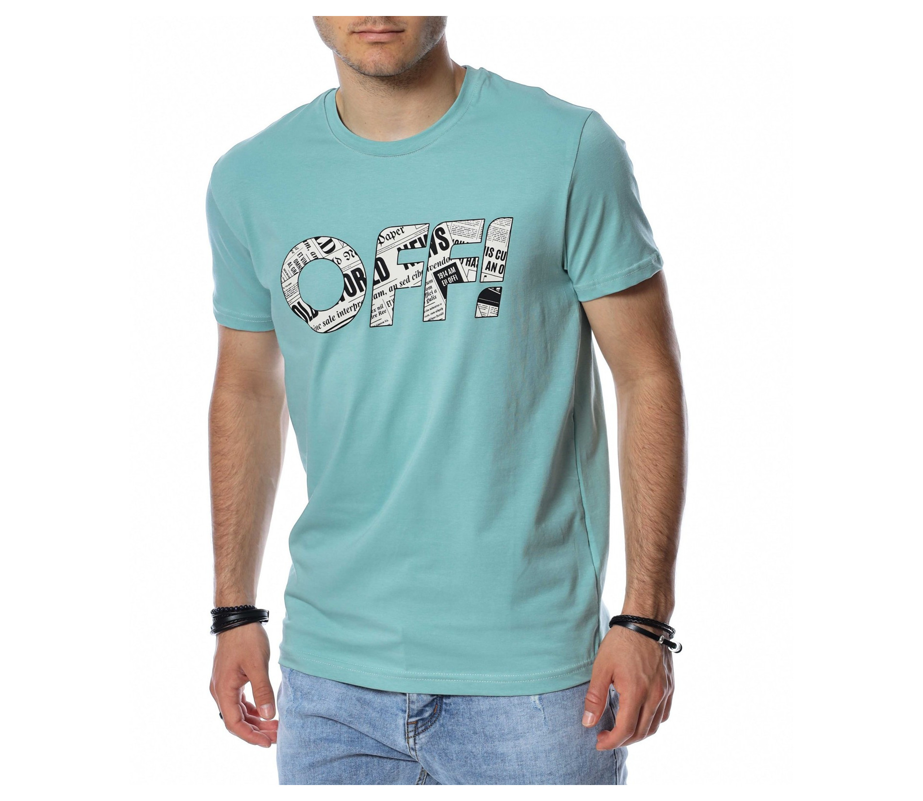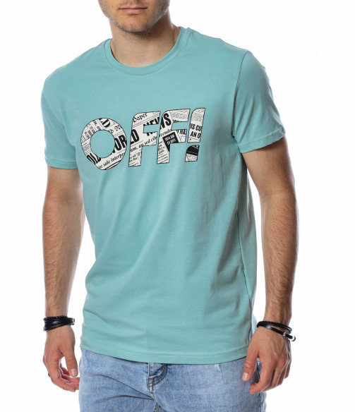 ОПИСАНИЕ НА ПРОДУКТА: Мъжка свежа тениска с модерна и интересна апликация. Акцентът на модела пада в предната част. Апликацията тип надпис е засилена с декорация вестник в буквите. Гърбът е напълно изчистен, а деколтето е овално и прибрано. Тениската е втален модел, по тялото. Изработена е от 100%памук за удобство и прохлада през топлите дни. Предлага се в три атрактивни цвята. Добре се  съчетава с къси дънки, панталони кецове и аксесоар по Ваш вкус. Не се колебайте, а смело комбинирайте този тишърт с раздвижени модели дрехи, за да постигнете уникална куул визия.