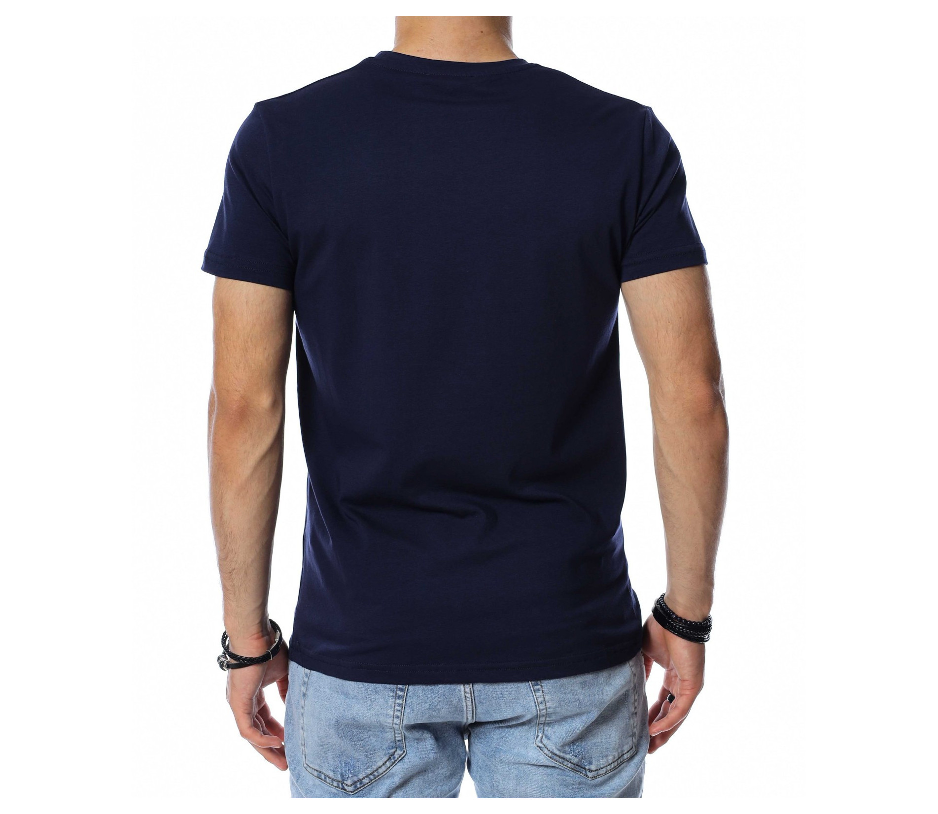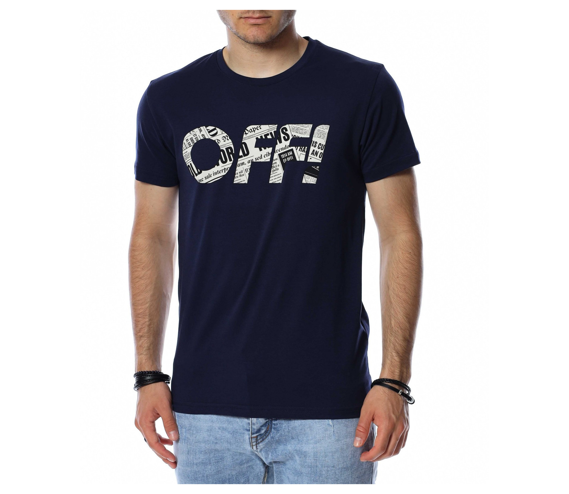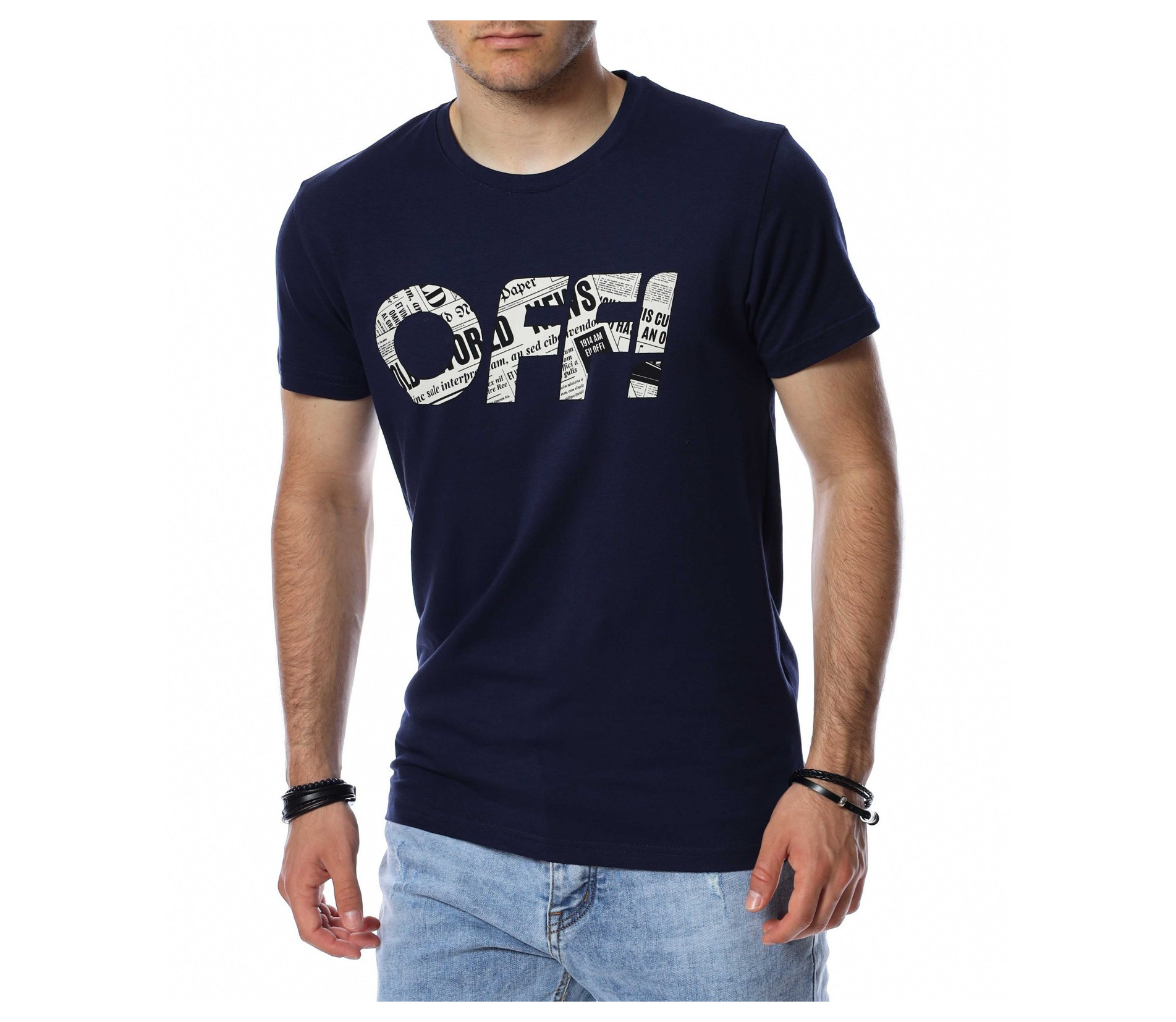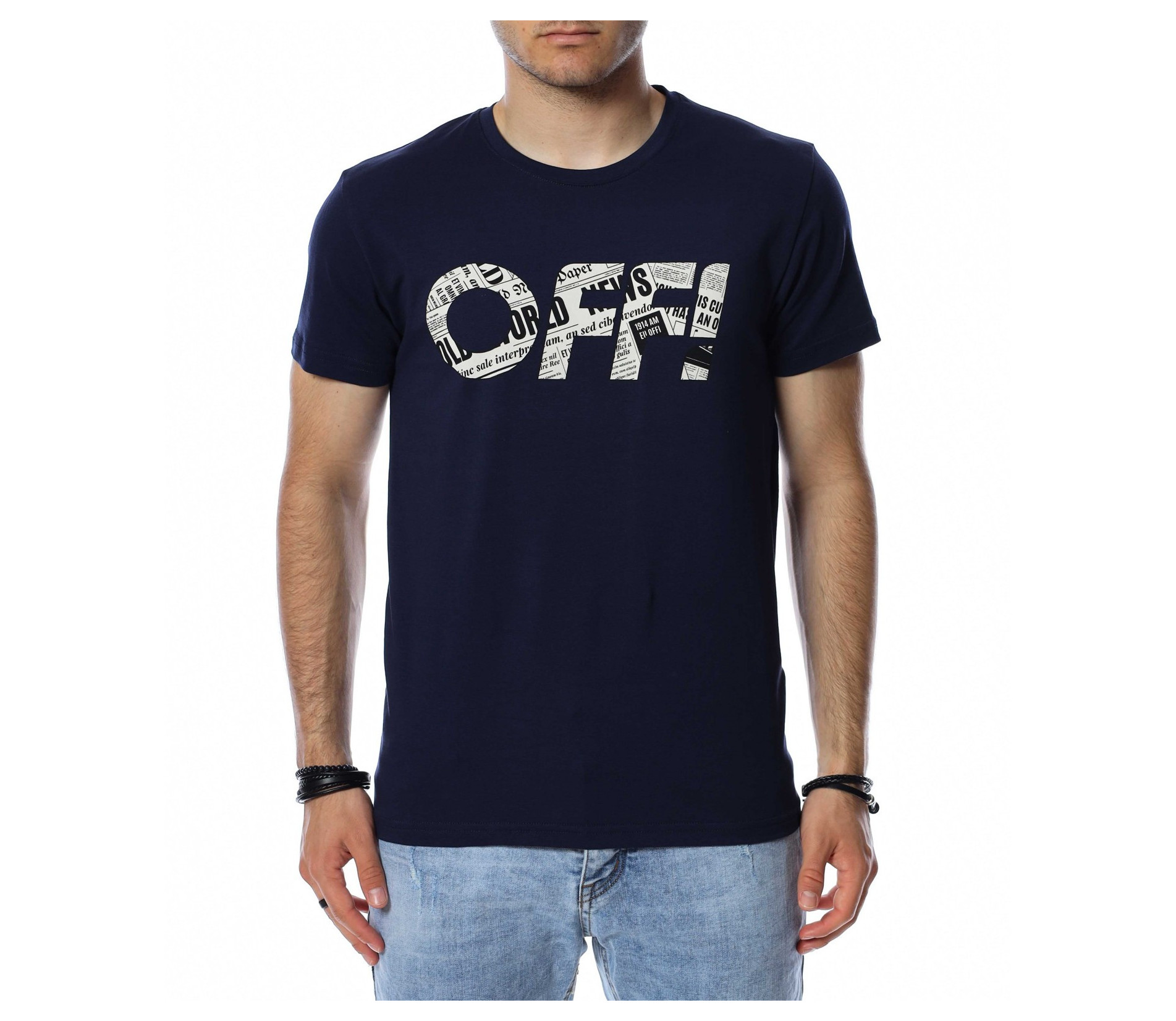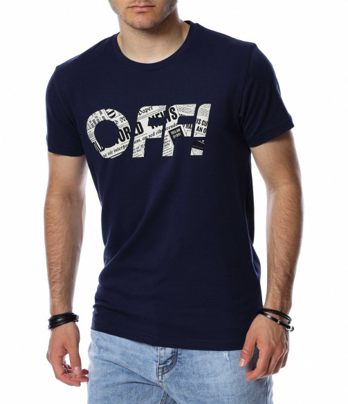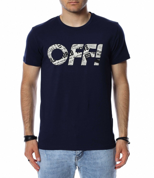 Цветна тениска с надпис OFF 13759 - Тъмно син