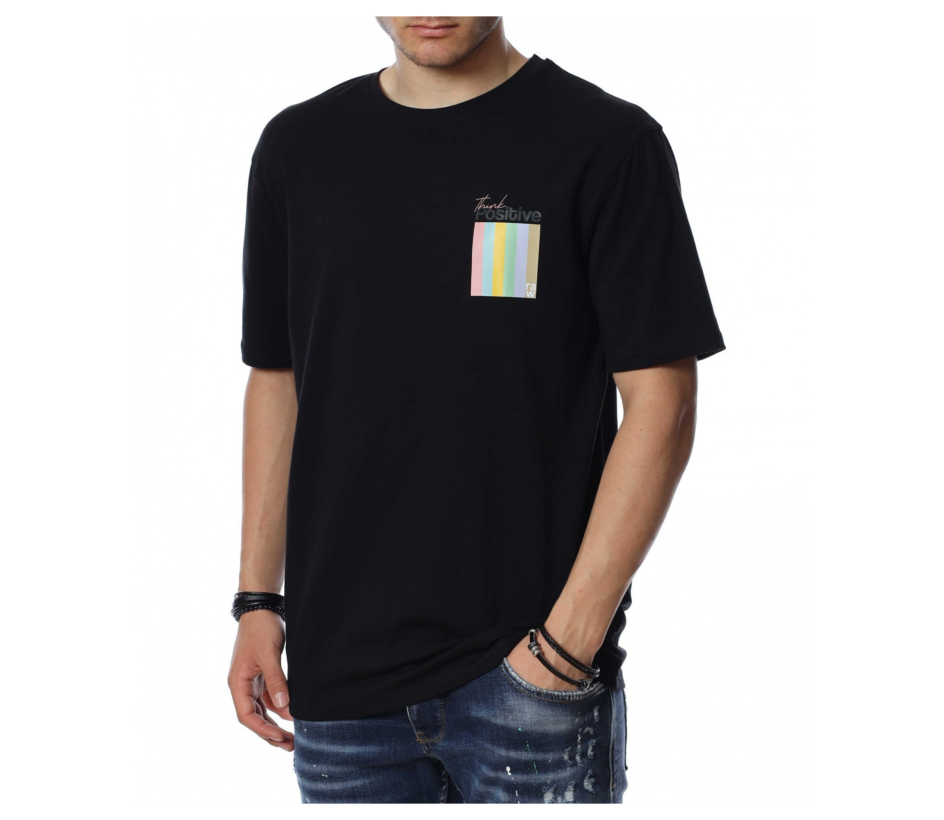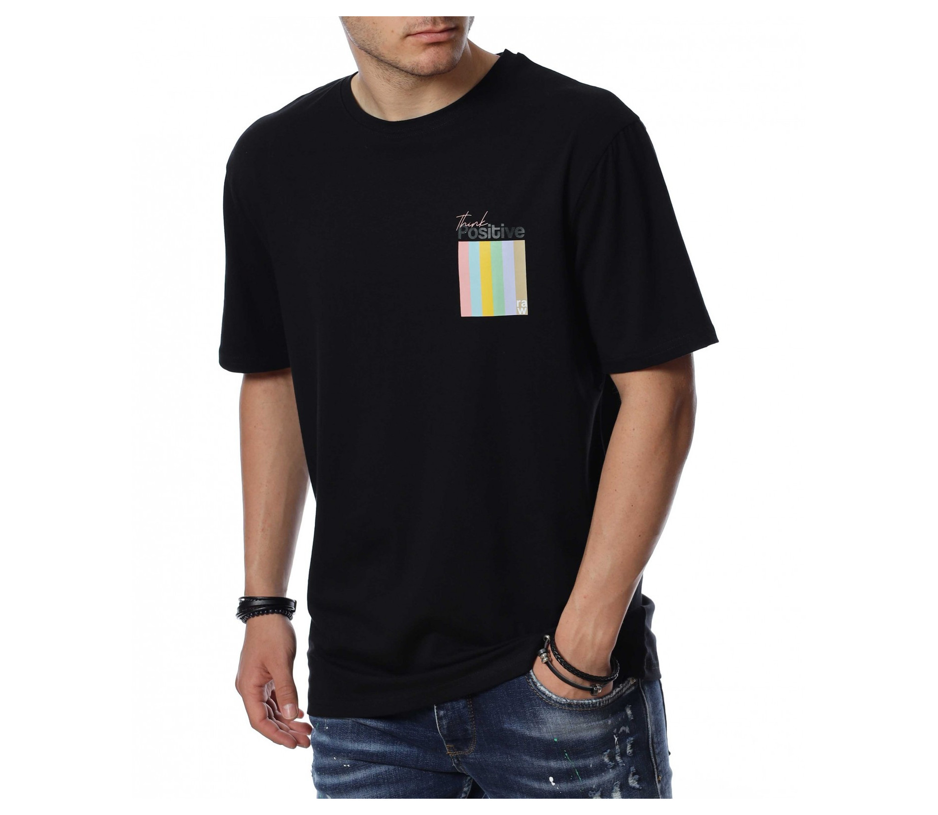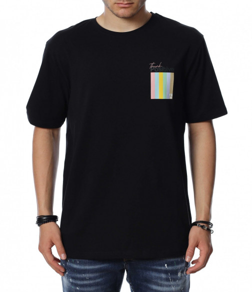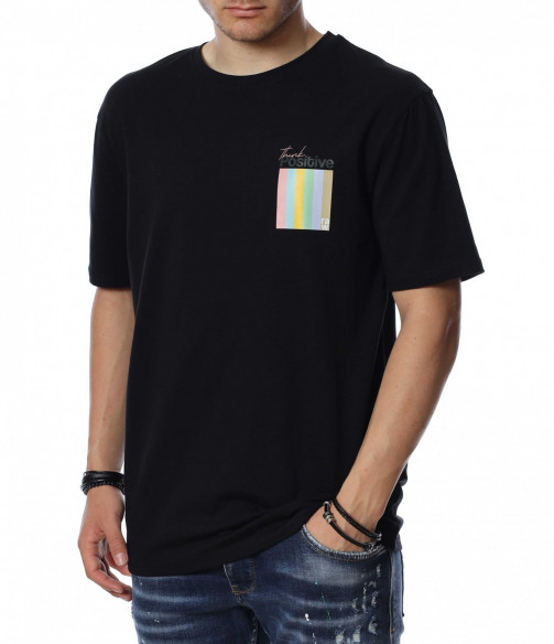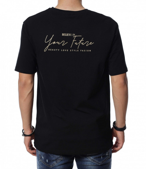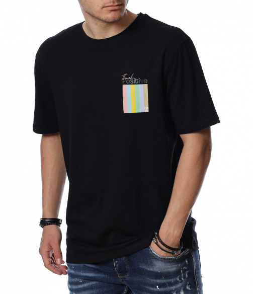 ОПИСАНИЕ НА ПРОДУКТА: Мъжка стилна тениска, която се предлага в черен цвят. Върху предната страна на тениската е поставен семпъл надпис в интересен шрифт и шарен квадрат под него, които раздвижат иначе традиционния модел мъжка тениска. Кройката е свободна, а материята еластична. Задната страна на тишърта е еднотонен, но раздвижен от мотивиращи надписи. Деколтето е с овална форма, която я прави подходяща за всеки мъжки силует. Довери се на изпитаното и лесно създай своя собствен стайлинг, като качеството и модерното излъчване ще те придружават във всяка една ситуация.