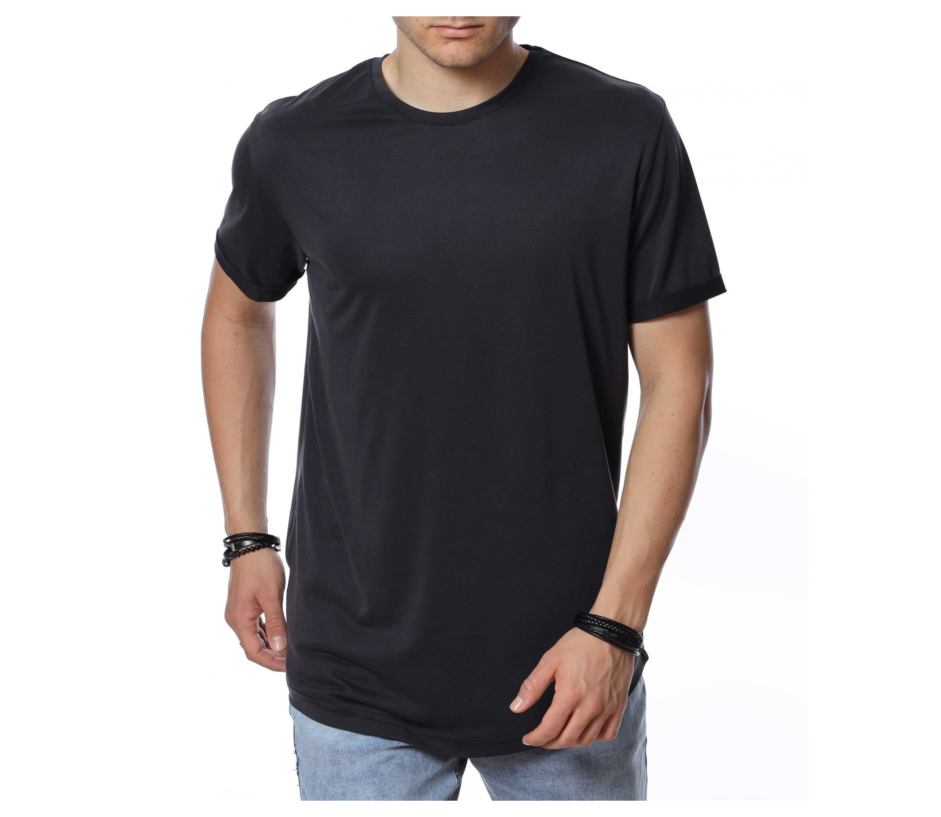 Тениска от тънка материя с издължена кройка 13783 - Тъмно сив