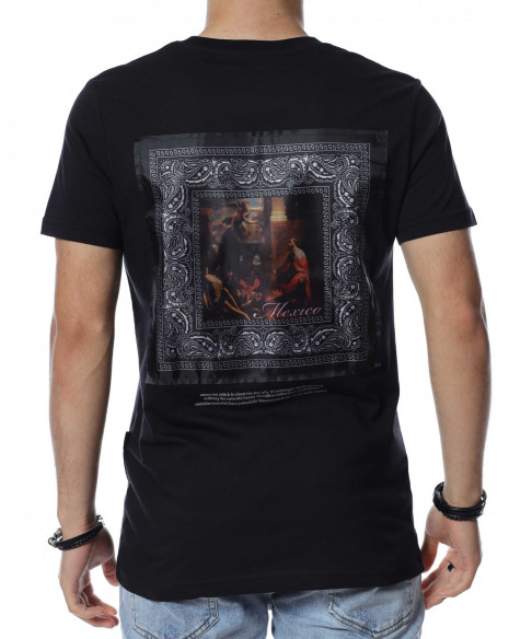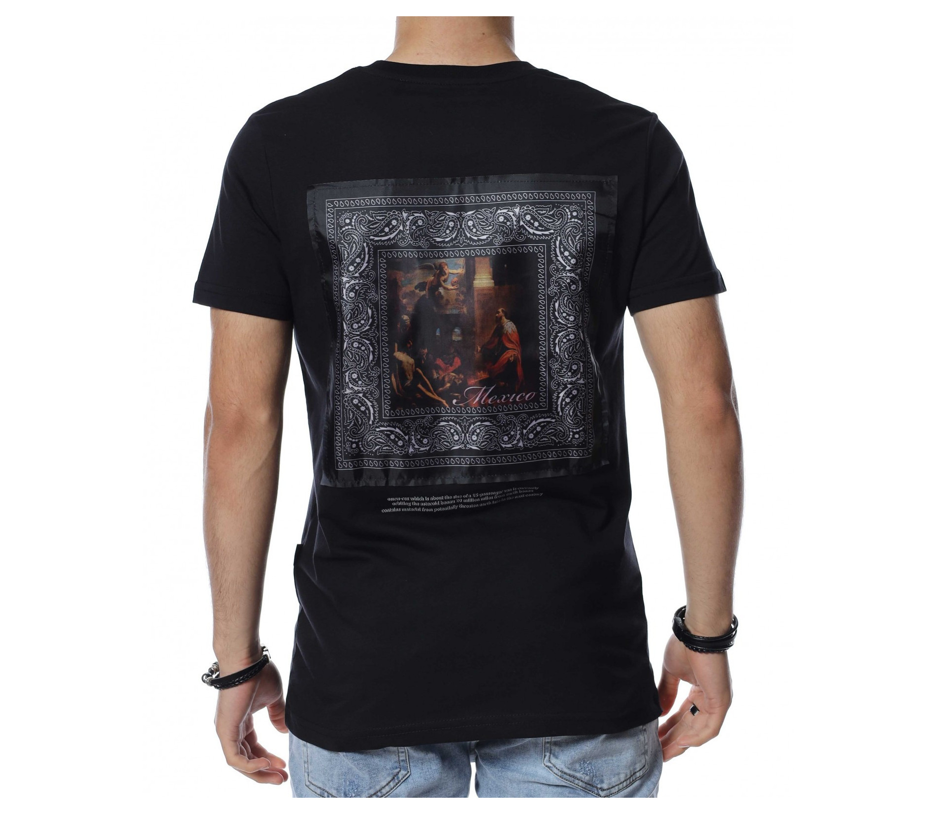 ОПИСАНИЕ НА ПРОДУКТА: Предлагаме на вашето внимание супер стилен модел мъжка тениска с къс ръкав, която умело ще пасне на всеки ваш тоалет. Моделът се предлага в два различни цветови нюанса-черно и бяло, които са така предпочитани от мъжкото съсловие. Иначе еднотонната и традиционна основа е разчупена от надписи в областта на гърдите. Отличителен детайл в цялостния дизайн на фланелката, е пришитата, цветна картина в рамка на гърба на модела. Деколтето е с овална форма, подчертано от семпъл кант. Материята е изградена изцяло от памук, а кройката впечатлява с лека вталеност, следваща силуета. Зареди се с настроение и класна визия за предстоящия топъл сезон. Комбинирай по твой вкус за една индивидуална и финализирана фешън визия.