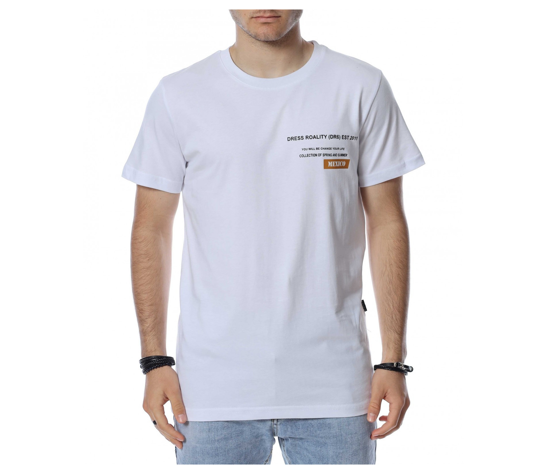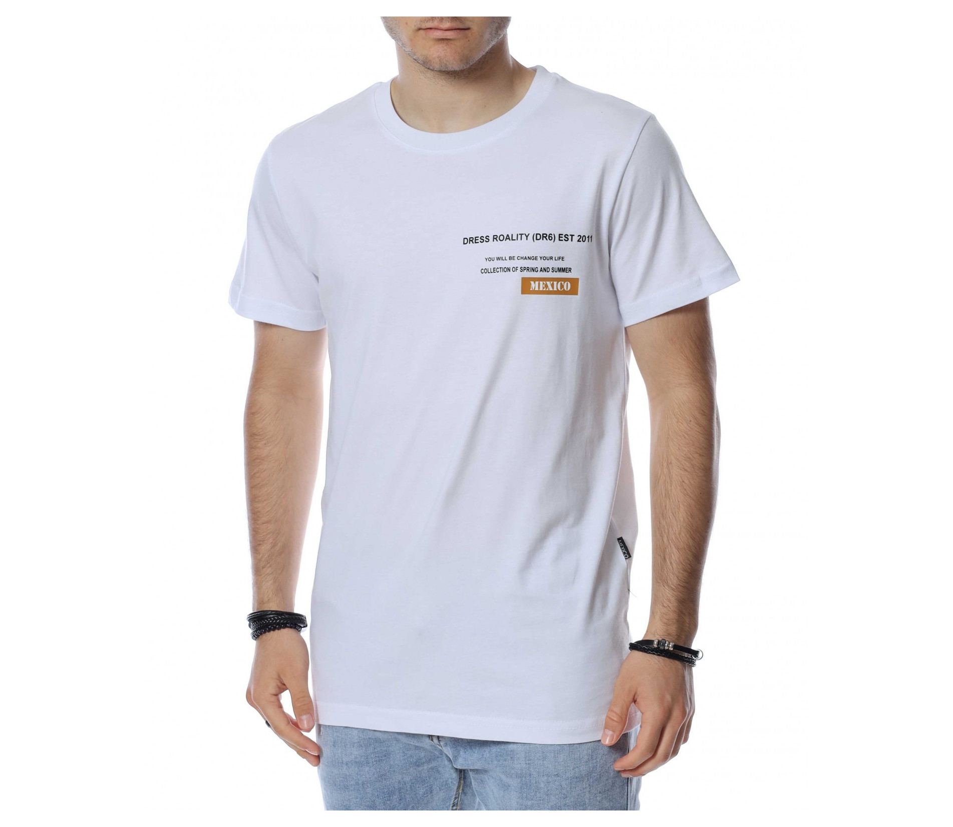 ОПИСАНИЕ НА ПРОДУКТА: Предлагаме на вашето внимание супер стилен модел мъжка тениска с къс ръкав, която умело ще пасне на всеки ваш тоалет. Моделът се предлага в два различни цветови нюанса-черно и бяло, които са така предпочитани от мъжкото съсловие. Иначе еднотонната и традиционна основа е разчупена от надписи в областта на гърдите. Отличителен детайл в цялостния дизайн на фланелката, е пришитата, цветна картина в рамка на гърба на модела. Деколтето е с овална форма, подчертано от семпъл кант. Материята е изградена изцяло от памук, а кройката впечатлява с лека вталеност, следваща силуета. Зареди се с настроение и класна визия за предстоящия топъл сезон. Комбинирай по твой вкус за една индивидуална и финализирана фешън визия.