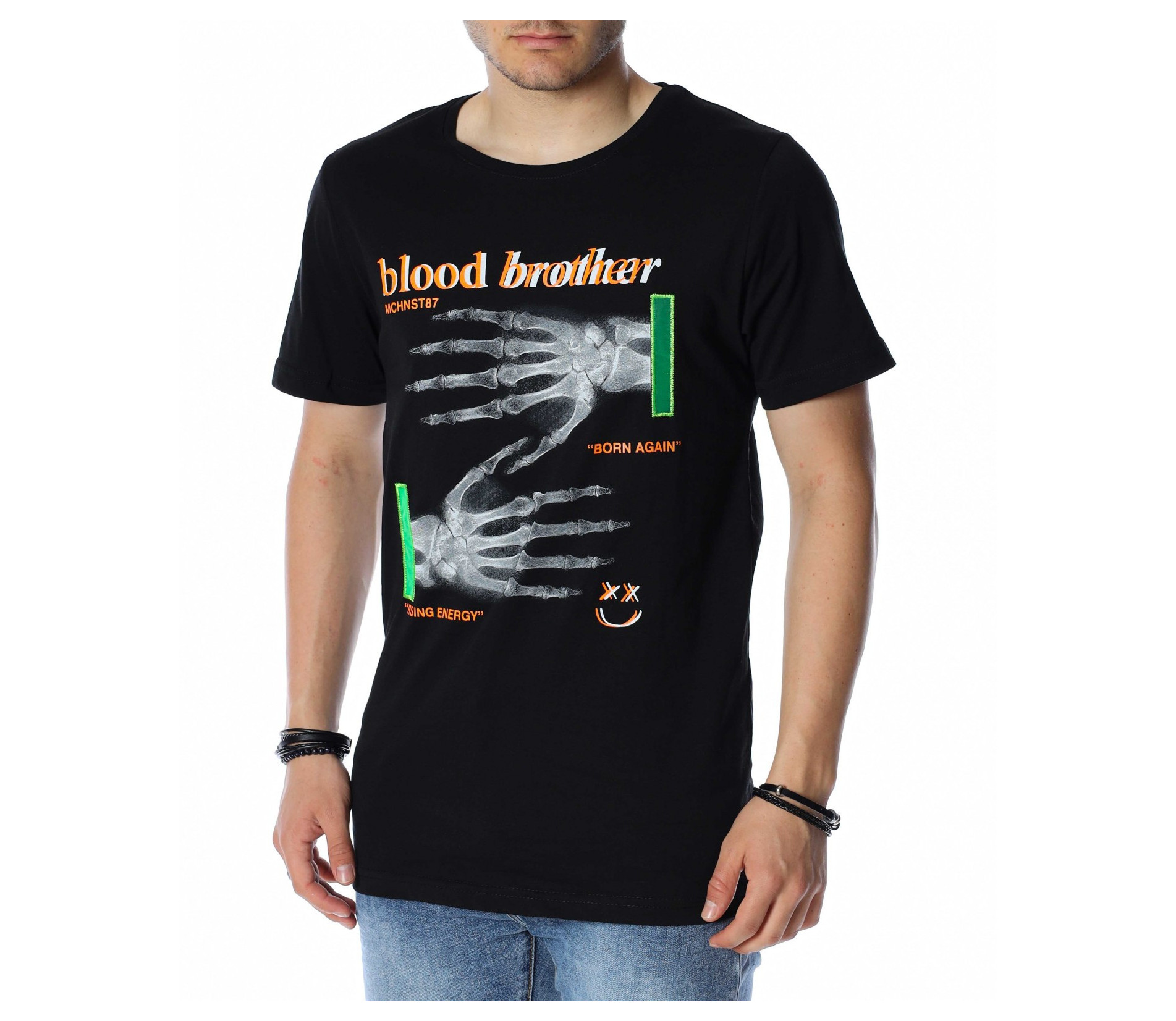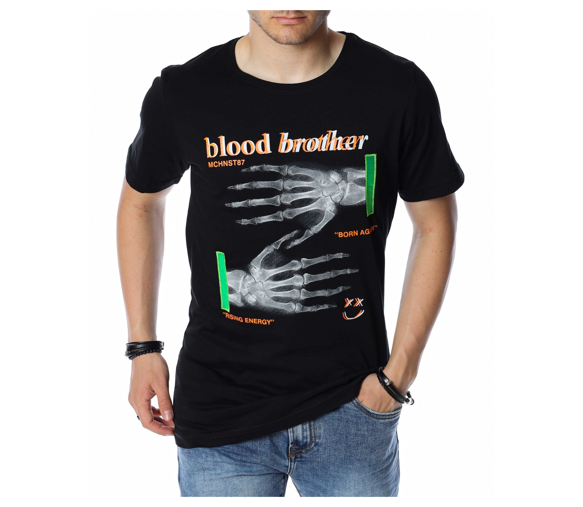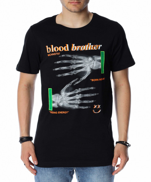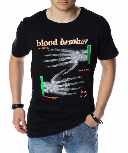 ОПИСАНИЕ НА ПРОДУКТА: Ако сте фен на нестандартното и новаторското, този модел мъжка тениска е точно за Вас. Основата на фланелката е в изчистено черен цвят, върху който е разположена апликация, ясно открояваща се. В предната част е изобразена рентгенова снимка на ръце, като са включен и зелени нашивки за по силен акцент. Освен нестандартна и ефектна визия, тениската е с леко вталена кройка, стандартна дължина и прибрано овално деколте, елементи които в комбинация създават един от ТОП моделите за лятото. Комбинирайте тениската с любимите къси или дълги дънки, чифт кецове и се заредете с настроение за приятни изживявания.