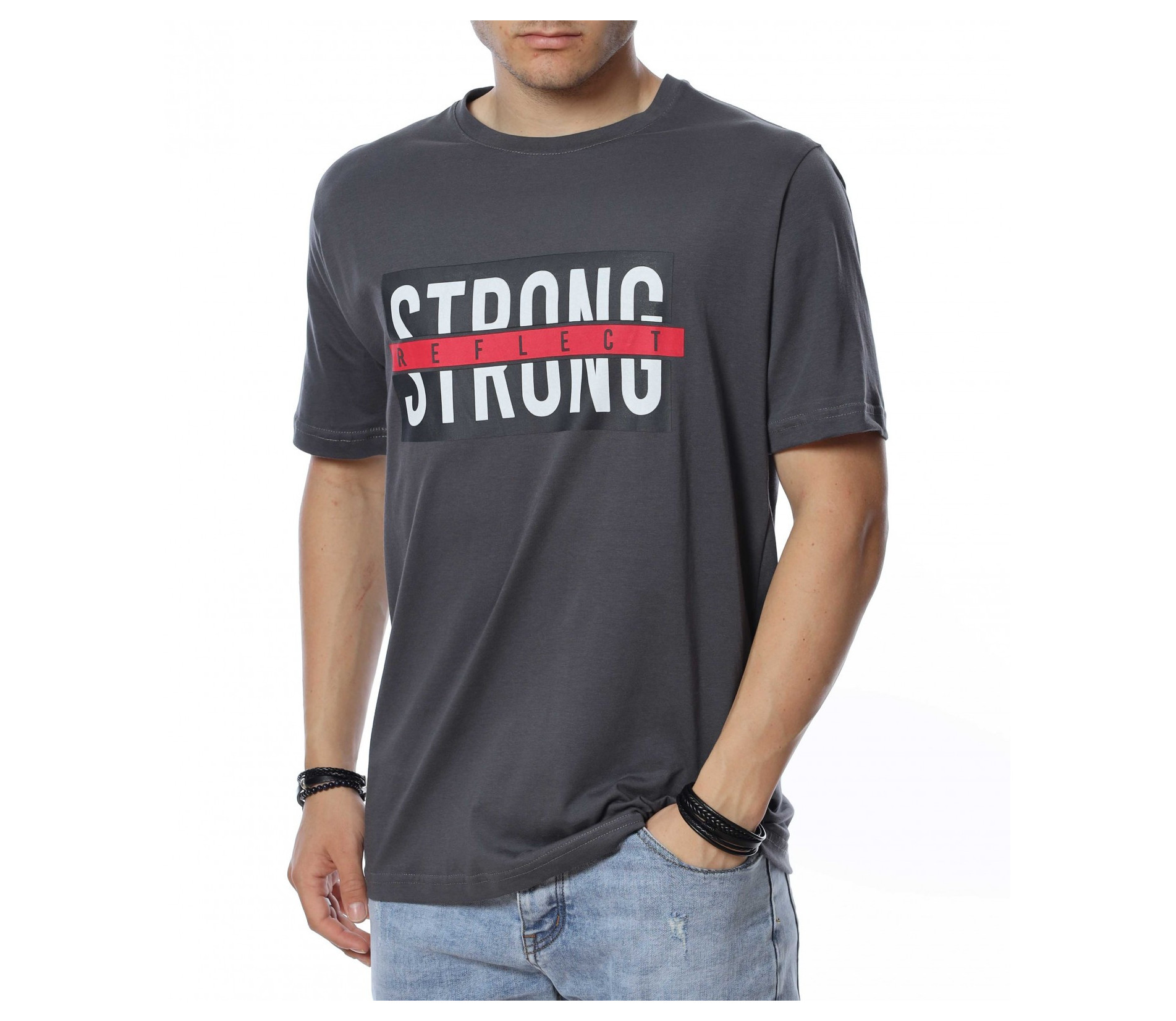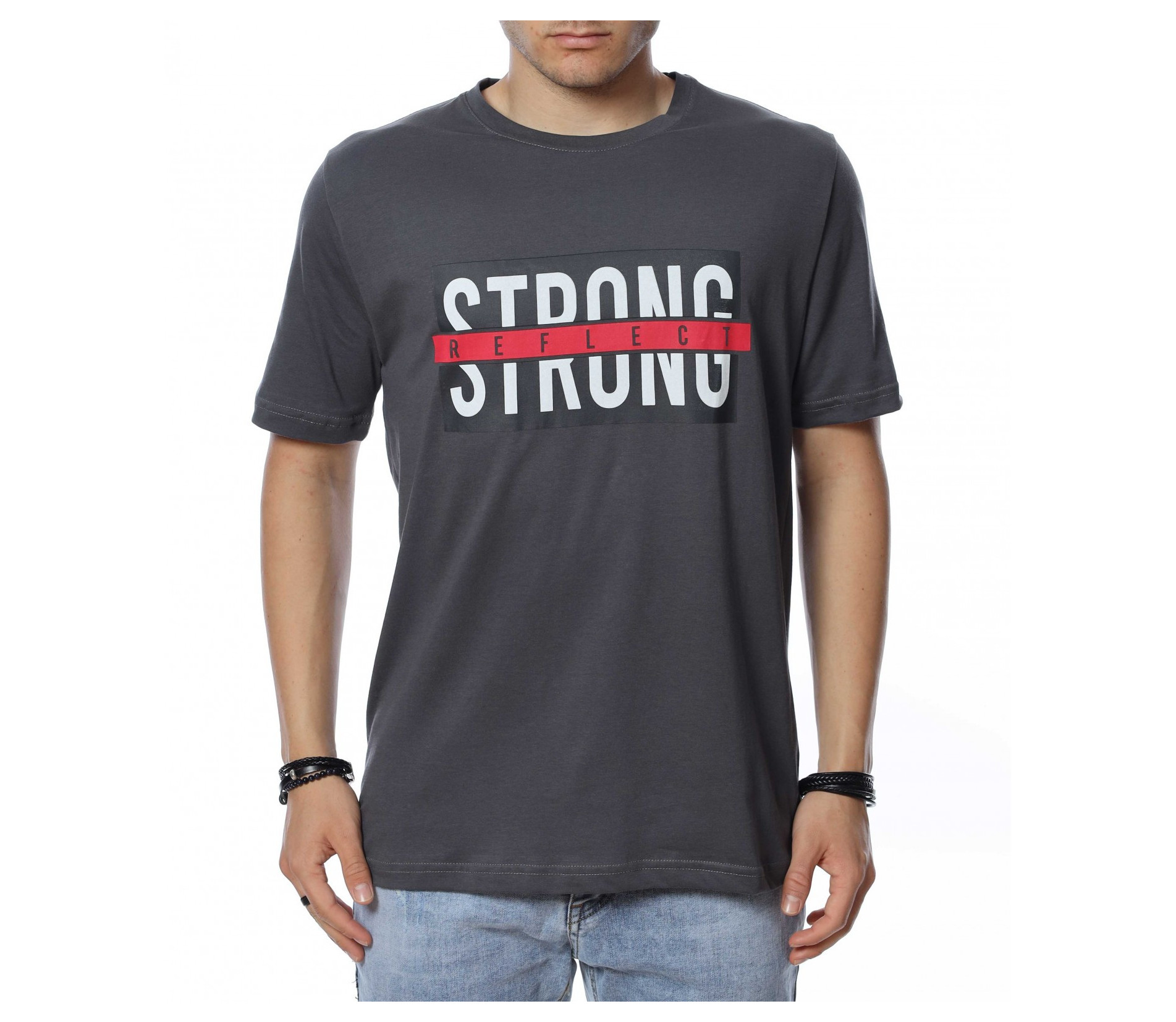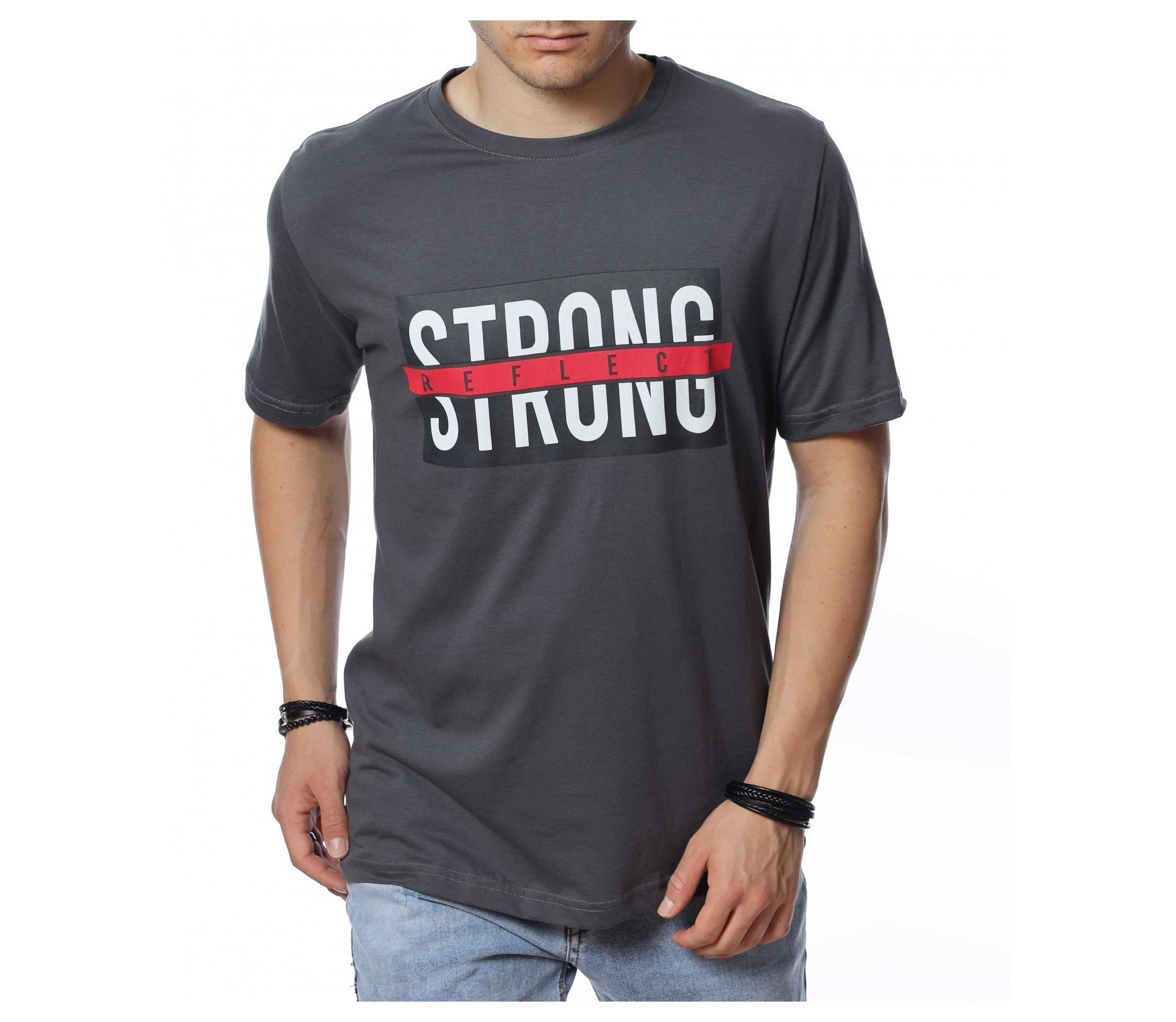 Тениска с надпис STRONG 13819 - Сив