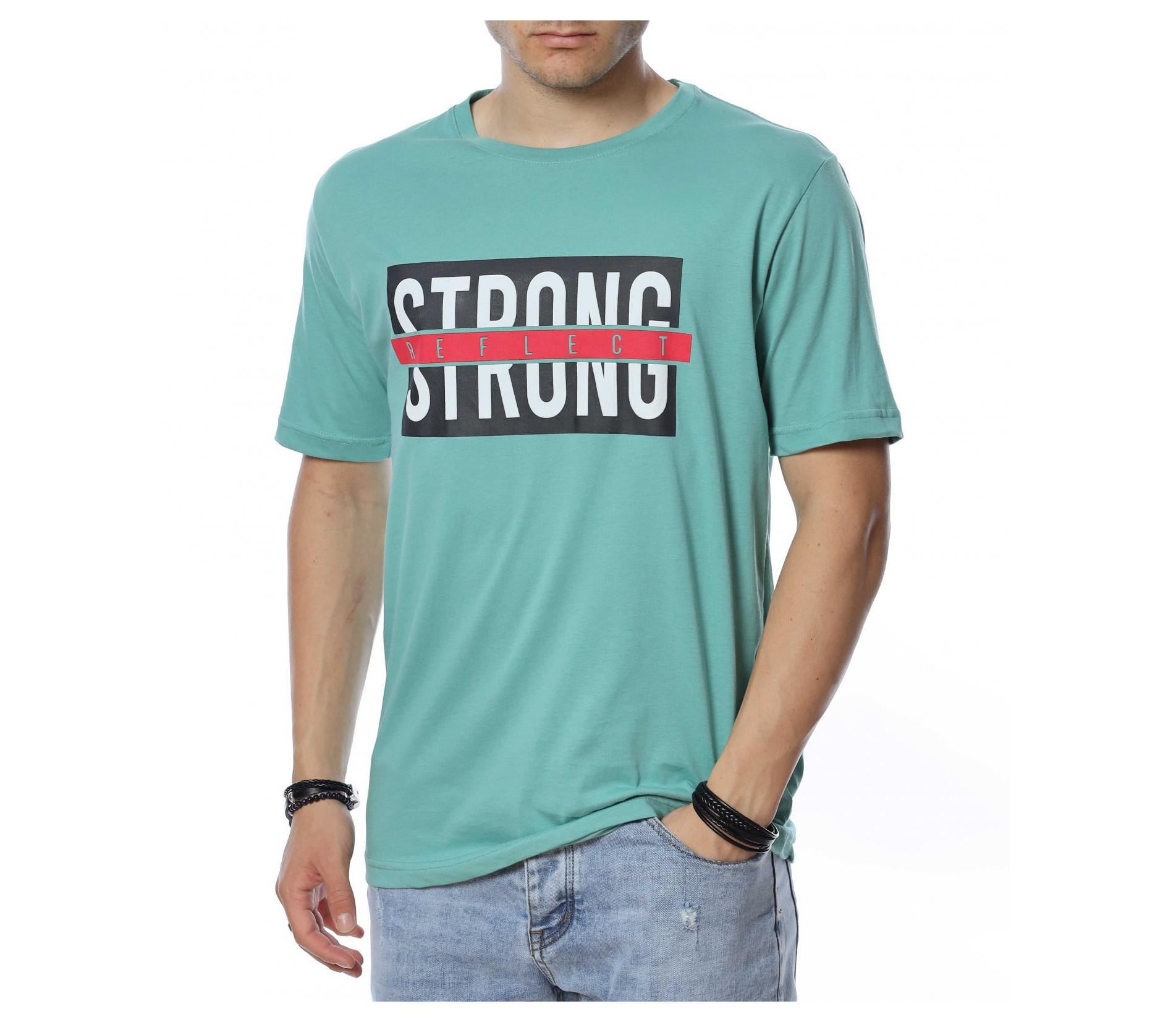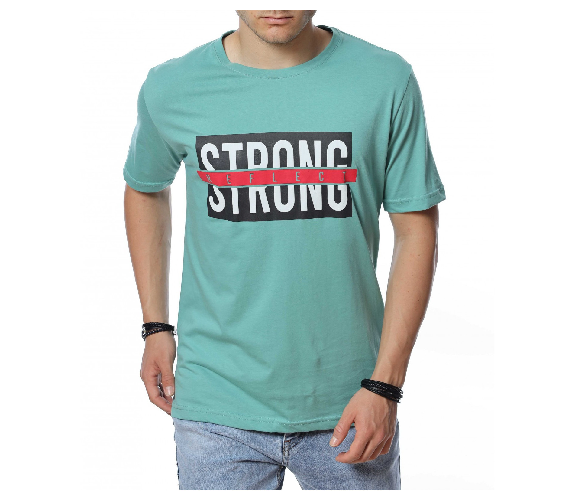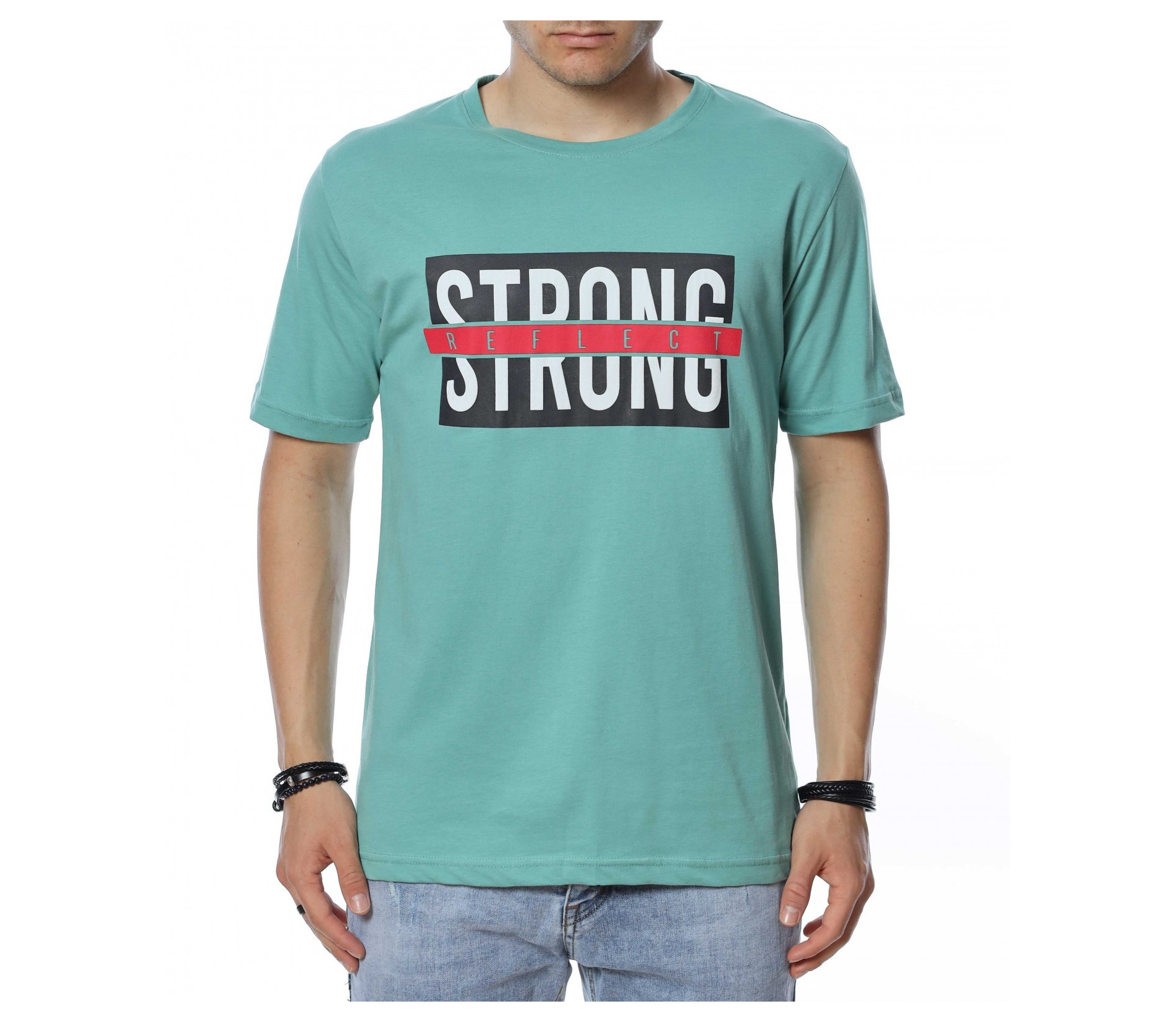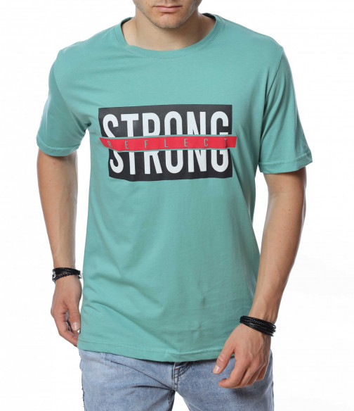 ОПИСАНИЕ НА ПРОДУКТА: За всички фенове на класическите модели тениски с къс ръкав представяме този класен модел в актуални и силно предпочитани от всички мъже черен, сив и зелен цвят. Тези цветови варианти лесно се комбинира с всякакви дънки и панталони, както в къс, така и в дълъг вариант. Иначе едноцветния принт е много умело декориран с голяма щампа с надпис STRONG reflect, чиито леко лъскав горен слой пресъздава умел отблясък и оригинално присъствие. Кройката на фланелката е свободна и осигурява комфорта, на който знаем, че държите през най-горещите летни дни. Деколтето е в овална форма, подчертано от малък кант в същия цвят като водещия десен. Не губи време, а смело избери класическа тениска с къс ръкав в комбинация с интересни къси панталони и удобни обувки.