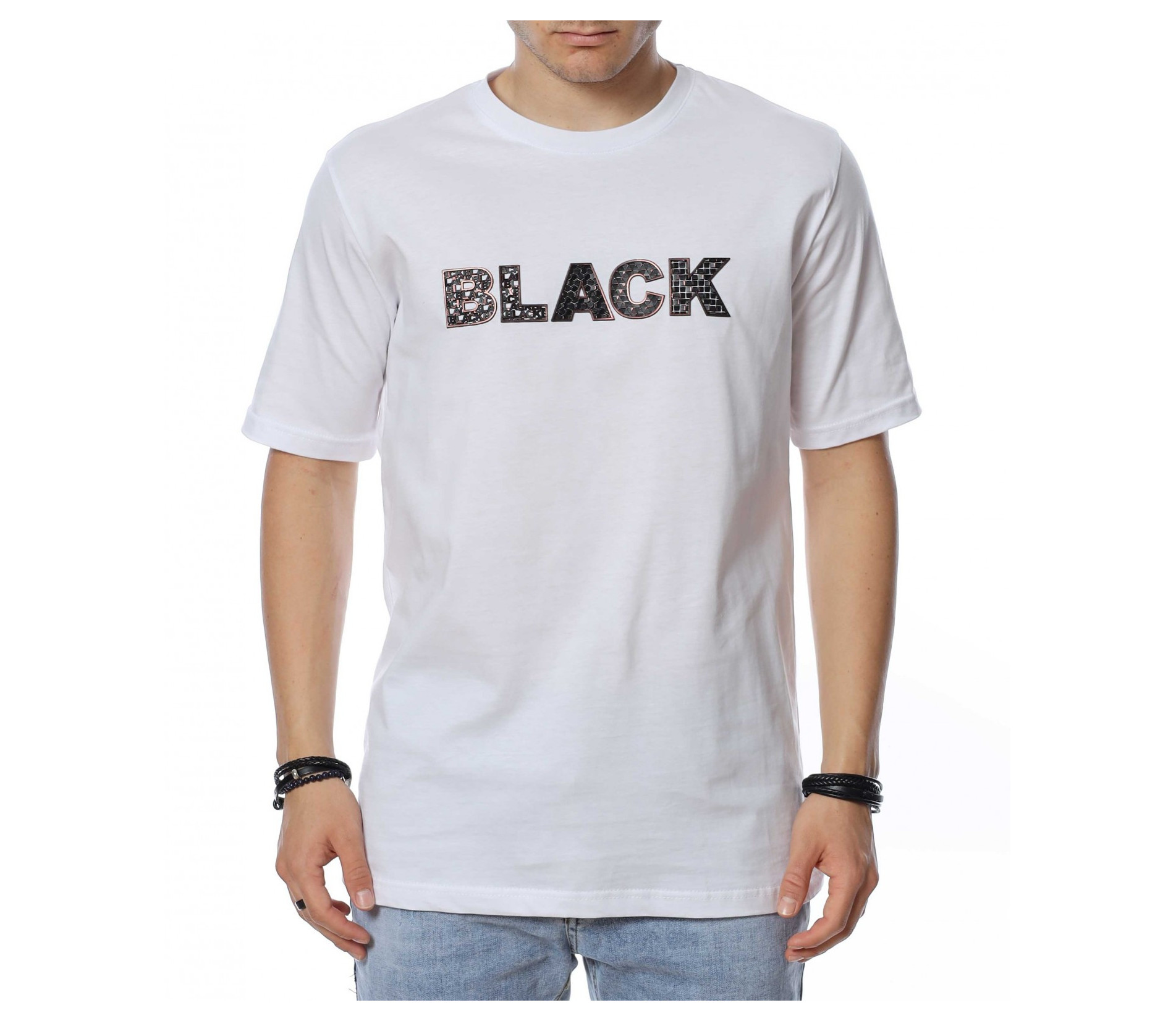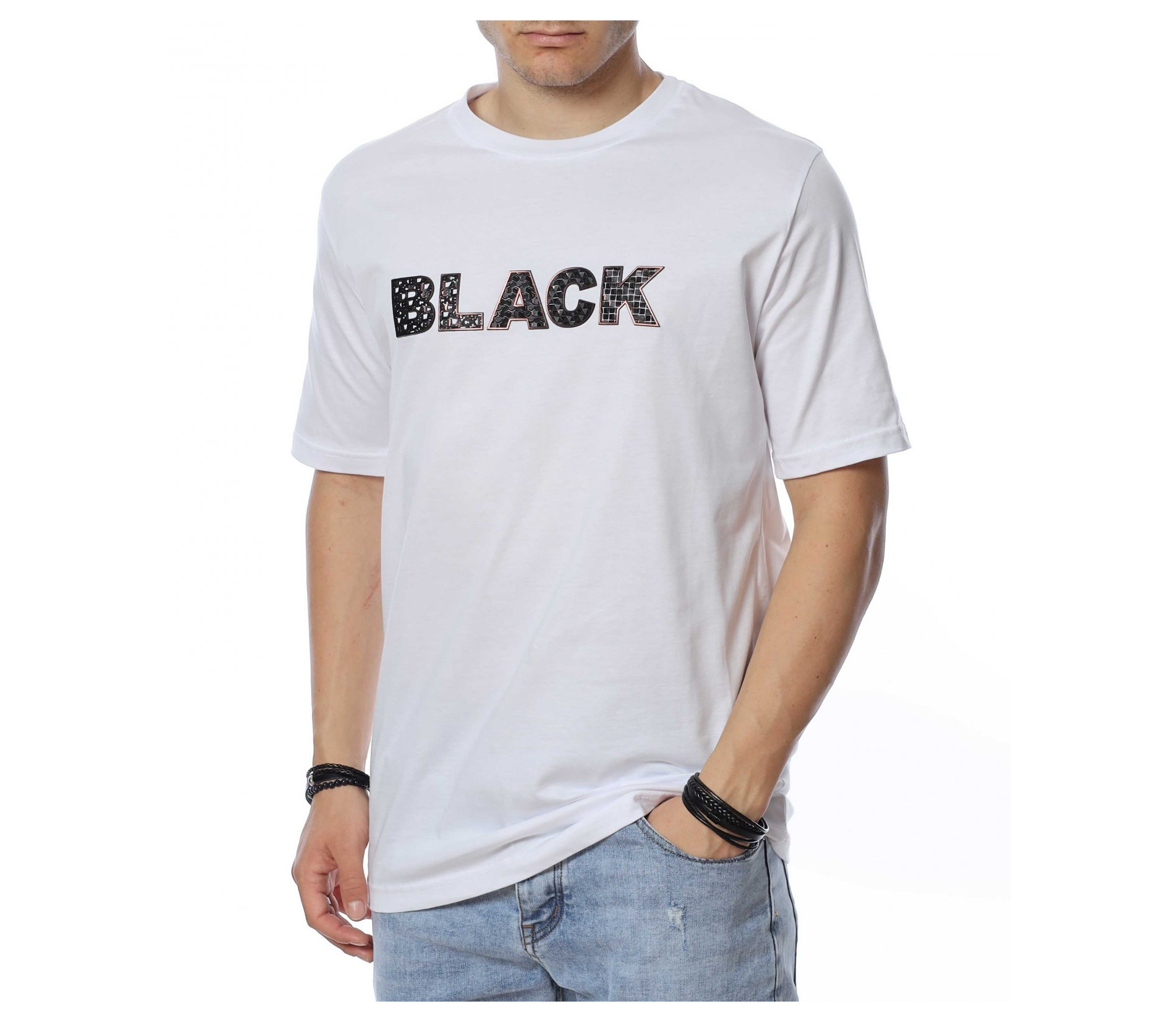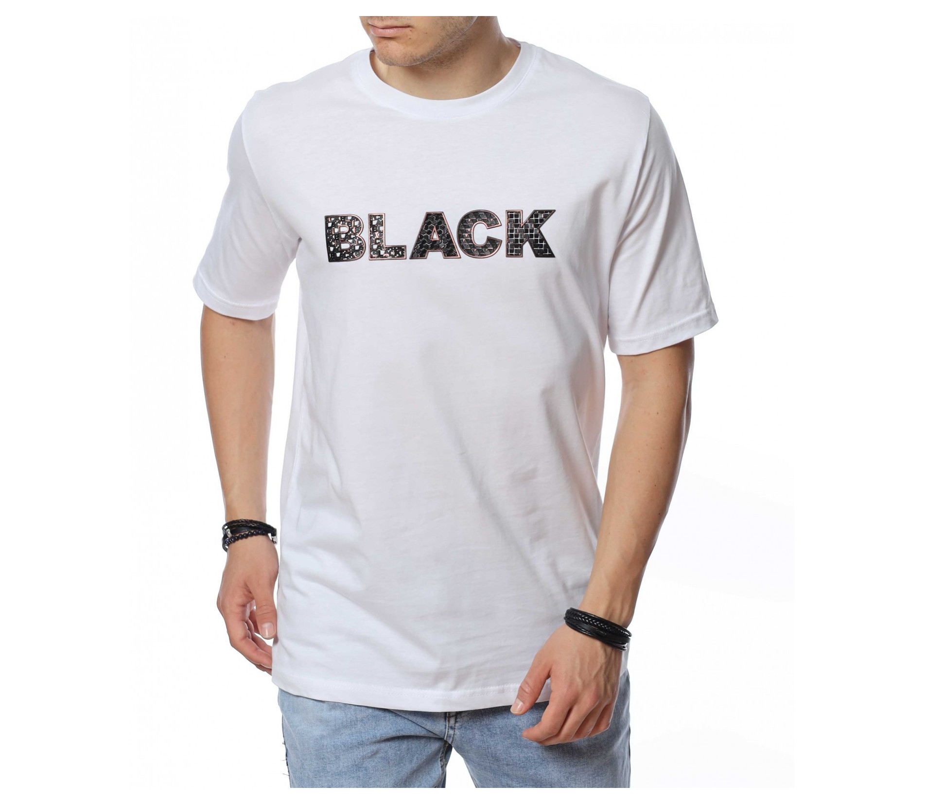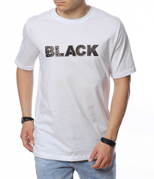 ОПИСАНИЕ НА ПРОДУКТА: Изчистена актуална тениска с къс ръкав в бял цвят. Иначе едноцветния принт е много умело декориран с голям надпис BLACK, който стои релефно върху памучната основа. Кройката на фланелката е вталена, но осигурява комфорта, на който знаем, че държите през най-горещите летни дни, благодарение на памучния си състав. Деколтето е в овална форма, подчертано от малък кант в същия цвят като водещия десен. Не се колебай а лесно се сдобий със супер модерен модел мъжка тениска и привлечи любопитни погледи към себе си.