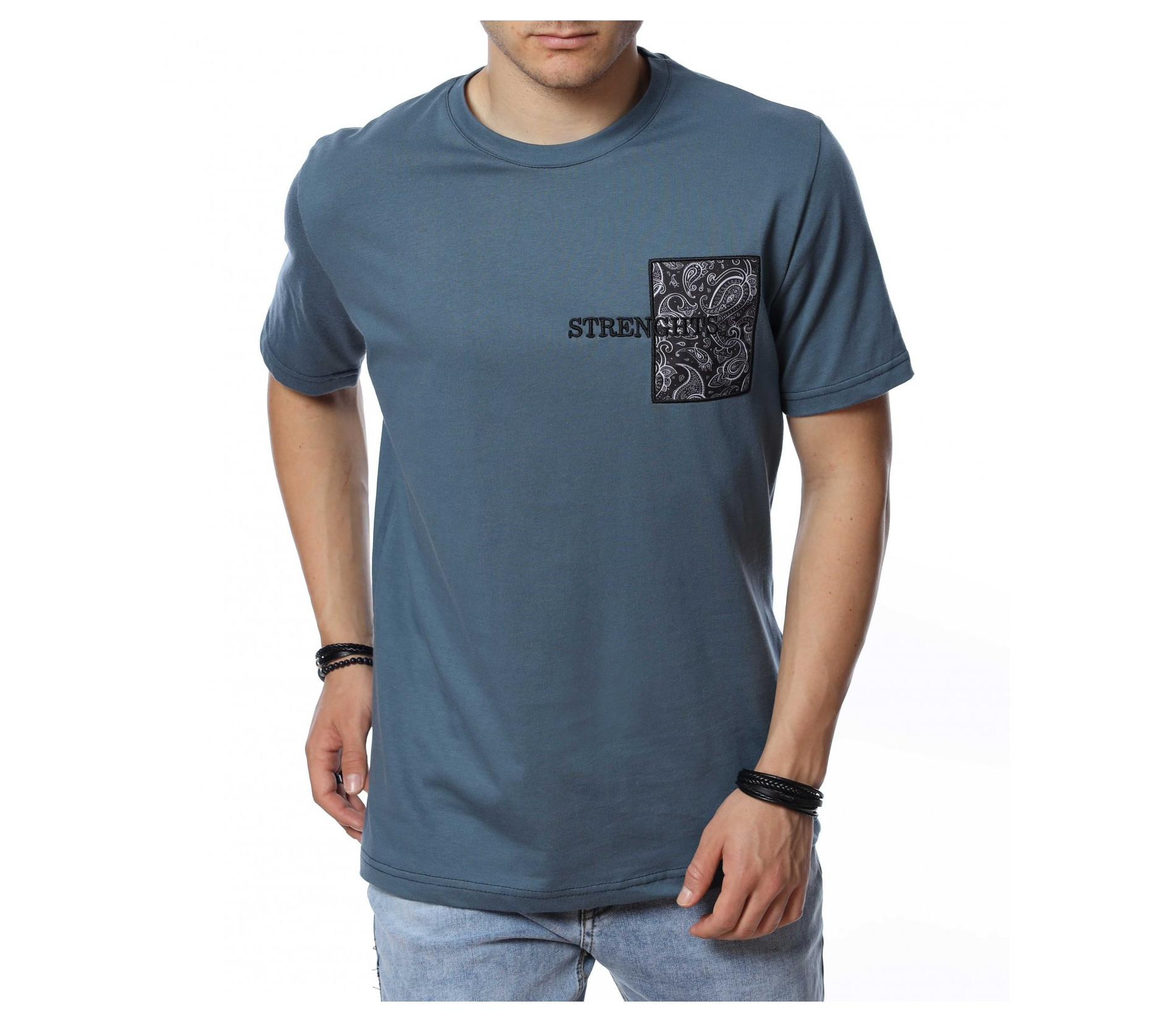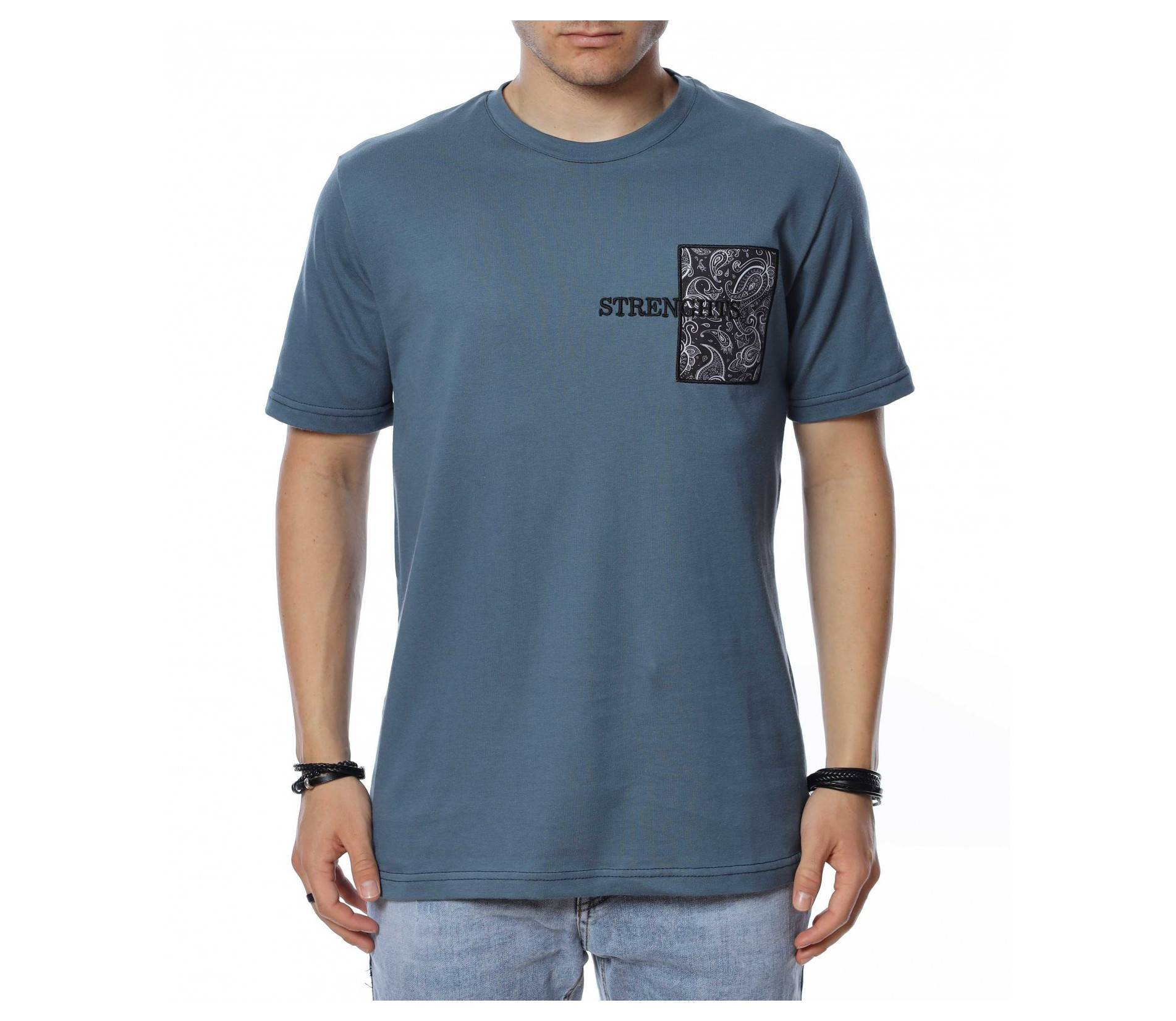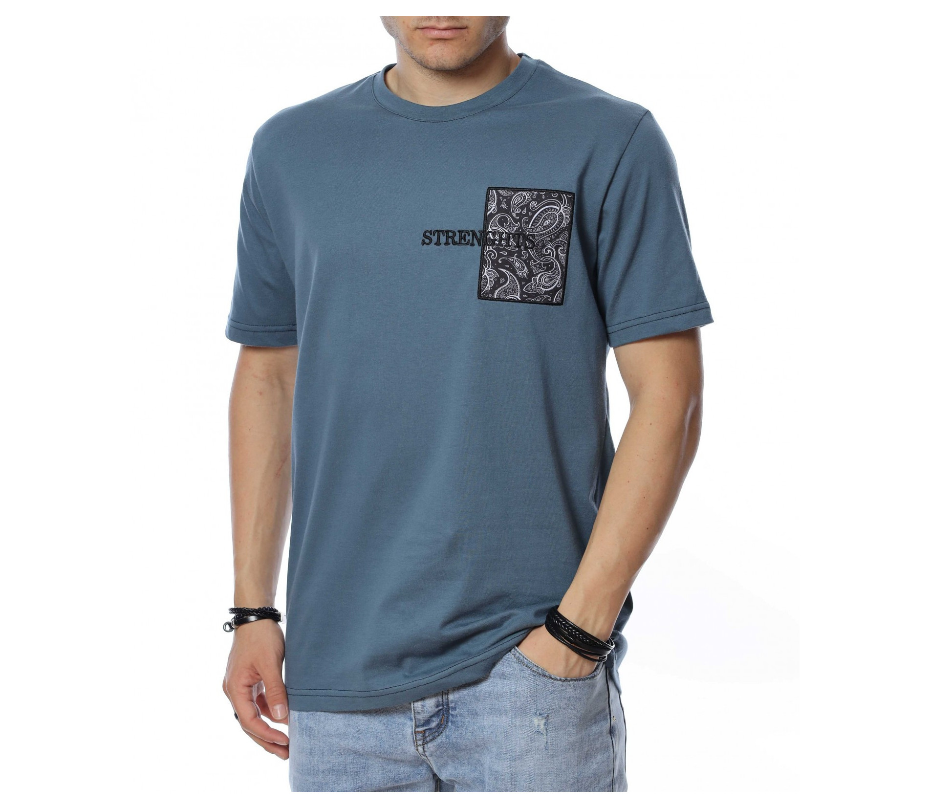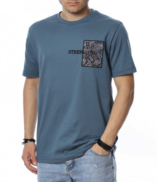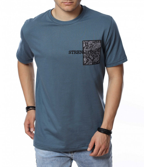 ОПИСАНИЕ НА ПРОДУКТА: Ако си привърженик на изчистените модели фланелки, то този вариант е точно за теб. Цялата основа на модела е обагрена в класически, син цвят, който е харесван от мъжете, поради лесното съчетаване с всички модели дънки и панталони. Кройката е вталена, като това дава максимално приложение във всяка ситуация, в която искате да изглеждате добре. Съвсем семплия дизайн на модела е декориран с щампа в предната част на тишърта, която представлява релефен надписи върху флорална бродерия. Деколтето е овално, завършващо изцяло традиционната визия на тениската. Финализирай изцяло летния си облик с чифт удобни кецове и дънки в подходяща кройка за един изчистен, семпъл и много комфортен стайлинг, подходящ както за ежедневието, така и за работа.