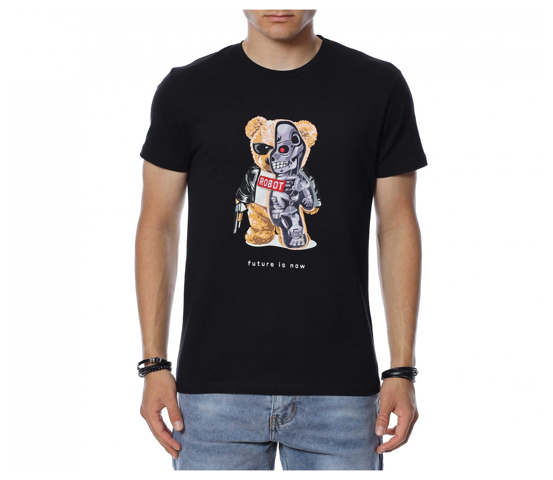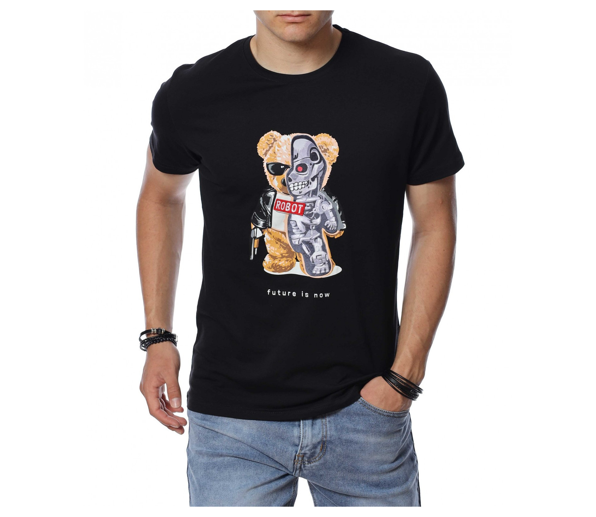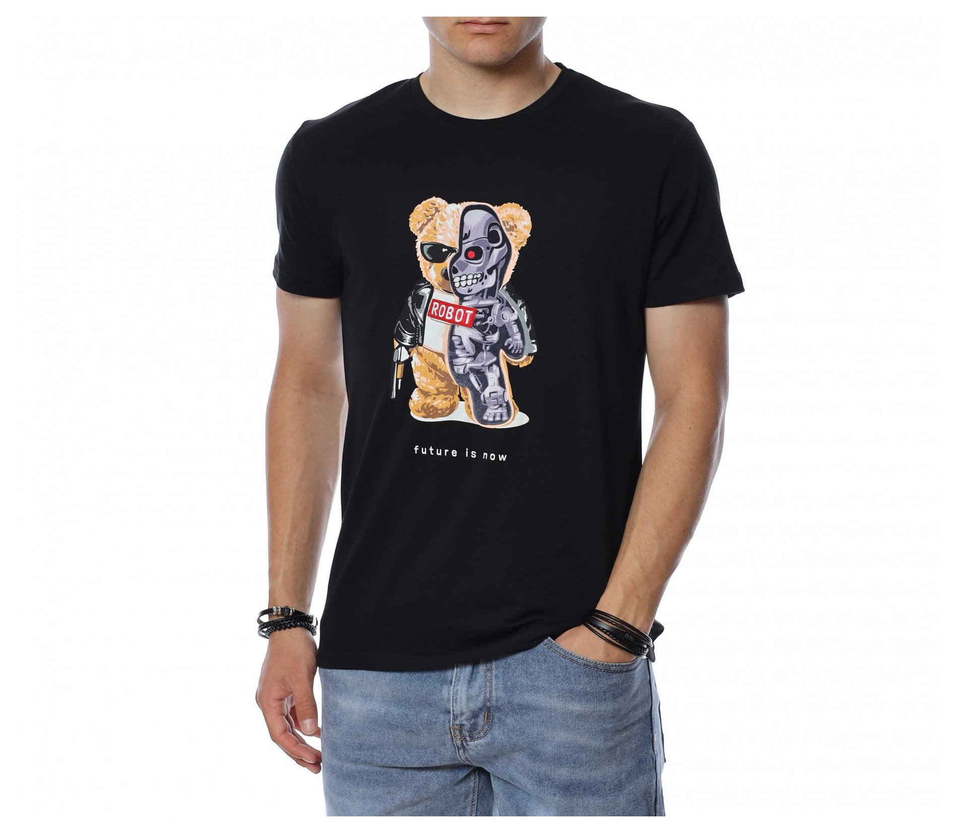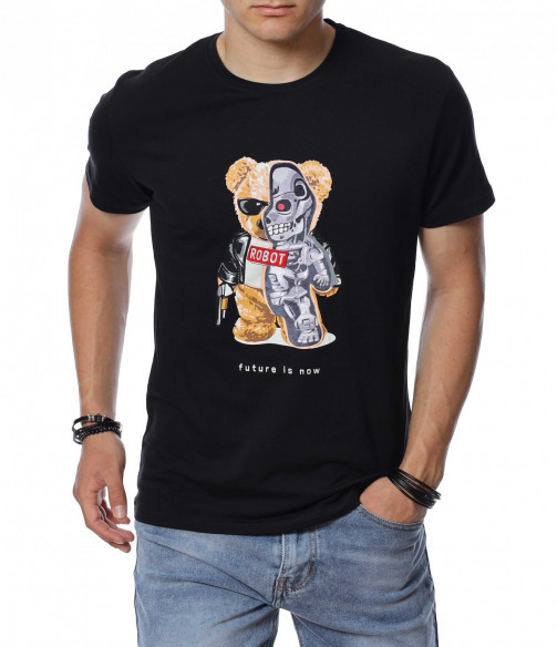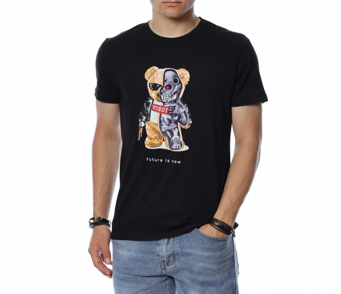 ОПИСАНИЕ НА ПРОДУКТА: Мъжка забавна тениска с къс ръкав. Предлагаме на вашето внимание уникален модел мъжка тениска със закачлива анимационна апликация. Върху цялата лицева страна е разположена щампа на робот мече. Фланелката е налична в два атрактивни цвята – черен и зелен. Кройката е вталена и леко еластична. Напълно подходяща е за всички, които обичат да експериментират с външния си вид - различна, ексцентрична, внасяща усмивки и провокативно излъчване. Деколтето е в така удобната овална форма, придружено от лек накъсан ефект. Задната страна на тениската е в напълно изчистен еднотонен цвят. Заложи този сезон на цветните предложения и ефектните щампи за една разнообразна, слънчева визия.