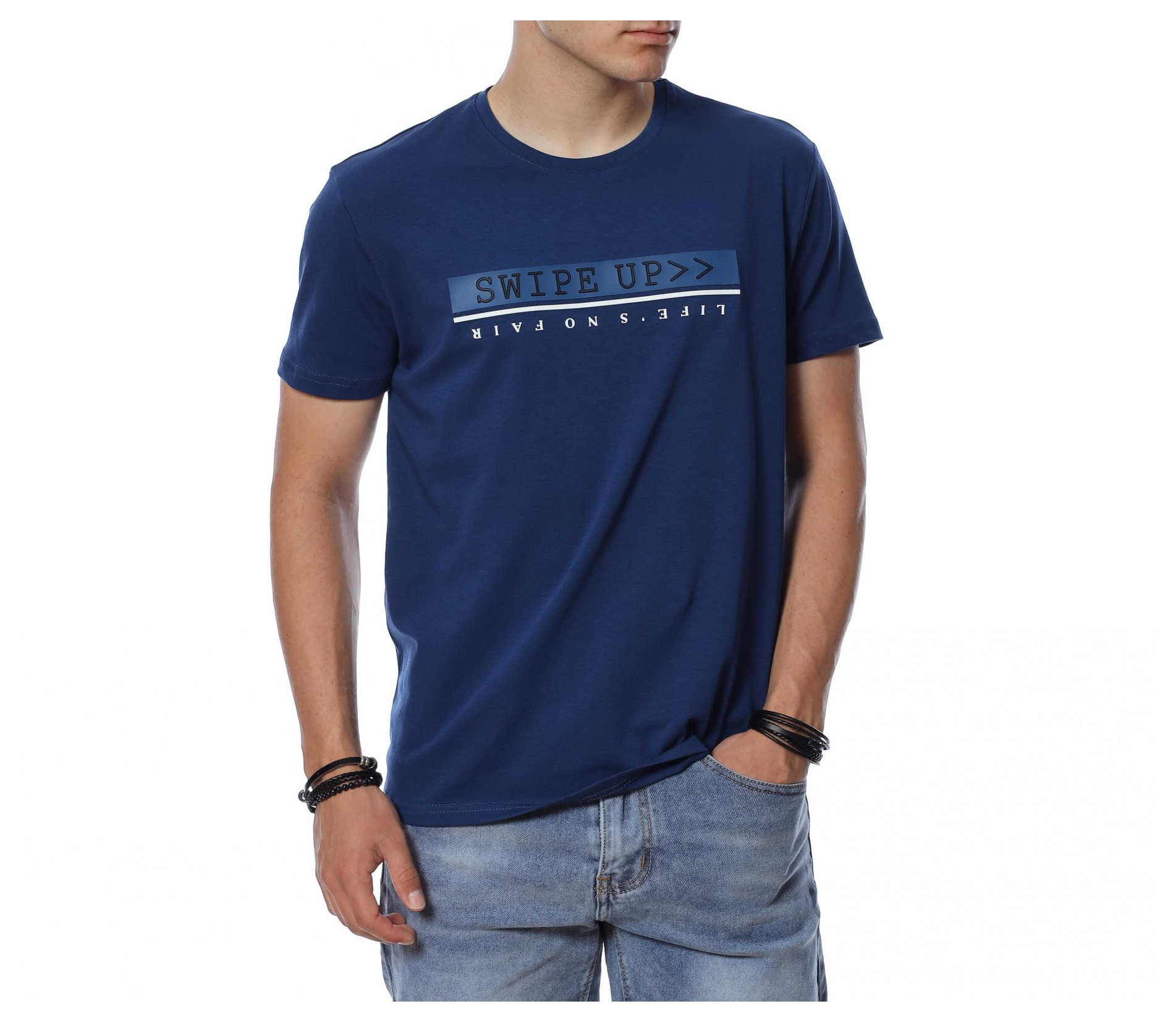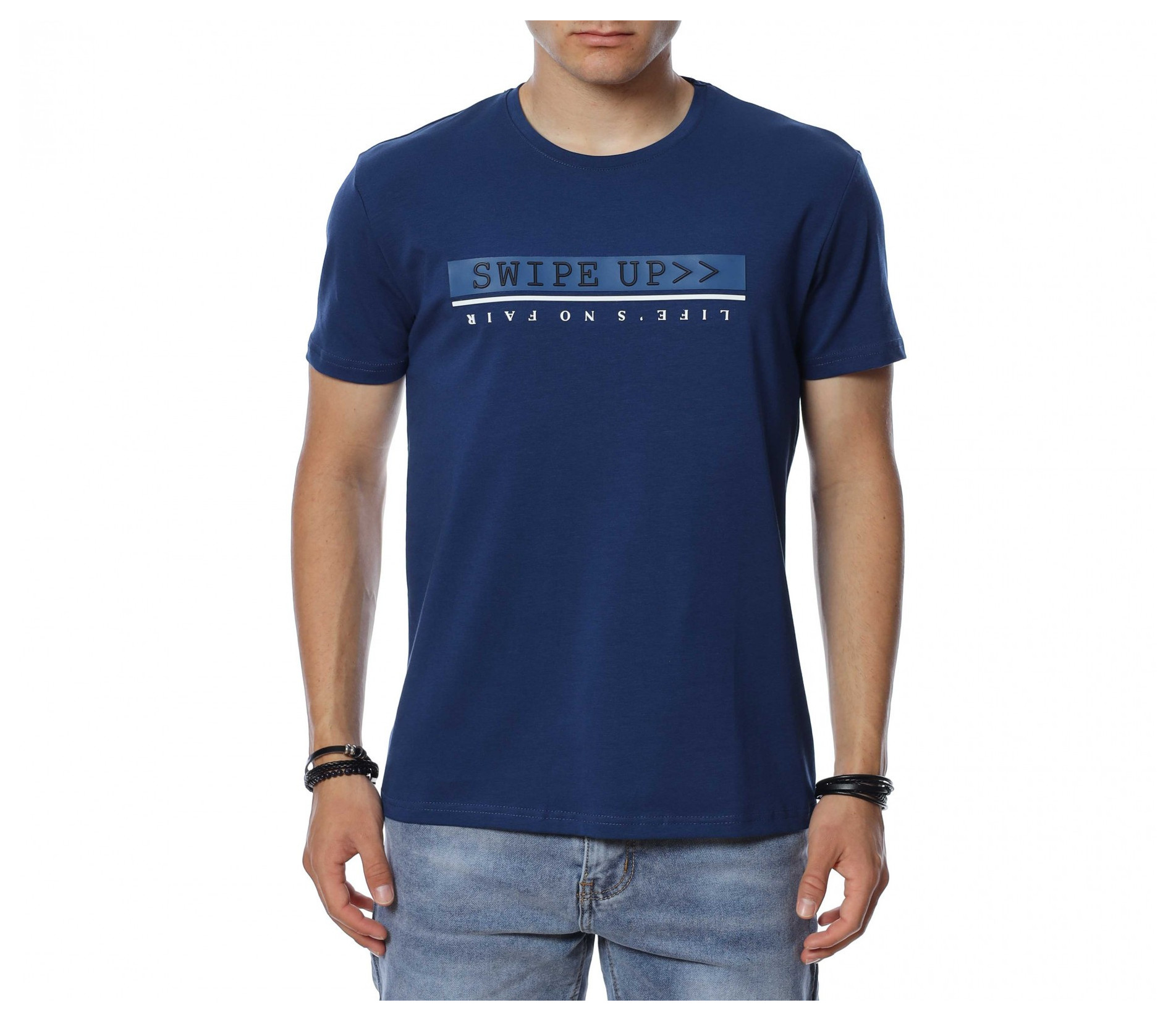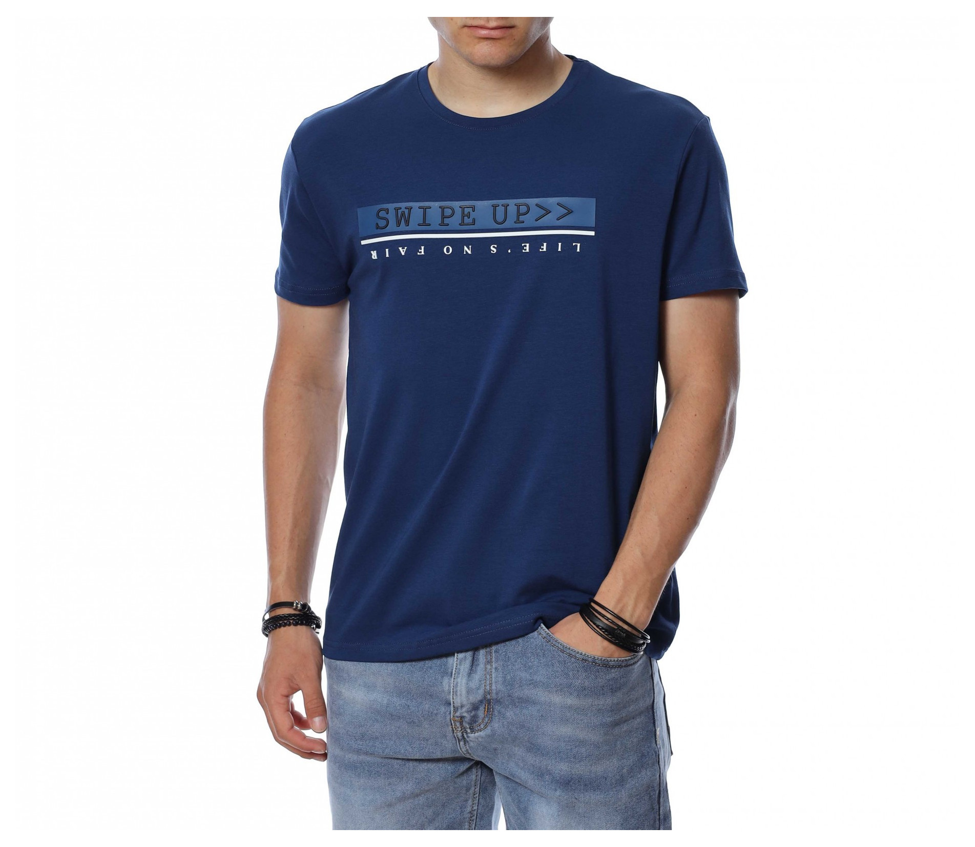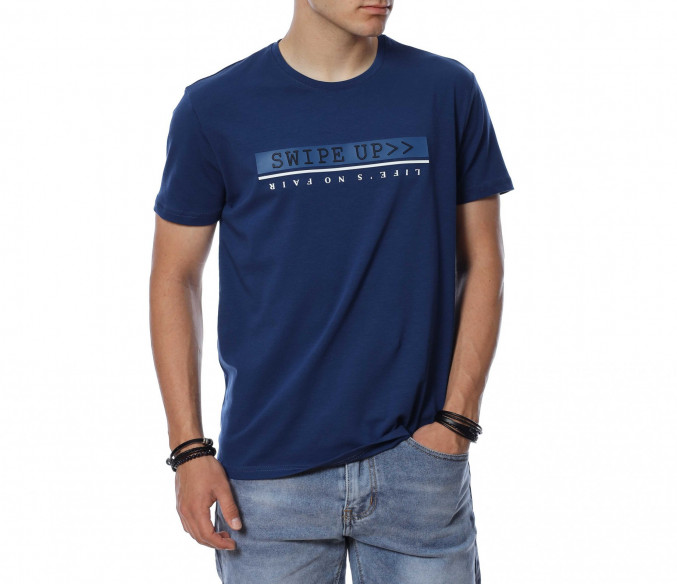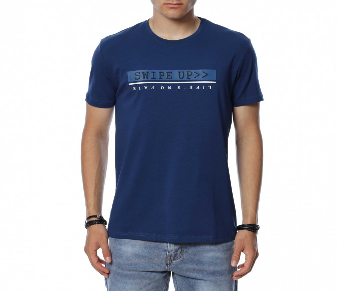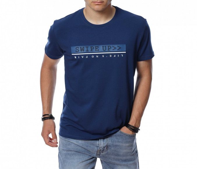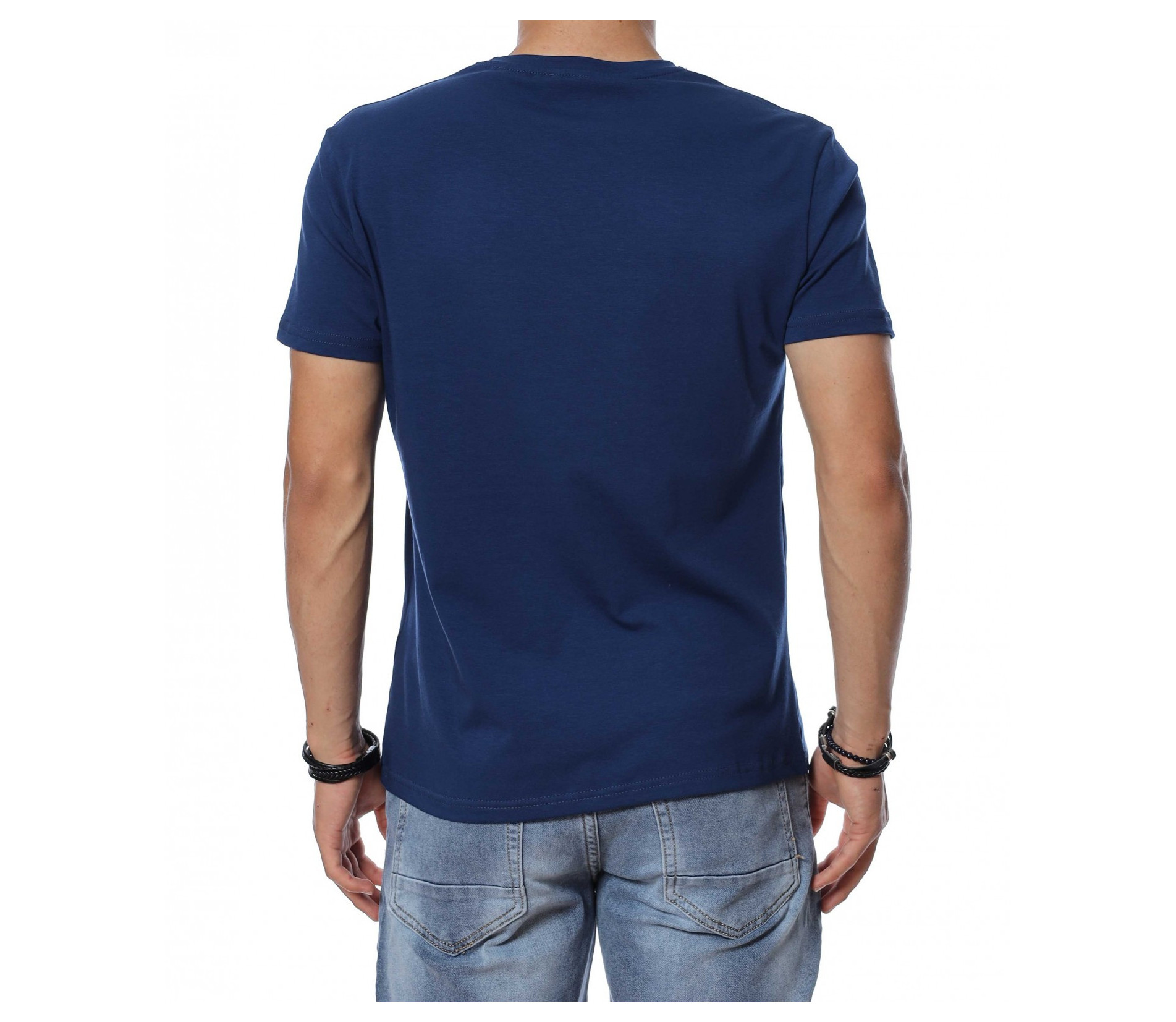 ОПИСАНИЕ НА ПРОДУКТА: Мъжка синя тениска с къс ръкав с релефна щампа. Декорацията е разположена в областта на гърдите, като единствен акцент във визията на модела. Атрактивна, но същевременно съдържаща много стил и елегантност, тази тениска е символ на ежедневния сет, смело подкрепена от изчистен гръб. Тениската е с леко вталена и еластична кройка, перфектно пасваща на всяка мъжка фигура. Деколтето е с овална форма, стилно прибрано около врата. Тъмния и нюанс идеално се комбинира с дълги или къси панталони, удобни кецове и аксесоар по избор. Изгради своя собствен имидж, съгласуван с последните модни тенденции за сезона.