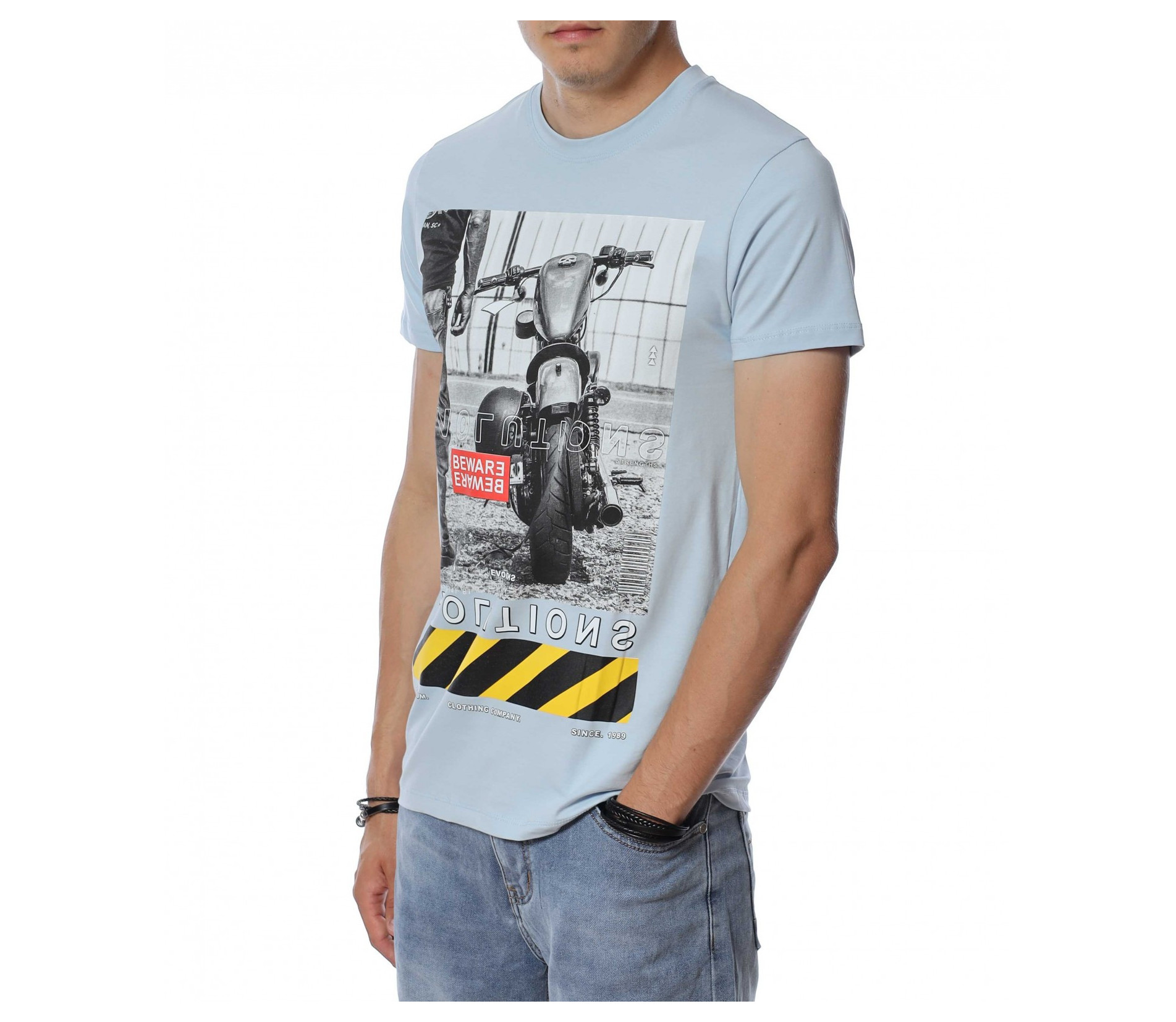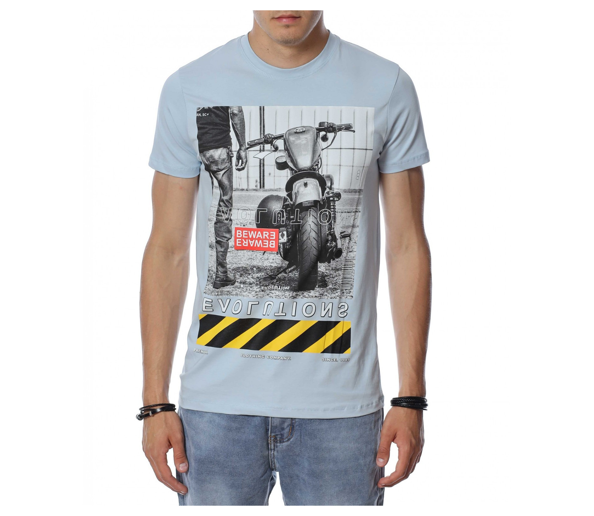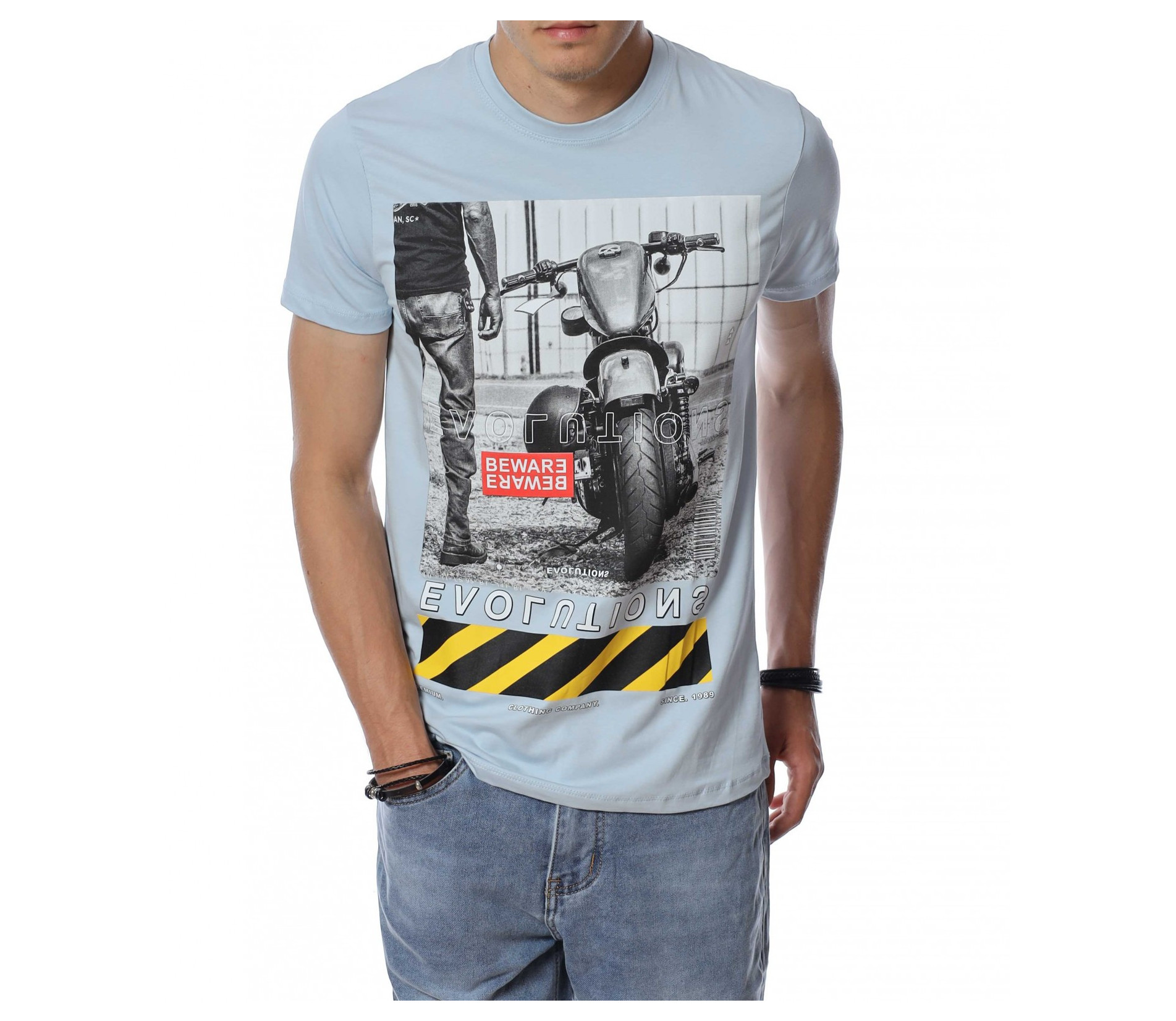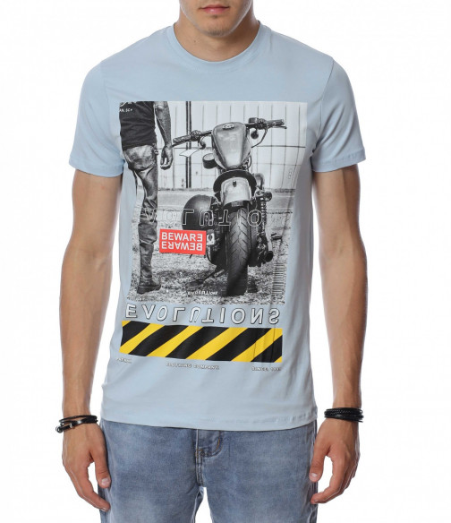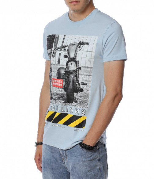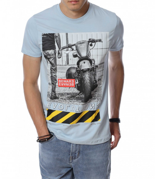 ОПИСАНИЕ НА ПРОДУКТА: За тези от Вас, които са изградени ценители на модните тенденции и предложения, Ви представяме този модел автентична мъжка тениска. Добавяйки доза ефектност, с помощта на един елемент от облеклото си, може да изграждате всеки ден нови и стилни сетове. Този модел мъжка тениска Ви предлага визия, прототип на най-новите трендове в мъжкото облекло. За контраст, в областта на лицевата страна е централизирана голяма щампа, изобразяваща мотор. Изключително детайлното изобразяване на декорацията създава усещане за висок клас на изработка, а вталената кройка и деликатното овално деколте придава стил и завършено излъчване. Съчетайте с къси или дълги дънки заедно с чифт кецове за една неповторима визия, подходяща за всеки повод и ден.