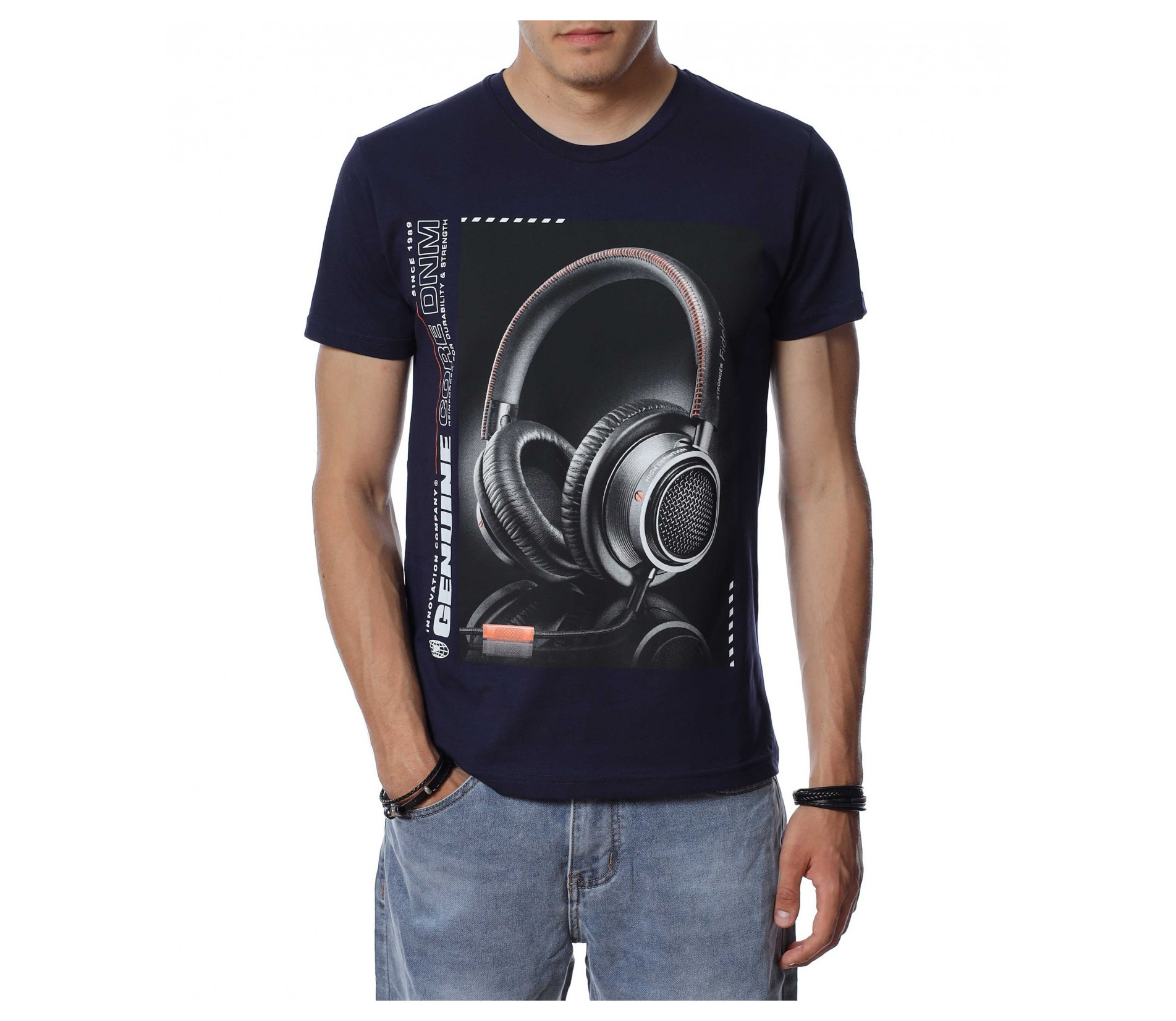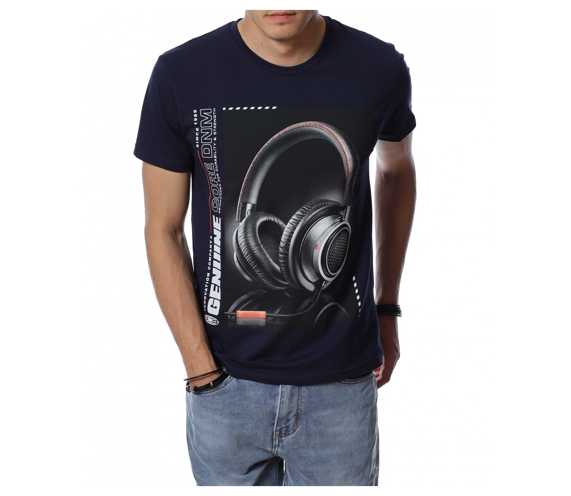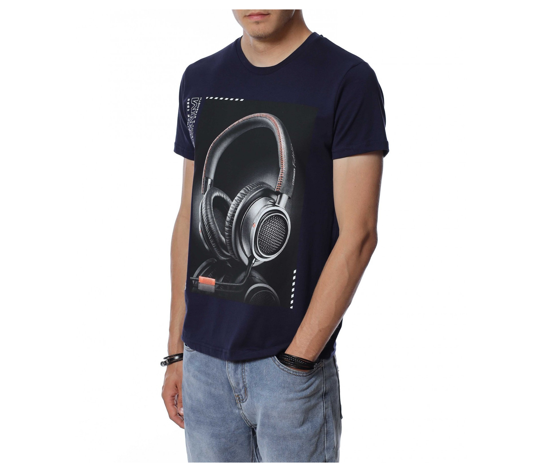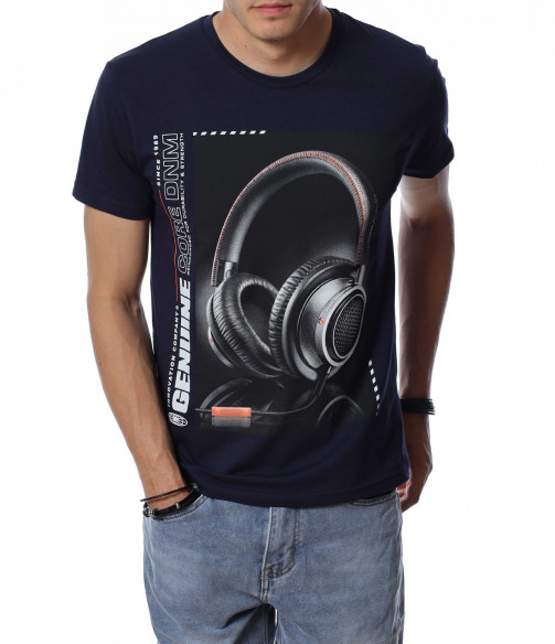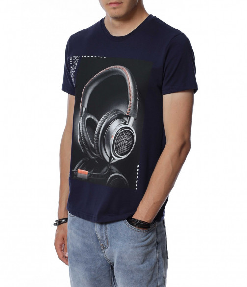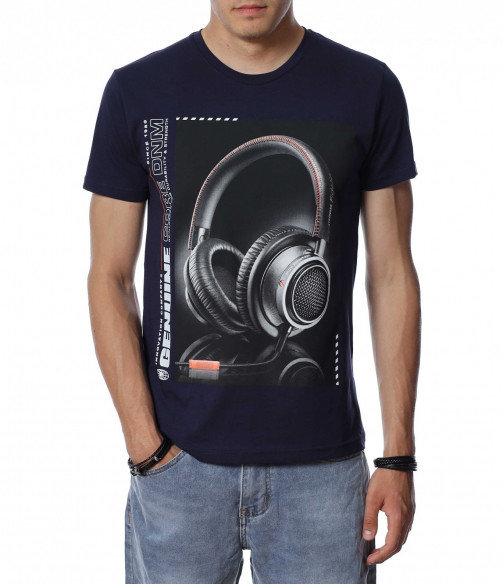 ОПИСАНИЕ НА ПРОДУКТА: Мъжка тениска с къс ръкав с интересна илюстрация. Цвета е част от изчистената, тъмна гама, която перфектно се вписва при избора на мъжете, предпочитащи класическите и утвърдени модели фланелки. Цялата предна част е обхваната от голяма щампа със слушалки и надписи. Кройката при тази блуза с къс ръкав е леко вталена, а удобството е гарантирано от висококачествен памучен плат. Наслади се на безупречна визия и съчетай с дълги или къси дънки и модерни обувки.