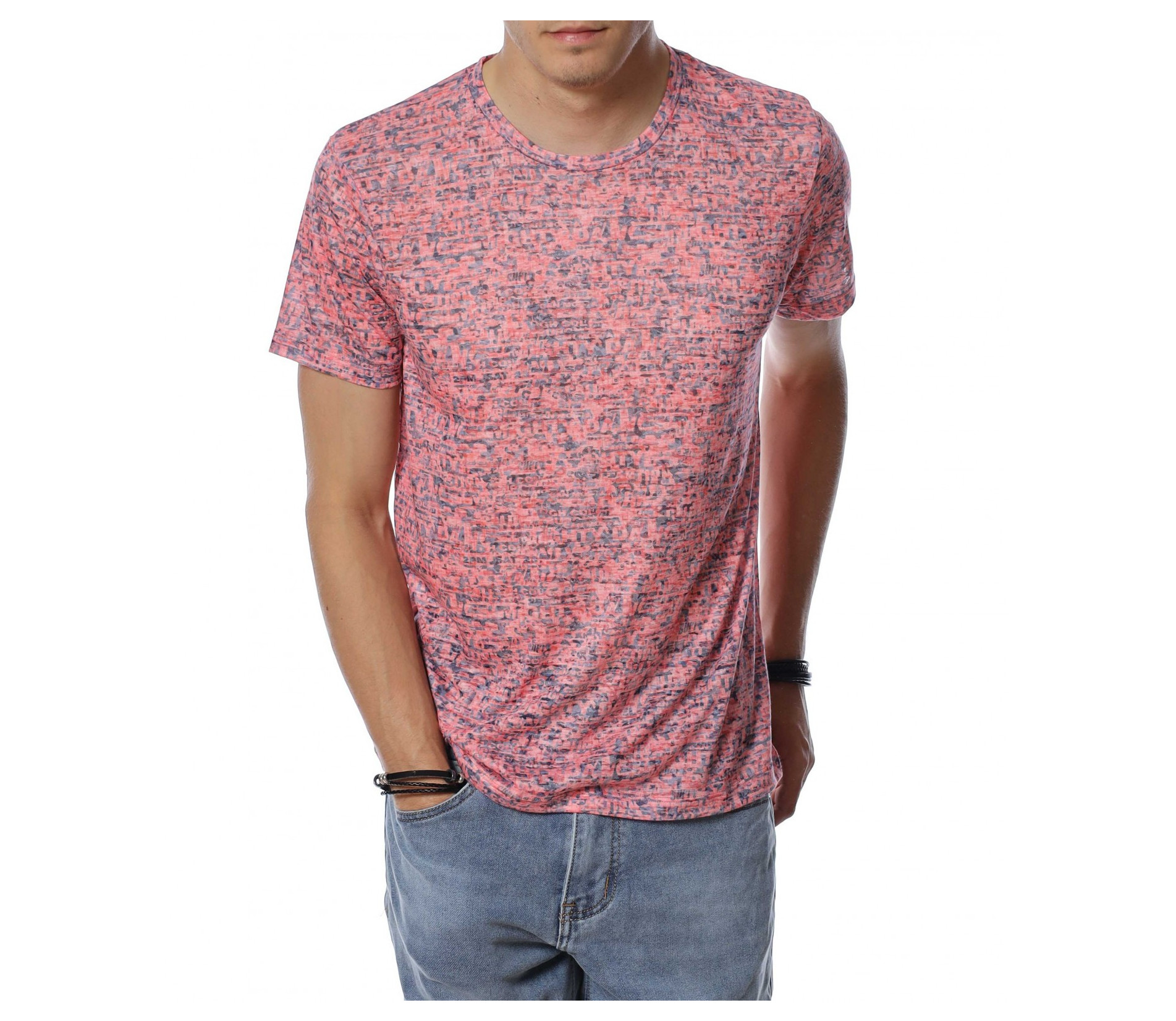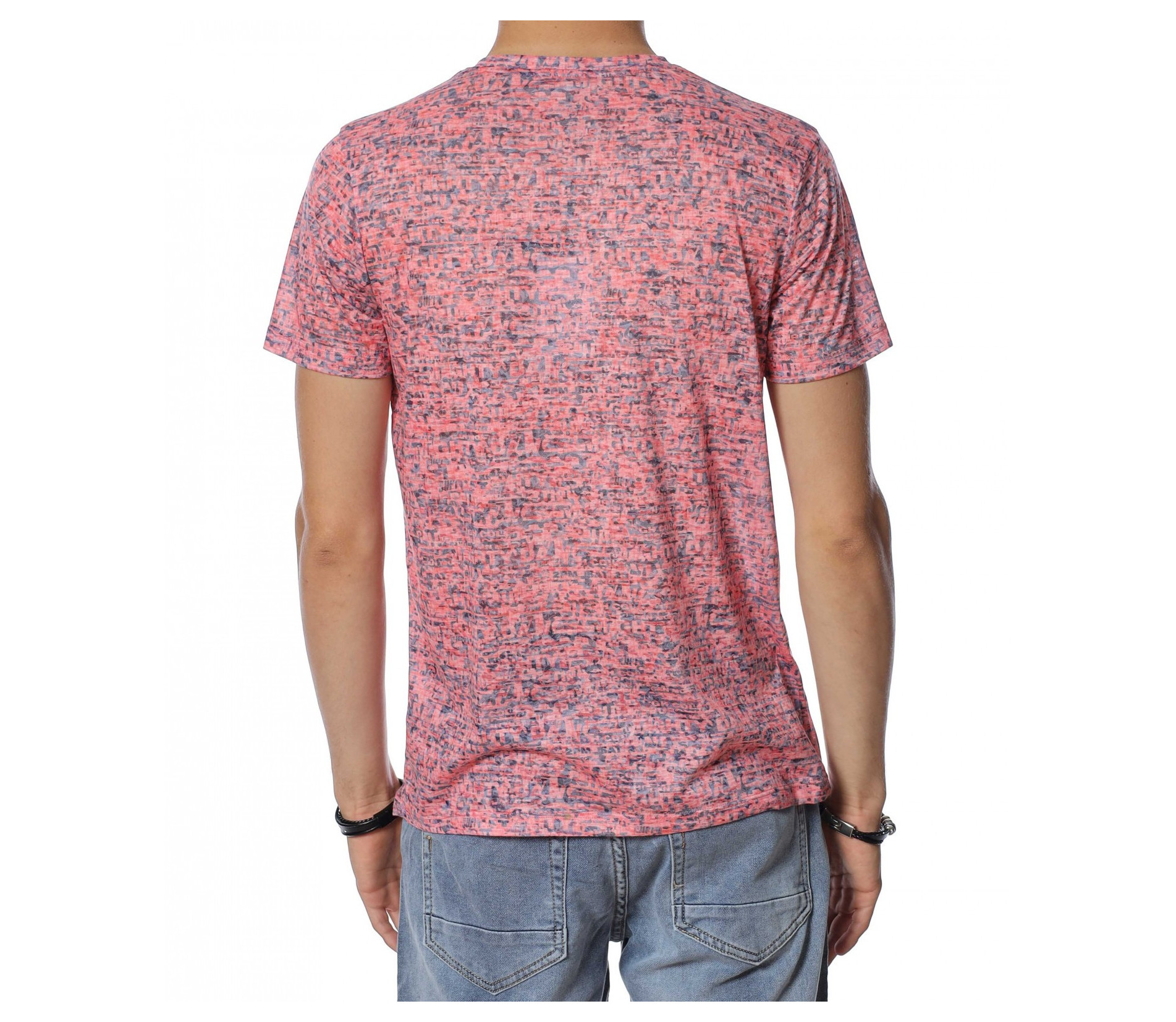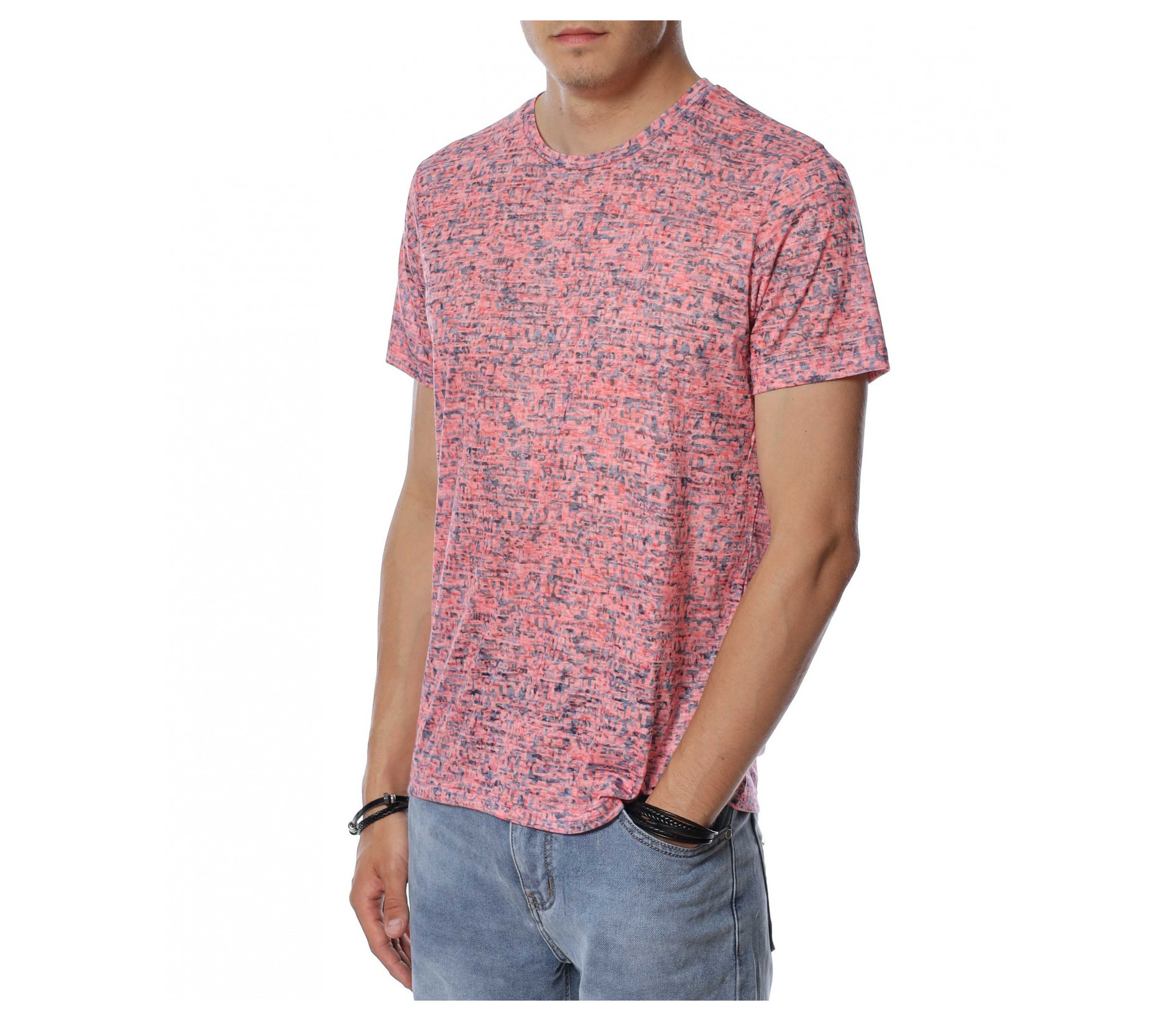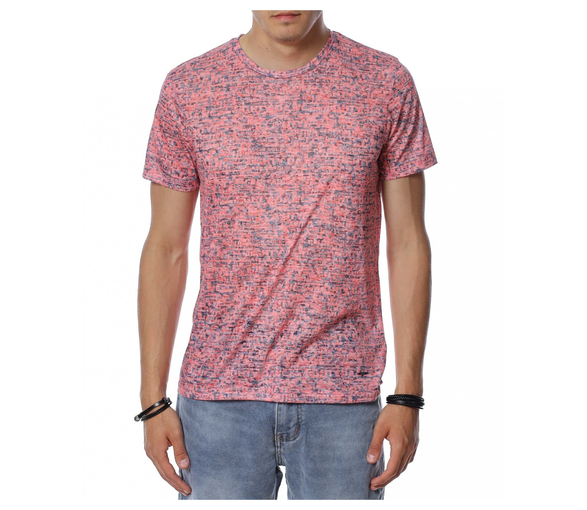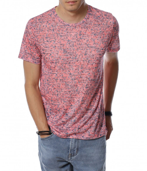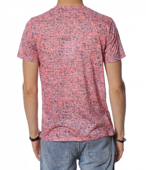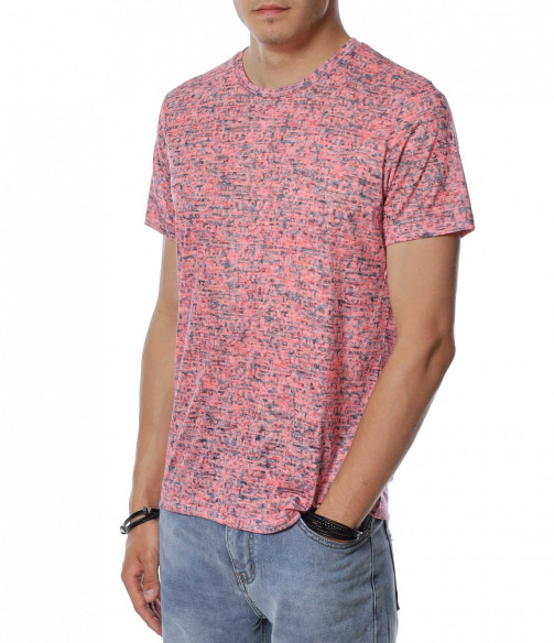 Тениска с десен със ситни букви 13938 - Корал