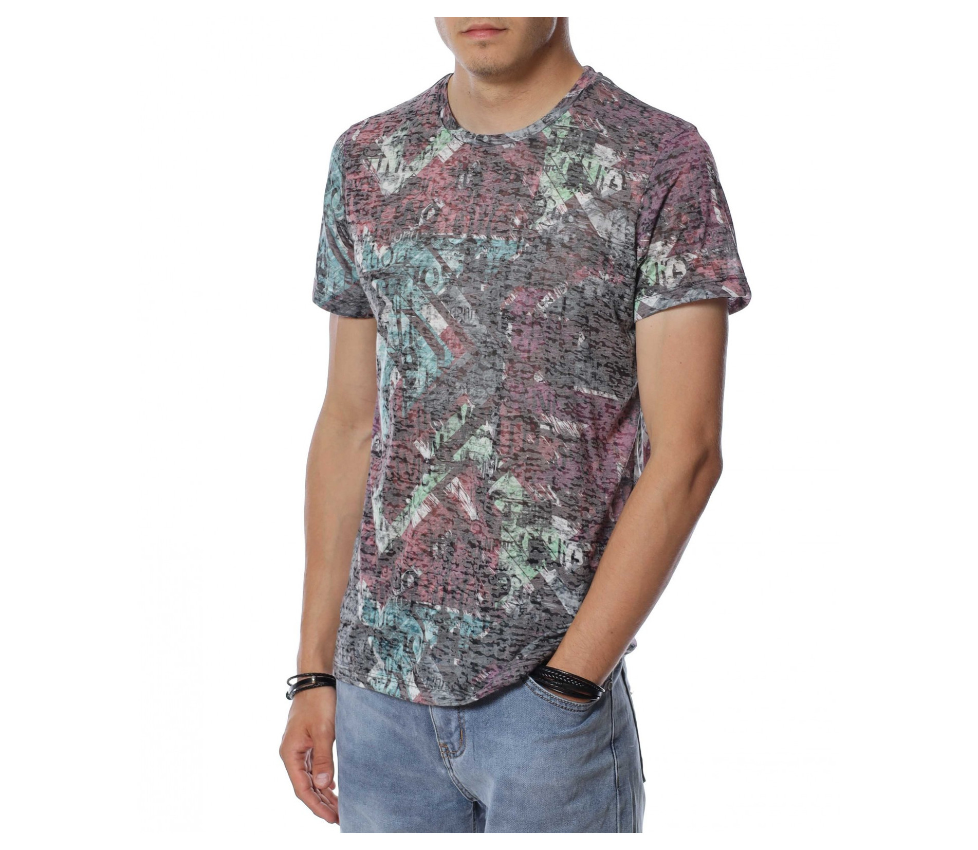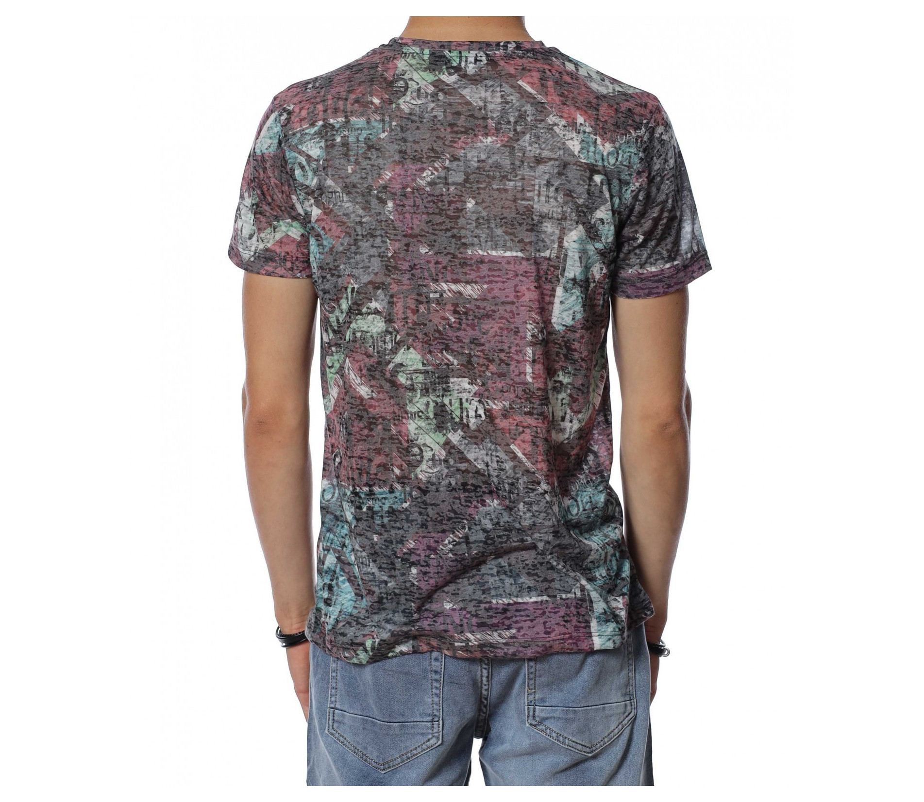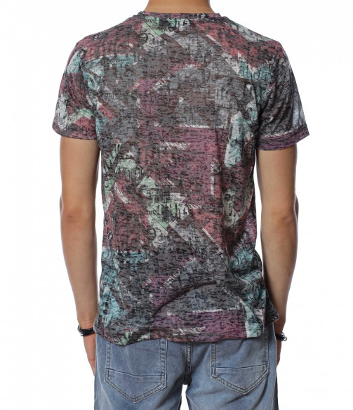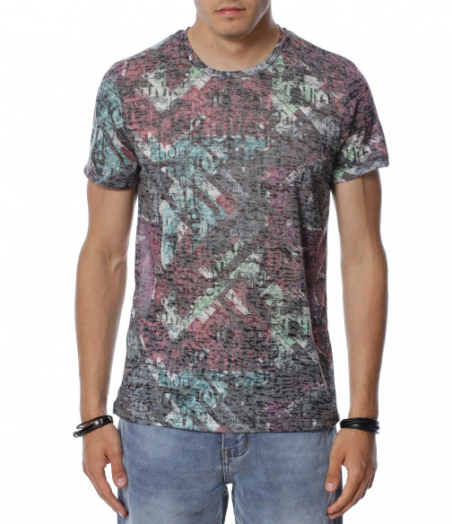 ОПИСАНИЕ НА ПРОДУКТА: Бъди ефектен този сезон с уникален модел преливаща тениска. Стани олицетворение на твоя любим модел и направи стайлинга си неотразим и много индивидуален. По цялата тениска са разпръснати стилизирани надписи, което придава доза разчупеност и атрактивна нотка. Деколтето е с овална форма, а кройката леко вталена, обещаваща много удобство и комфорт. Лесно можеш да съчетаеш този daily тишърт с любимите си дънки, спортни кецове и яке по избор, за да изградиш една цялостна ефектна визия. Не се колебай а лесно се сдобий със супер атрактивен модел мъжка тениска.