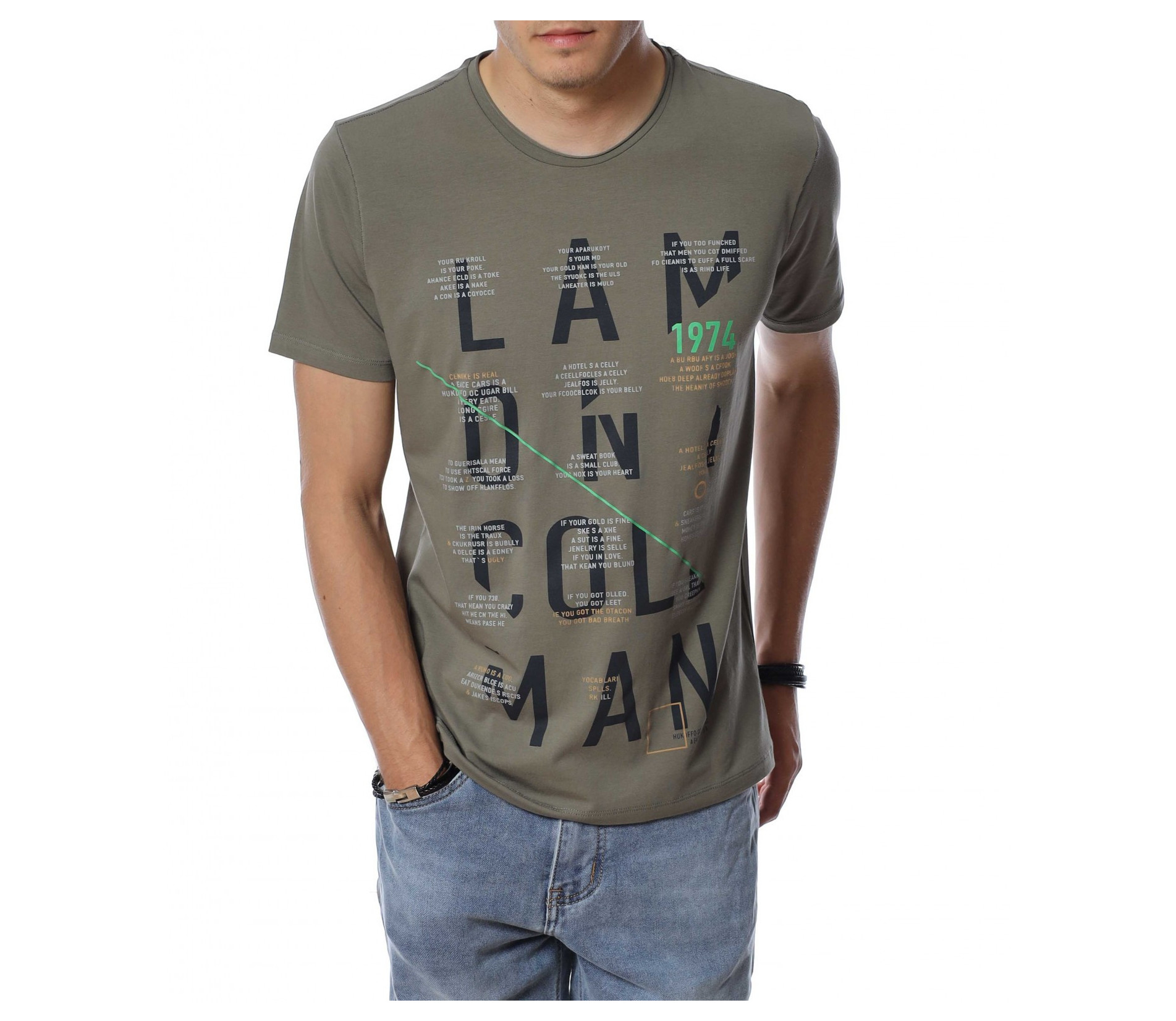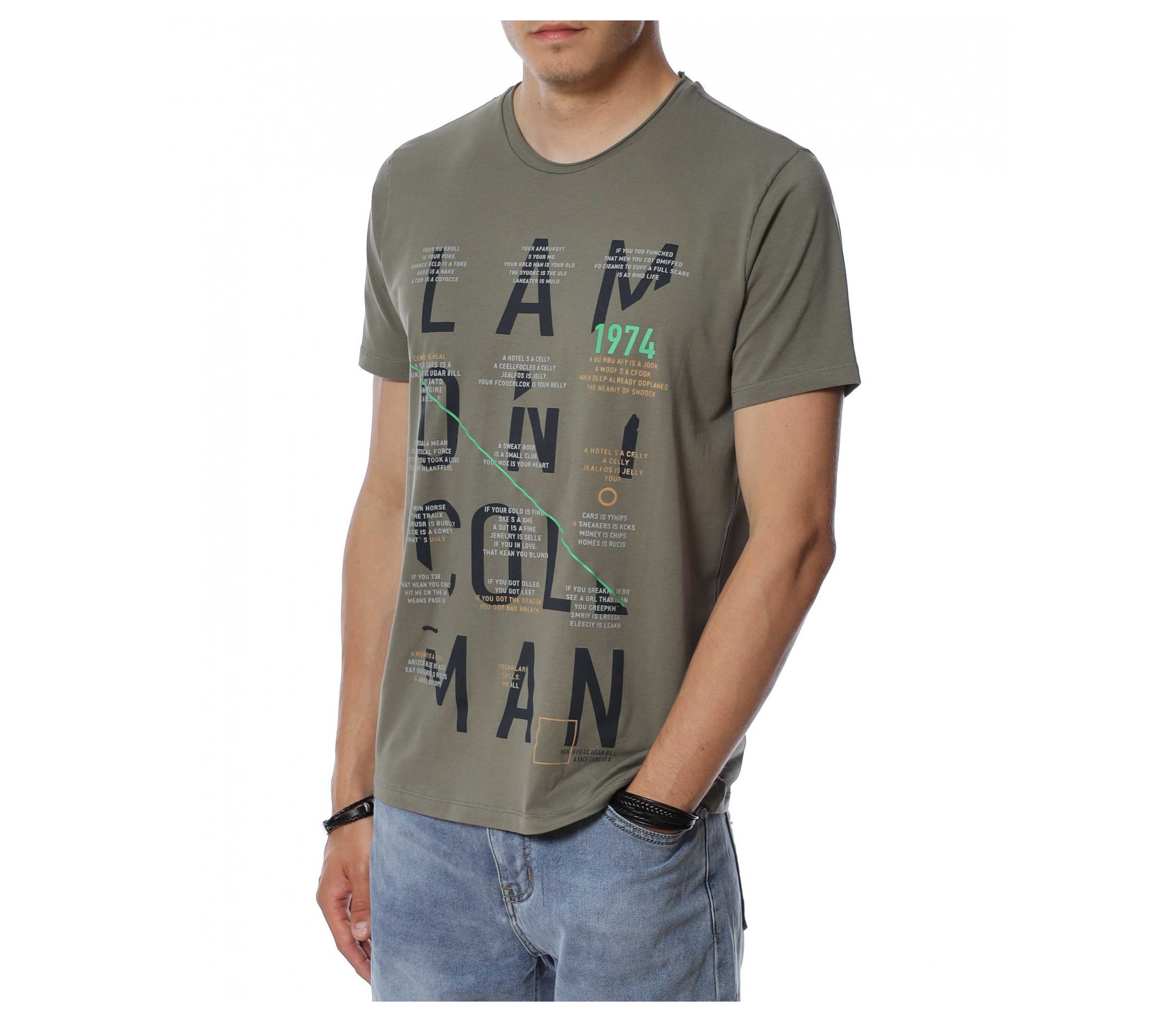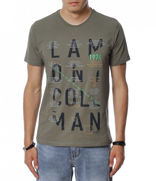 ОПИСАНИЕ НА ПРОДУКТА: Мъжка тениска с къс ръкав с интересна илюстрация. Цялата предна част е обхваната от голяма букви и по-малки надписи върху тях, чиито ефект е подсилен от диагонална линия в ярък цвят. Акцента пада върху апликацията, защото гърбът е напълно изчистен. Кройката при тази блуза с къс ръкав е леко вталена, а удобството е гарантирано от висококачествен памучен плат. Наслади се на безупречна визия и съчетай с дълги или къси дънки и модерни кецове.