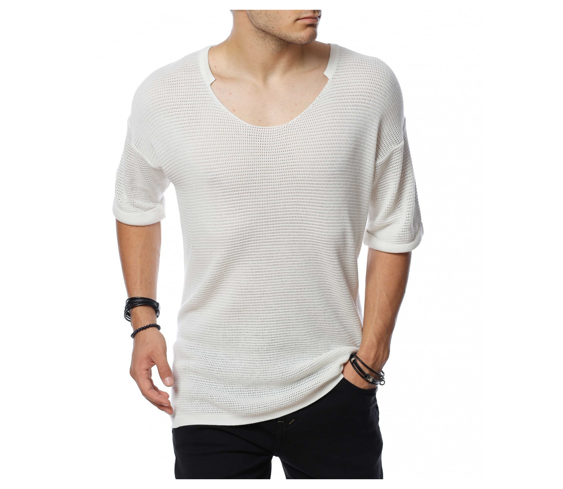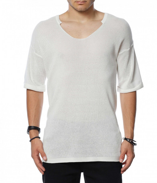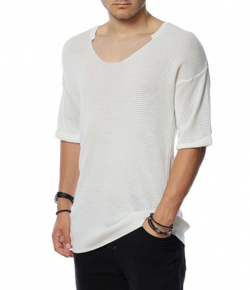 Мрежеста тениска с къс ръкав 13994 - Бял