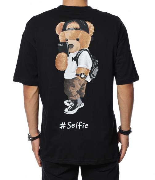 Тениска с ефектна щампа на гърба 13997 - Черен