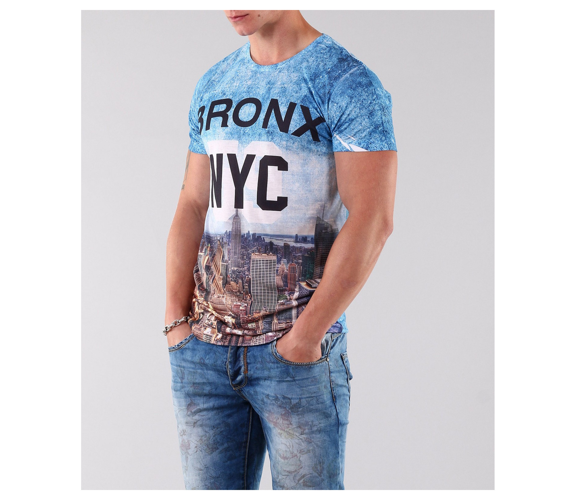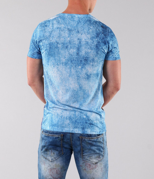 Описание на продукта: Мъжка свежа лятна тениска с интересен десен. Този модел тишърт съчетава в себе си цветове и интересна апликация събрани в един модел. Изтърканият цвят акцентира по целия модел, а апликацията засилва акцентът отпред. Деколтето е овално, а модела втален-в крак с модните тенденции. Изработена от висококачествен памук гарантира максимално удобство. Смело съчетайте с къси дънки и свежи панталонки, кецове или мокасини, еспадрили и колан по Ваш вкус, за свежа и лятна визия.