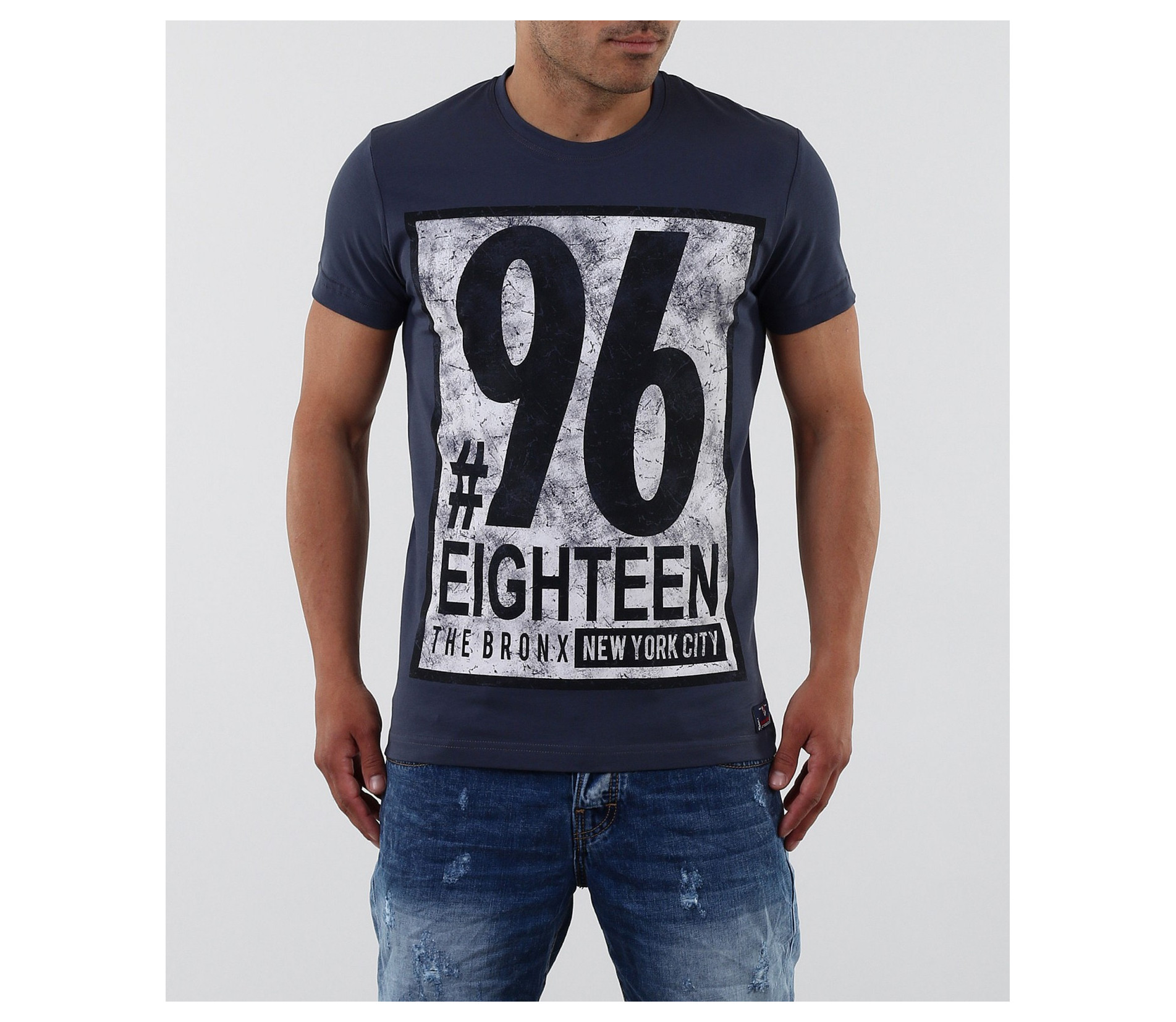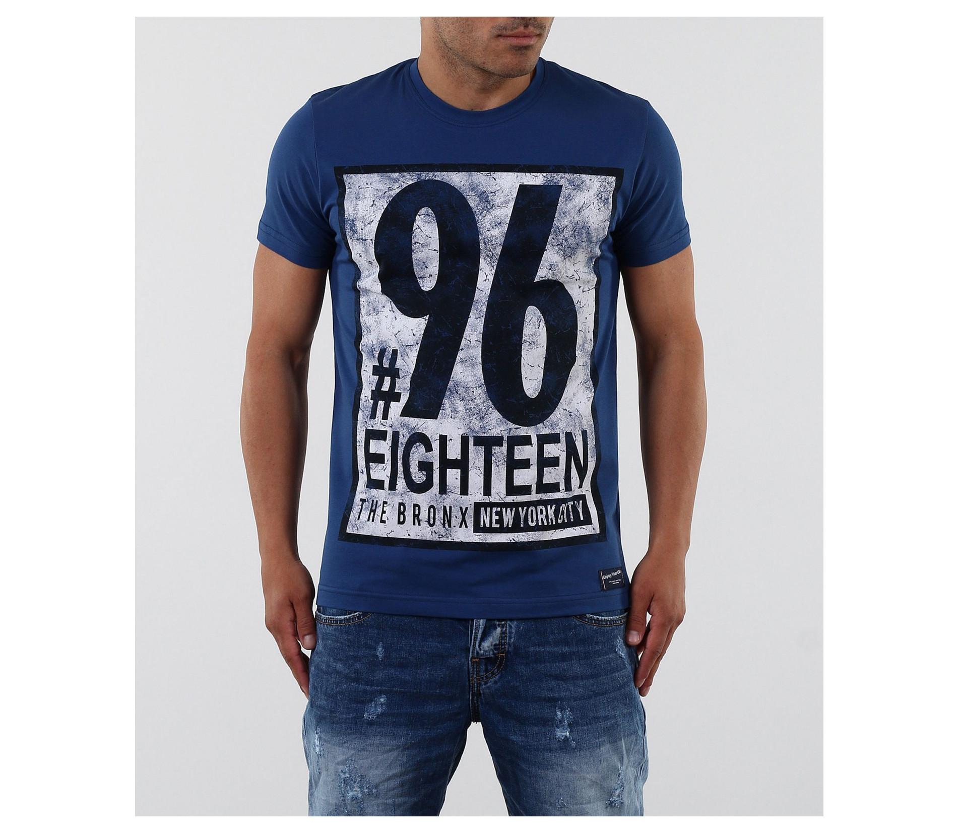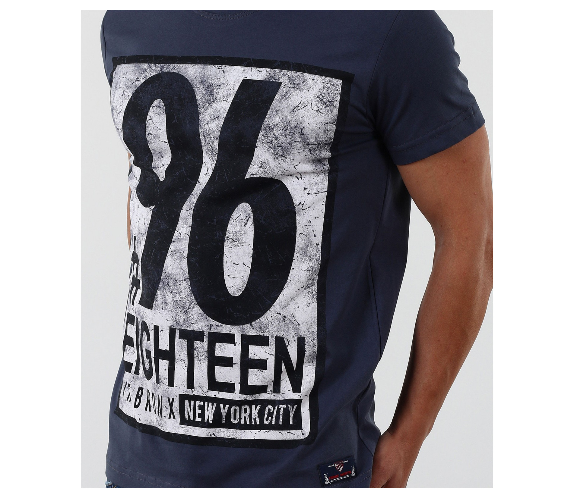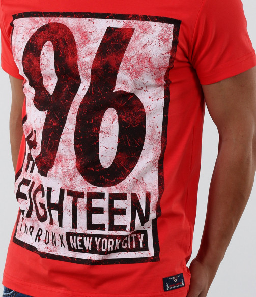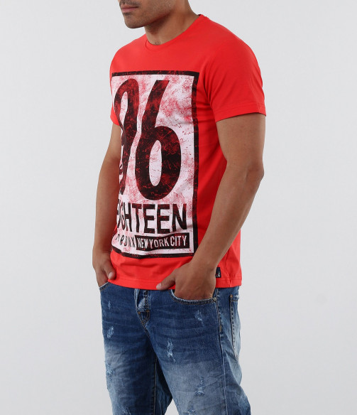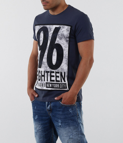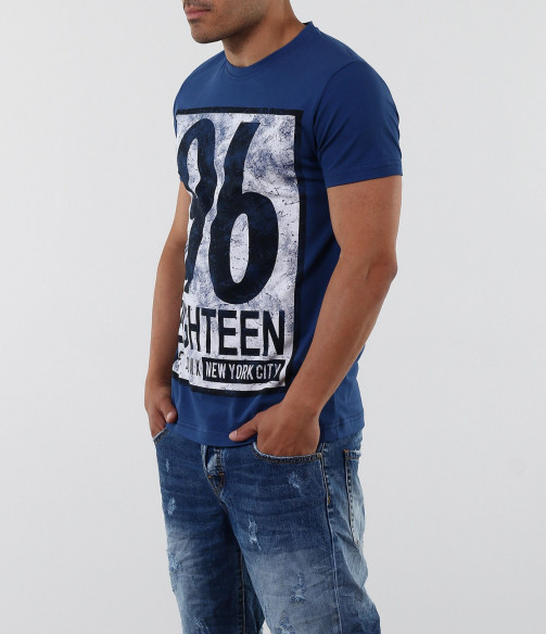 Описание на продукта: Стилна тениска с апликация. Акцентът на модела е изцяло в предната част с модетна апликация изобразяваща номер и надписи. Апликацията е в \"рамка\" и с протрит ефект, като по-силен акцент. Тениската се предлага в няколко цвята, за улеснение и достъпност до всеки вкус. Гърба на модела е изчистен. Тениската е вталена, по тялото, а деколтето е овално и прибрано. Изработена от 95%висококачествен памук и 5%еластант, за да ви осигърят необходимия комфорт. Съчетайте смело с къси дънки, панталони и аксесоари за модерен и впечатляващ стайлинг.