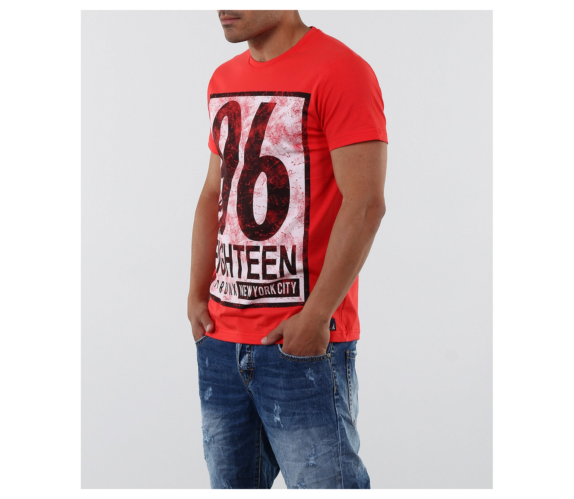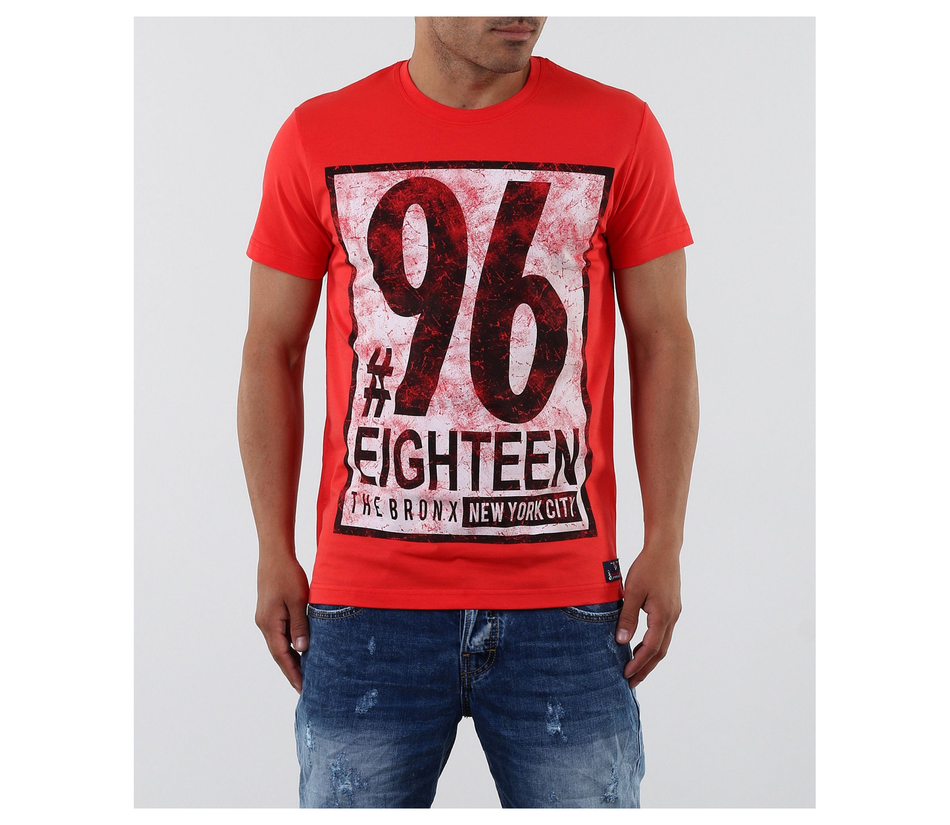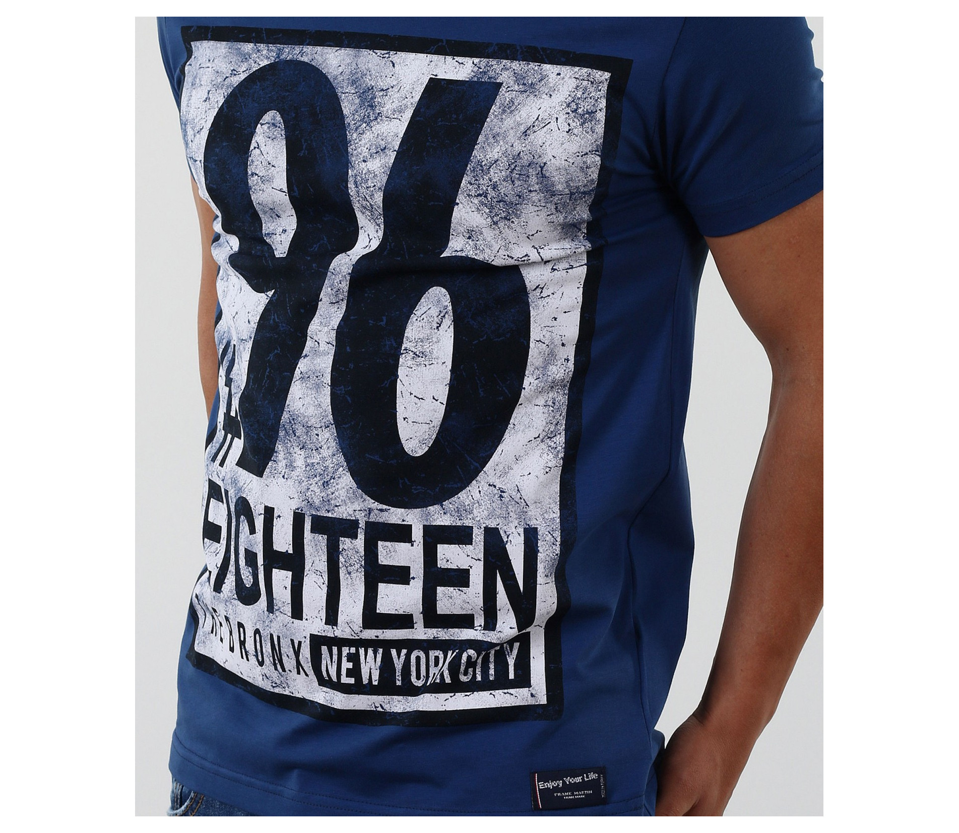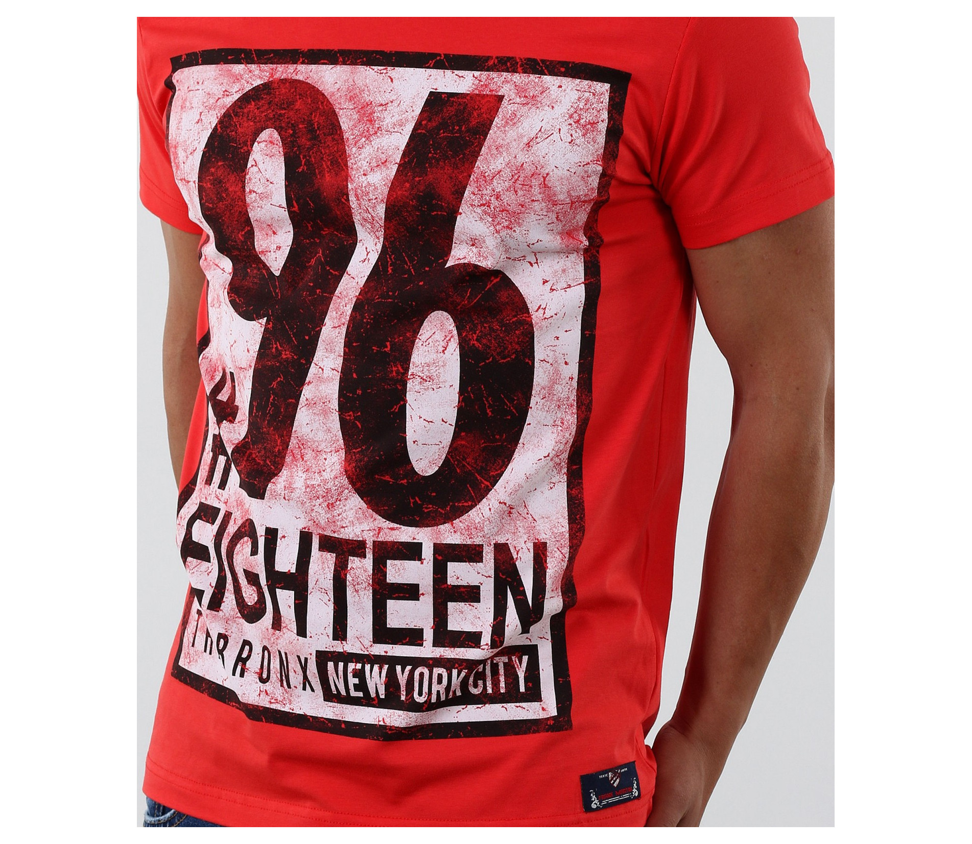 Описание на продукта: Стилна тениска с апликация. Акцентът на модела е изцяло в предната част с модетна апликация изобразяваща номер и надписи. Апликацията е в \"рамка\" и с протрит ефект, като по-силен акцент. Тениската се предлага в няколко цвята, за улеснение и достъпност до всеки вкус. Гърба на модела е изчистен. Тениската е вталена, по тялото, а деколтето е овално и прибрано. Изработена от 95%висококачествен памук и 5%еластант, за да ви осигърят необходимия комфорт. Съчетайте смело с къси дънки, панталони и аксесоари за модерен и впечатляващ стайлинг.