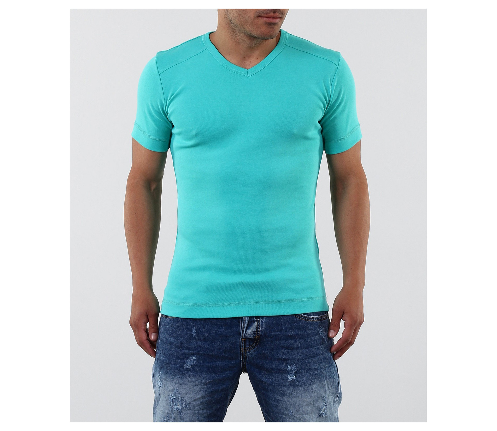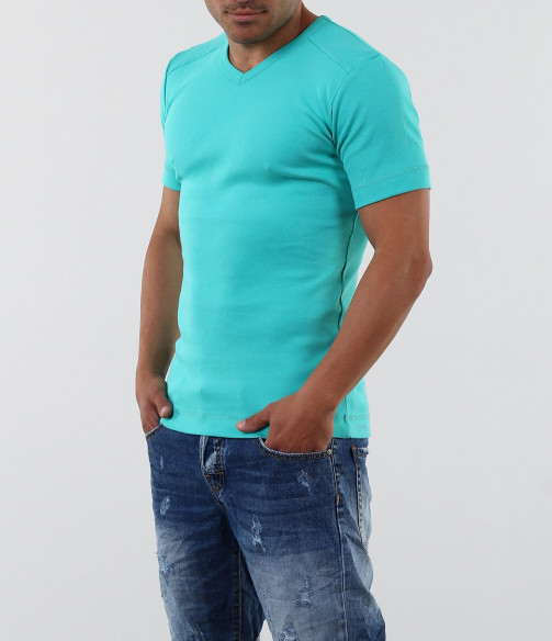Описание на продукта: Изчистена тениска,задължителна за летния Ви гардероб. Моделът се предлага в няколко цвята, подходящи за всеки вкус и стил. Деколтето е остро, но прибрано около врата. Стилна,лесно съчетаема с широка гама от модели -къси дънки, къси панталони, кецове и аксесоари. Изработена от 100% висококачествен продукт за допълнително удобство. Смело съчетави този тишърт с различни модели дрехи получавате нов вид на стила си.