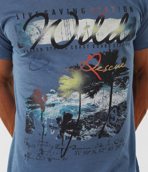 Описание на продукта: Мъжка модерна тениска с акцент в предната част.Разчупена апликация в комбинация на принт и надписи,раздвижват лицето на модела.Гърба е напълно изчистен.Деколтето е овално прибрано около врата.Ръкавите са със стандартна дължина.Комбинацията от 50%памук и 50%модал гарантира удобството Ви през летните дни.Подходяща за съчетаване с дънки,спортно-елегантни панталони, къси дънки и къси панталони,мокасини или кецове, както и стилни аксесоари за едно екстравагантно и модерно излъчване.